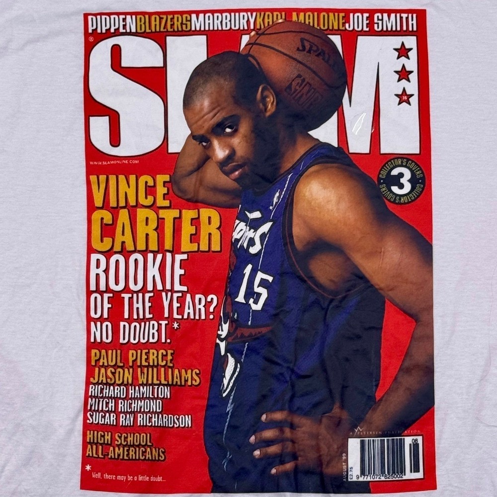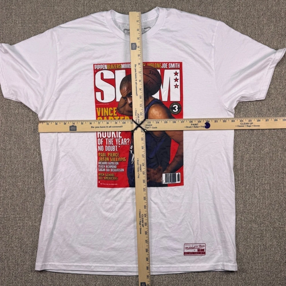 Brand-new without tags Mitchell & Ness × SLAM Magazine Vince Carter tee featuring the iconic August '99 Rookie of the Year cover. Crisp white cotton, unworn, with bold magazine-style graphic. Premium streetwear collectible for NBA and Raptors fans. • Brand: Mitchell & Ness • Style: SLAM Magazine Vince Carter Cover Tee • Color: White • Size: XL • Measurements: – Chest: 23 in – Length: 30 in • Material: 100% Cotton • Made in: Mexico • Weight: ~7–9 oz Condition: NWOT — never worn, no flaws, vibrant graphic. ⸻ KEYWORDS vince carter shirt, rookie of the year tee, slam magazine shirt, mitchell and ness tee, nba streetwear, unworn shirt, raptors vince carter, basketball graphic tee, nba fan gift, 1999 slam issue tee, collectible nba apparel