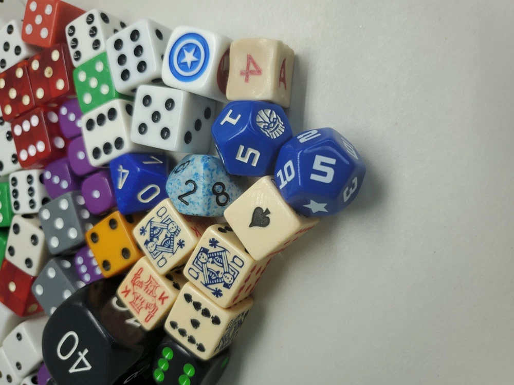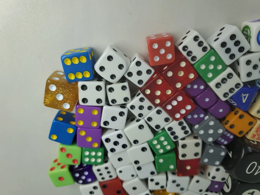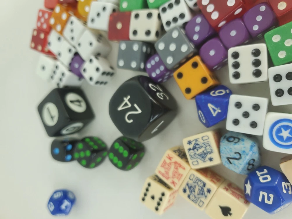 1 very old die from an 1800s early 1900s set seems made of clay . the bridge die, and the ivory die are from the same set had to throw the case out The rest is as seen from various.
