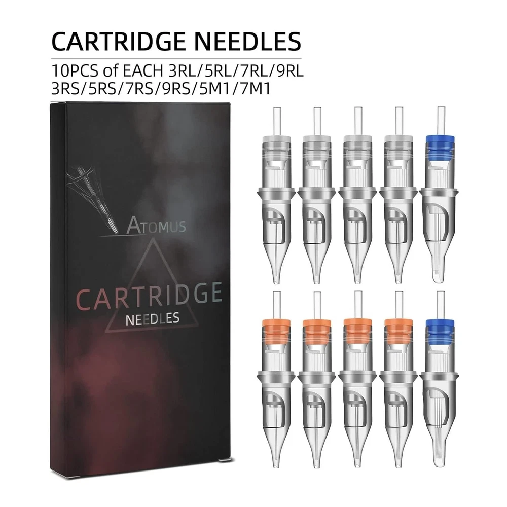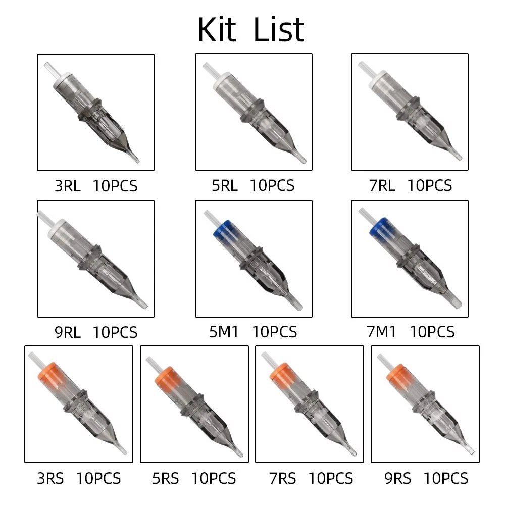 ★100pcs in all, 10pcs of each 3RL, 5RL, 7RL, 9RL, 3RS, 5RS, 7RS, 9RS, 5M1, 7M1. ★ Can prevent ink leakage or pigment leakage, protect tube and tattoo machine. Semi transparent tips make it easier to observe the needle striking. ★ High elasticity silicone gel replaces iron spring, your tattoo work can be more smoothly. Meanwhile, you do not need to worry about spring becomes rust. ★ This tattoo needle can be used together with various kinds of rotary tattoo machine/ pen style tattoo machine / coil tattoo machine.