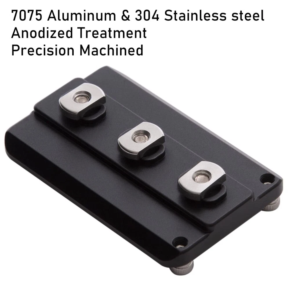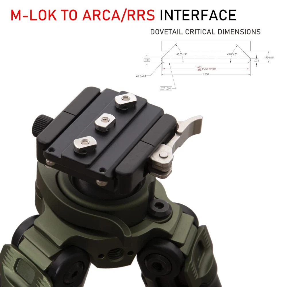 M-LOK Arca Adapter - 2 Slot for ARCA/RRS Interface is a lightweight, machined, mil-spec hard anodized aluminum mounting plate that is designed for M-LOK slot compatible hand guards and is fully compatible with tripods that use the ARCA/RRS standard. It has comfortable, yet functional, snag-resistant beveled edges. The 2 Slot M-LOK adapter features close-end rail that are optimally located to limit overall travel of accessories ensures securely in place throughout the most rugged use and heaviest recoil impulses, making the this adapter a rugged, repeatable and precise mounting solution. C OMPATIBILITY M-LOK forends and hand guards Accessories using the Arca-Swiss Standard Accessories using the RRS Dovetail Standard Specs Length: 2.36"/ 60mm Width: 1.5"/ 38mm Thickness: 0.4"/10mm Weight: 1.17 oz/ 33g 【 All Metal Sturdy Construction】: Precision machined from solid blocks of 7075 aluminum without excess weight, long time hard anodized treatment for higher durability, screws and anti-slip lugs are stainless steel 【Compatible with RRS and Arca Type Dovetail】: The semi permanent plate with 1.5" dovetail, fully compatible with Arca Swiss QR plates and RRS standard dovetail quick release clamps, as well as various tripod ball heads. Quick mounting for hunting 【Fully compatible with M LOK system】: It can be mounted on the rail from the top and stabilized at 3 T nut points. Mounts directly to an M LOK compatible system to reduce recoil shock and lug relief. Also comes with functional anti jam beveled edges 【Removable Stop Screws】: The 2 removable stop screws on the end ensure a reliable hunting experience and reduce the risk of falling, even when launching a heavier recoil platform 【Lightweight Hollowed Out Design】: Weighing only 1.17 oz/ 33g, Max Length: 2.36in/6cm, won't add extra weight to your hunting