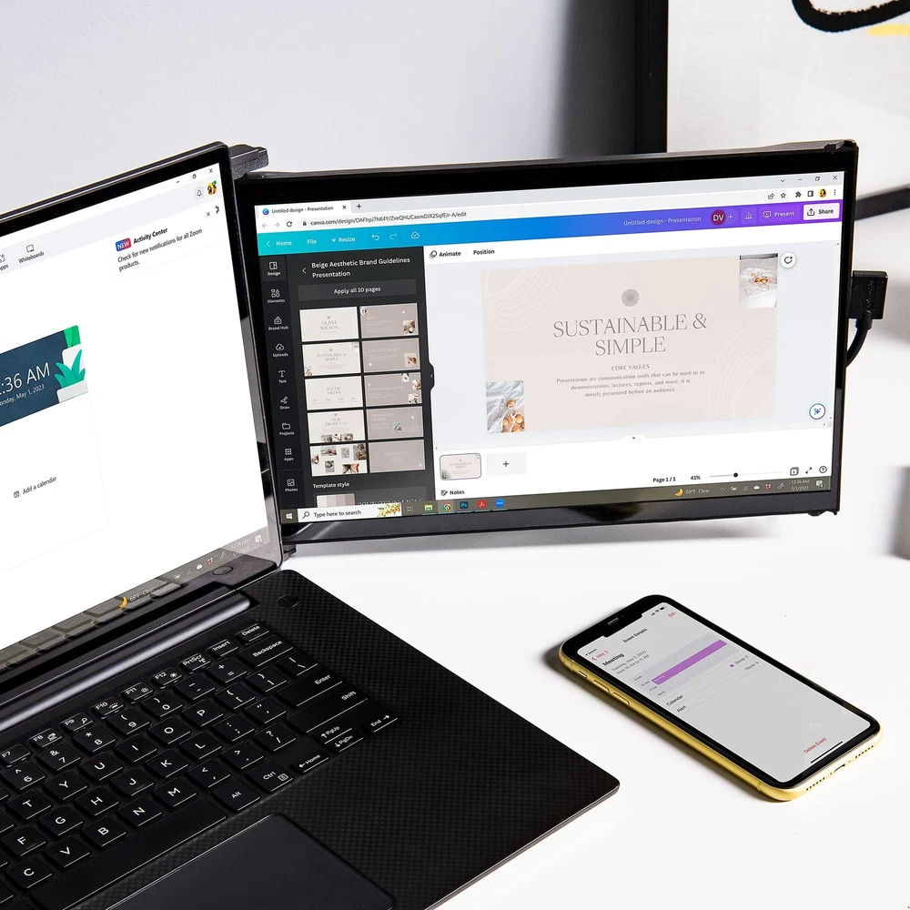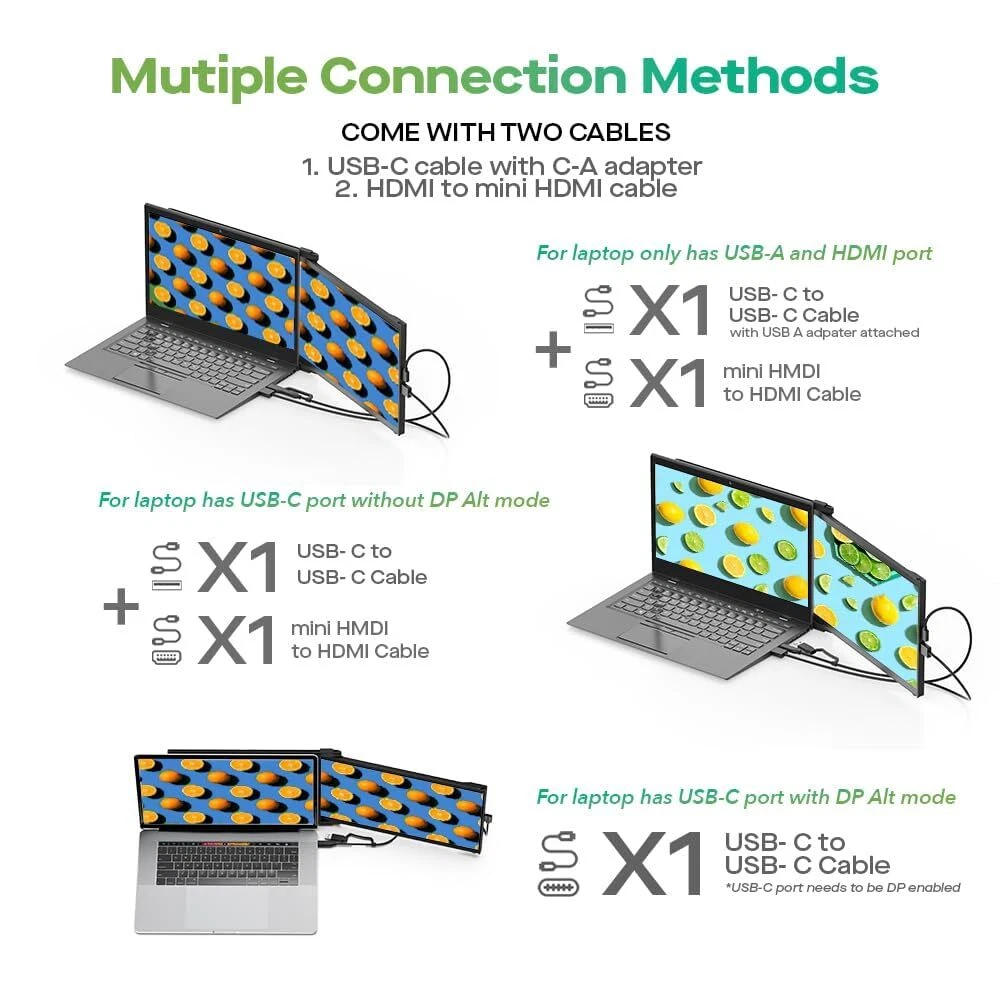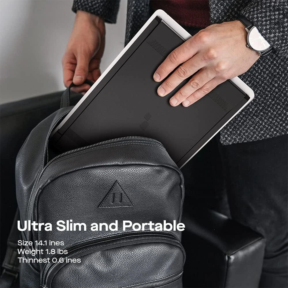 Dual Monitor, Dual Signal: The Duex Max DS 14-inch IPS screen is able to connect USB C and HDMI for widely compatibility with 14'' to 17'' laptops; This laptop monitor extender is attached to your laptop as integrated design, making it more portability Lightweight Portable Monitor, Easy to Carry: Weighing only 1.8lbs and measuring just 0.60 inches in thickness, this portable laptop monitor is lightweight and compact, making it effortless to carry in your bag or briefcase Plug-and-play, Multiple Use Modes: With this laptop screen extender monitor portable, you can say goodbye to complicated setups and messy cables; Simply connect it to your laptop via USB Type-C/HDMI, and you're ready to go Compatible with Multiple Devices and Systems: The second monitor for laptop is versatile and compatible with a wide range of devices and systems; Whether you need an additional screen for work or entertainment, this laptop monitor is the best solution Great Local Service: If you encounter any problems with your external monitor, you can ask us for help; Additionally, we ensures that you can quickly and easily get your device repaired or replaced if necessary.