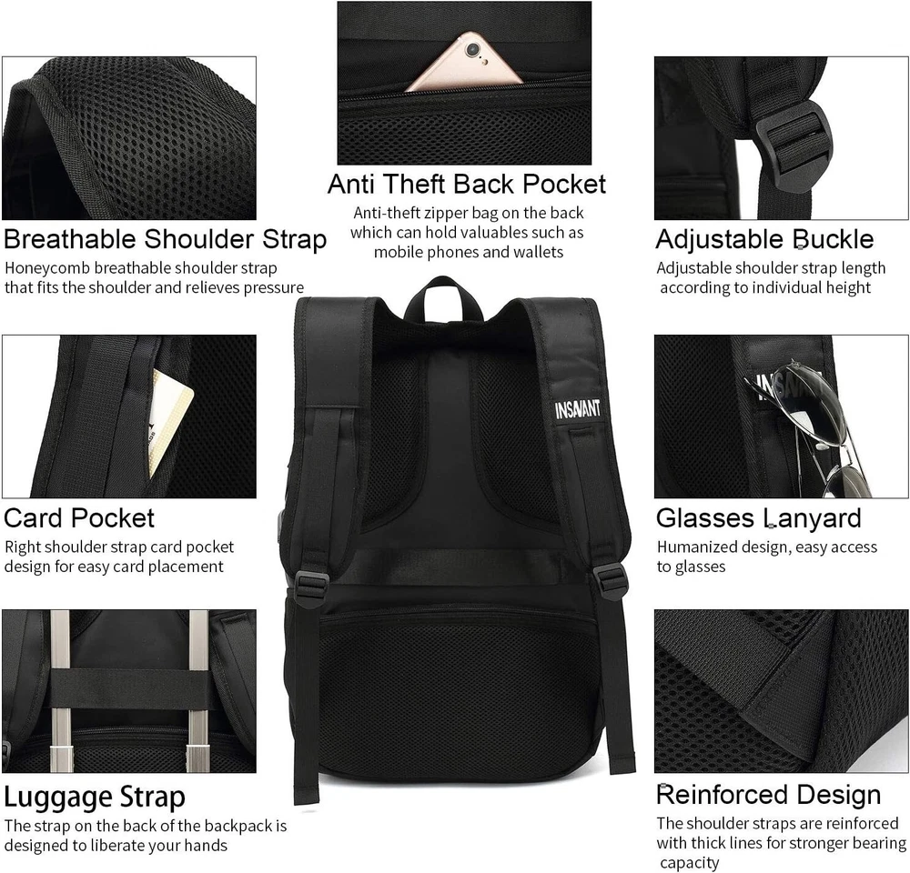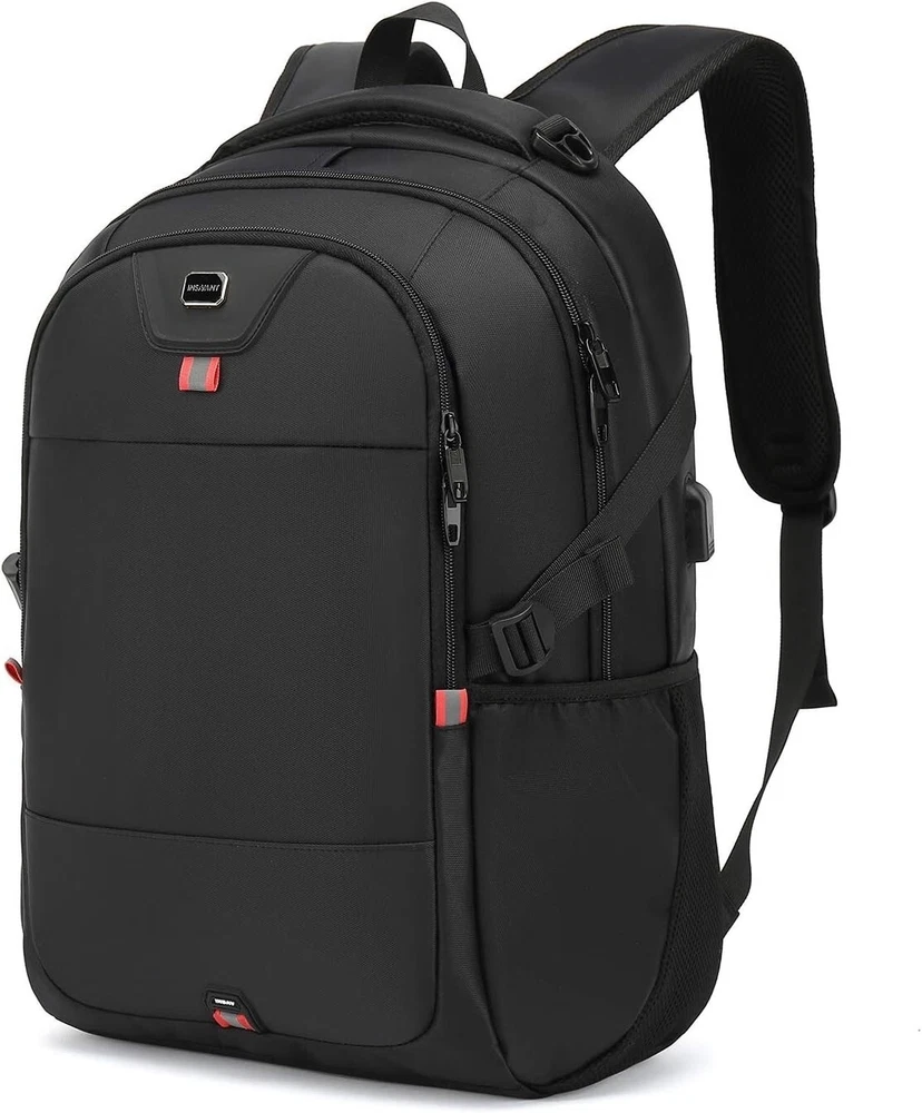 Size: 17 Inch Color: Black Super Big Storage Space for Your Daily Necessities(17 Inch Laptop and Tablet, Power Bank, A4 Files, Wallet, Clothes, Umbrella, Water Bottle and More Your Items). Lots of Pockets Make Your Items Organized and Easier to Find. (Attention! Gaming Laptop and Laptop over 17 inch is not Recommended). THIS ITEM IS NOT INTENDED FOR USE BY CHILDREN 12 AND UNDER. Breathable Material Make Your Back More Comfortable and Adjustable Shoulder Straps Relieve the Stress of Shoulder. Made of Water Resistant and Durable Material, Metal Zippers Close and Open Smoothly to Ensure Long-lasting Usage Everyday. A Luggage Strap Allows Backpack Fit on Luggage/Suitcase, Slide Over the Luggage Upright Handle Tube for Easier Carrying. A Hidden Anti Theft Pocket on the Back Protect Your Wallet, Passport and Valuable Items from Thieves. Perfect Used for Office, Working, College, Business, Shopping, Dating, Travelling, Camping, Hiking, Walk a Dog, Value Gifts etc. A Must Have for Business Documents, College Supplies, Travel Accessories and Laptop Accessories. USB Port Design Offers You a More Convenient Way to Charge Your Phone While Walking. Please Noted That This Backpack Doesn't Power Itself, USB Charging Port Only Offers an Easy Access to Charge.