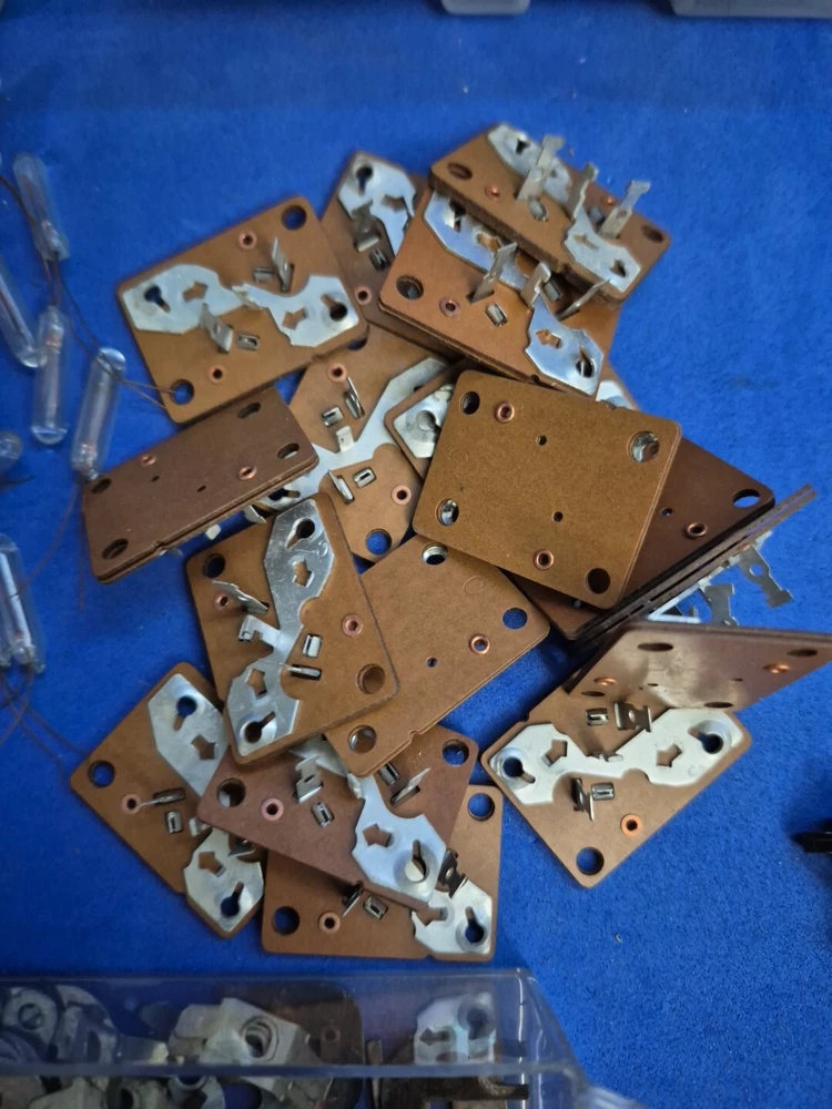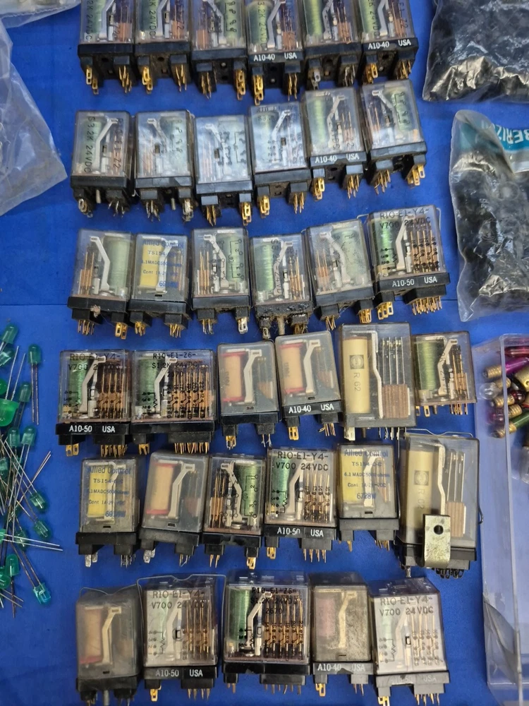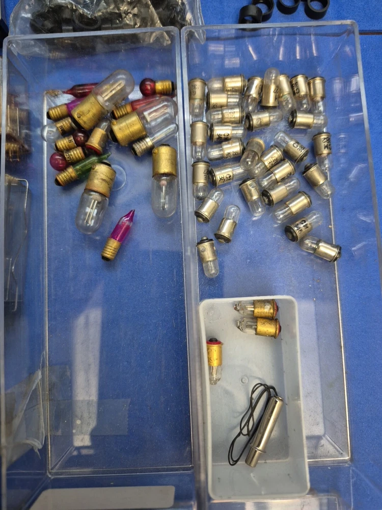 Model Railway / Railroad Electrical Supplies, Relays, Lights, Etc Not sure if it is all for railway modeling or not. Acquired from a model railway estate sale. Some appears to be new, some used. Some of the relays are dirty, used and have bent contacts. AS IS -- ALL UNTESTED -- WILL NOT SHIP IN THE BIN BOXES DUE TO SIZE CONSTRAINTS Ask for additional pictures and/or information before committing to buy.