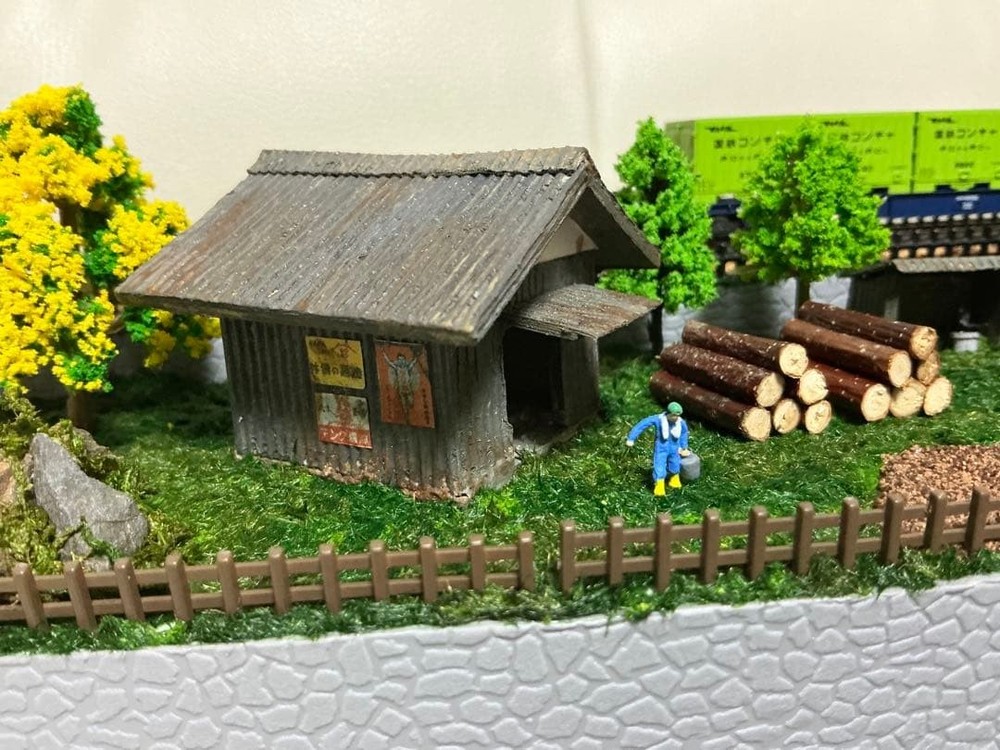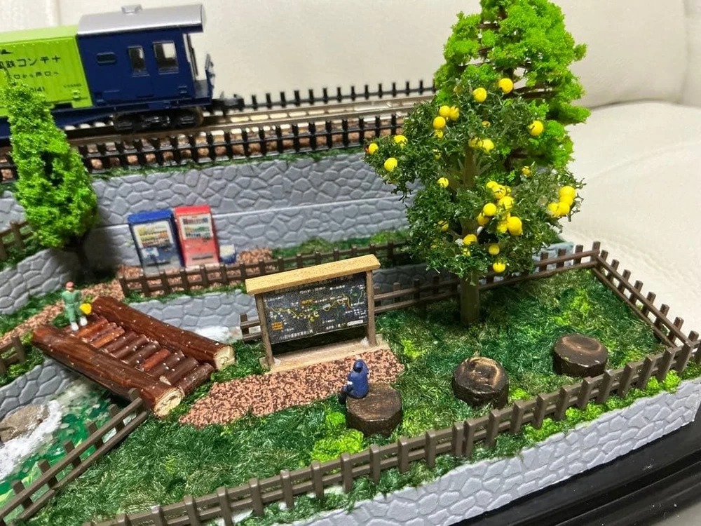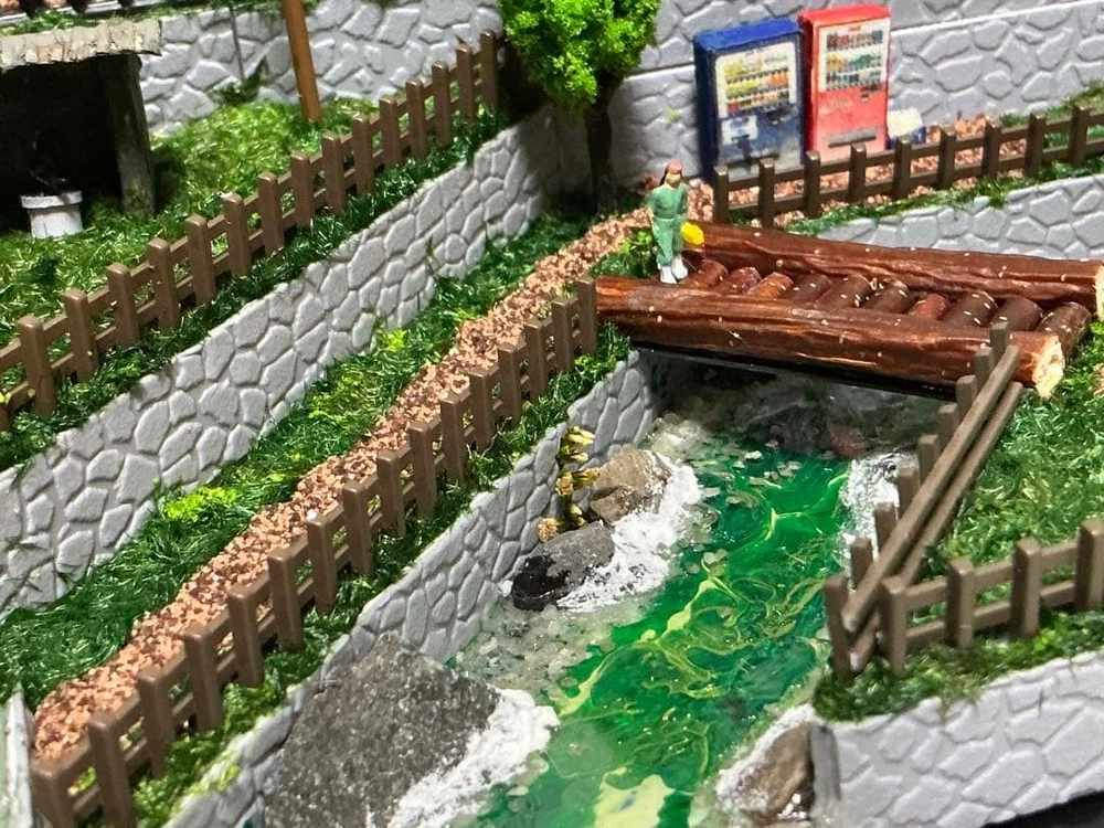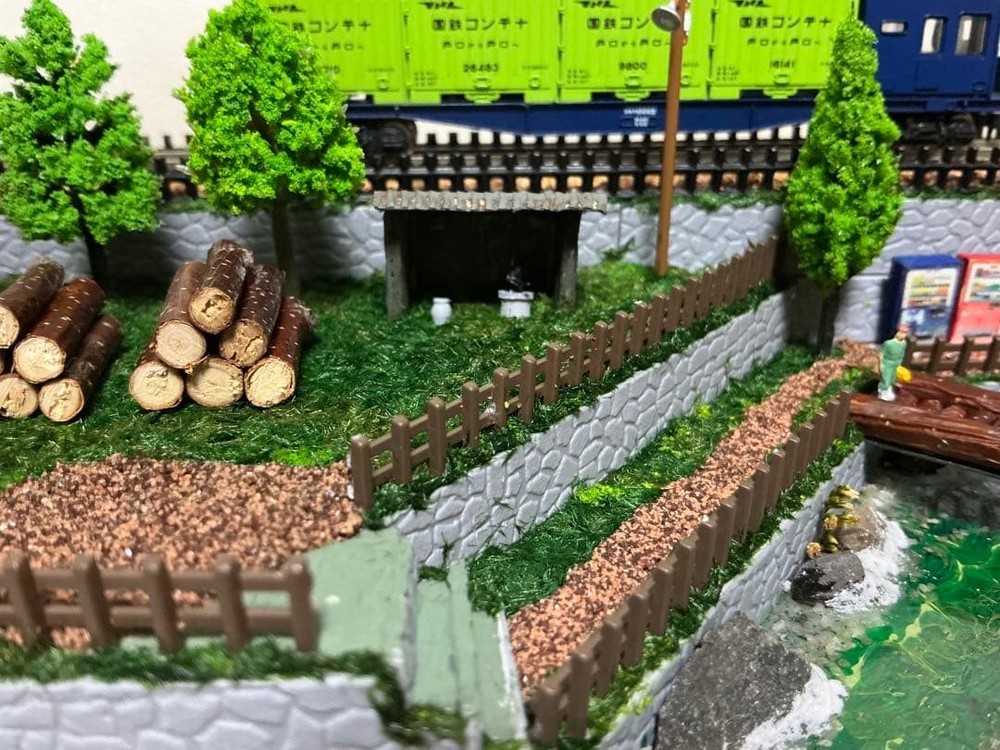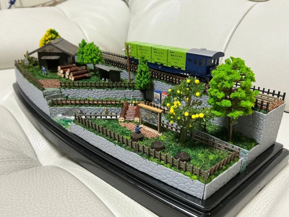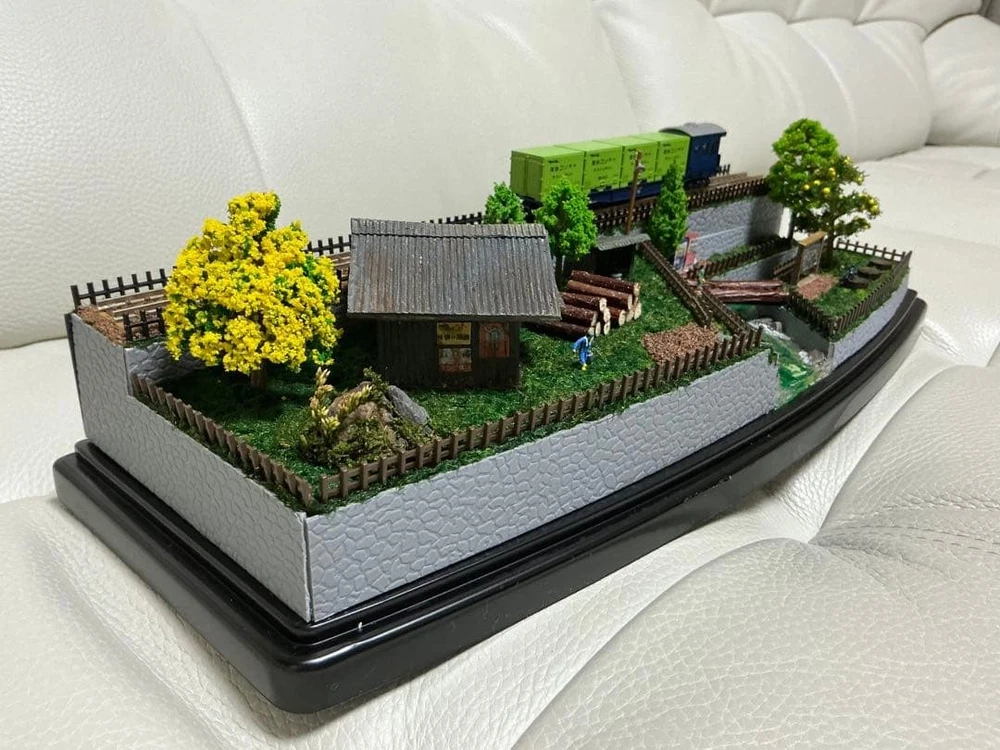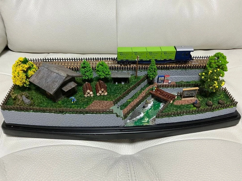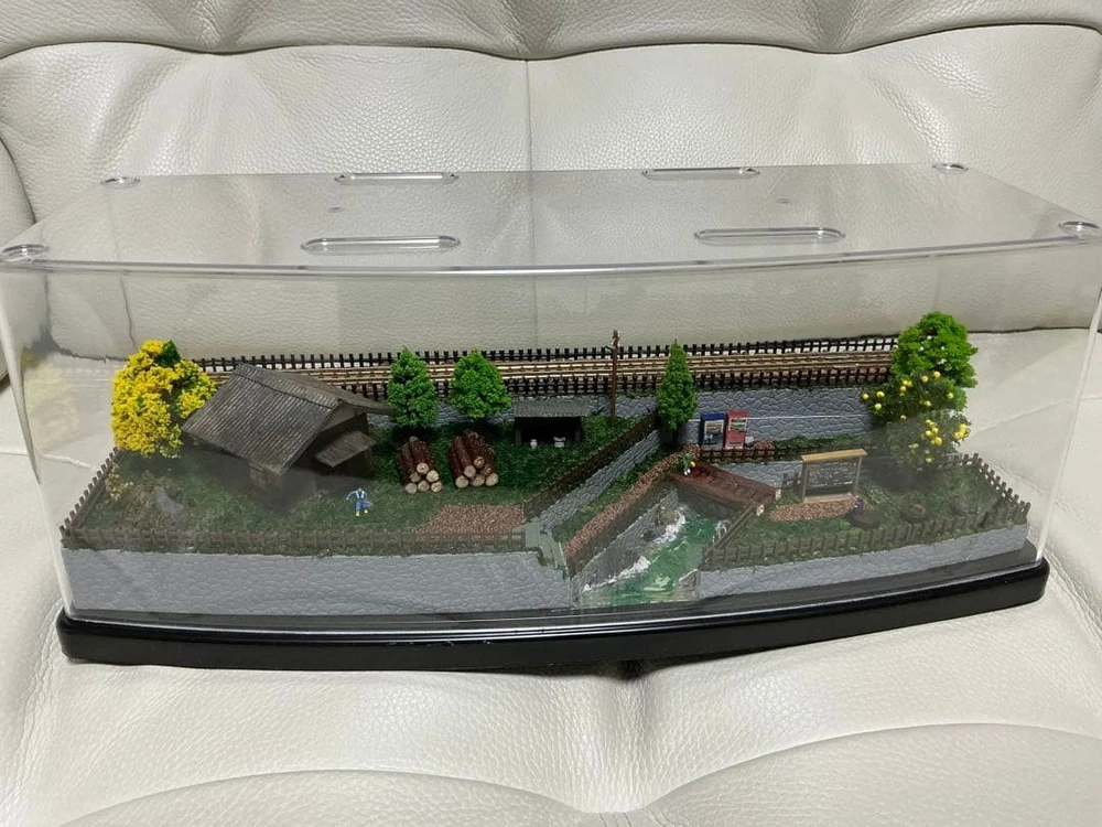 Model Train N Gauge Diorama Mountain Stream and Cargo Scenery Clear Case Included