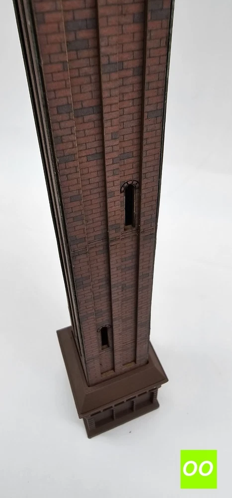 Modelux India Mill Chimney, Darw en - kit FOR THE TRUE SCALE FULL HEIGHT 870MM VERSION< PLEASE SEE OTHER LISTINGS This is produced at approx 50% scale of the massive India Mill Chimney - the actual chimney is approx 100m tall - this model is 420mm making it more appropriate for most layouts - the same model is also available at the same size for N but made with 1:150 scale brick print - this model has the correct brick print for 1:75. The base, intermediary collar and chimney top elements are all ready made out of plastic and are fully coloured as shown. The elevation elements are brick laminate at 1.3mm thick and Modelux Invisiseam, making the elevation edges virtually invisible. This chimney is sold here without the associated mill building - and the warehouse shown in one of the photos is for context only and is not included. The chimney looks great with any warehouse or mill building, especially a Modelux one... Simple to construct as the fine detail elements are all ready made... Height 420 mm Footprint 50mm x 50mm Flat pack. PVA required for assembly