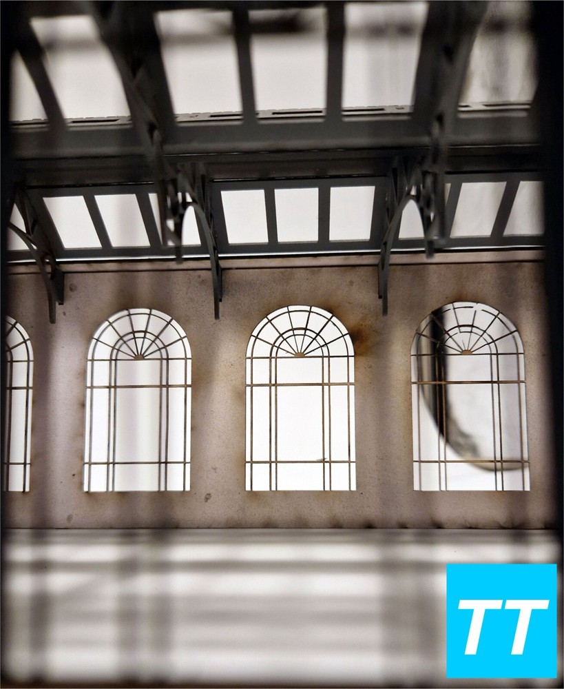 TT Gauge 1:120 Modelux 'Cheltenham' 2 lane Engine Shed Kit Dimensions on 2nd photo Fully coloured. The brick is litho printed and laminated onto 1.3mm multicore board. Every component is fully coloured The roof is grey and features structural trusses. The windows are not glazed - there is a glazing pack available in a separate listing The downspouts and downspout pans are NOT included, but are available separately The gables feature Modedux 'Invisiseam' meaning near invisible joins between the elevations. The walls are made 4 layers - acetate windows, then the window frame sheet, the window reveal brickwork, and finally the piers .... The whole assembly is robust and very realistic. This kit is designed so that another module can join in series, if desired, to extend the length ( as long as you require ). See Data sheet for dimensions ( photo on listing) See other listings for more Modelux at TT 1:120 YT Video for assembly - search Cheltenham Engine Tutorial Flat pack. PVA required for assembly