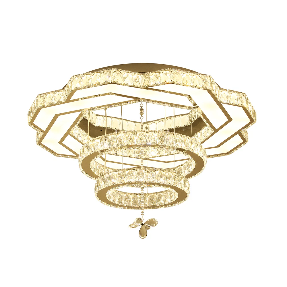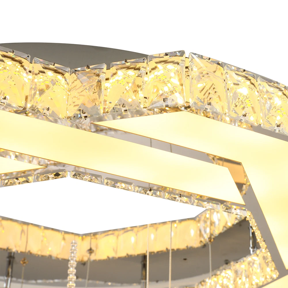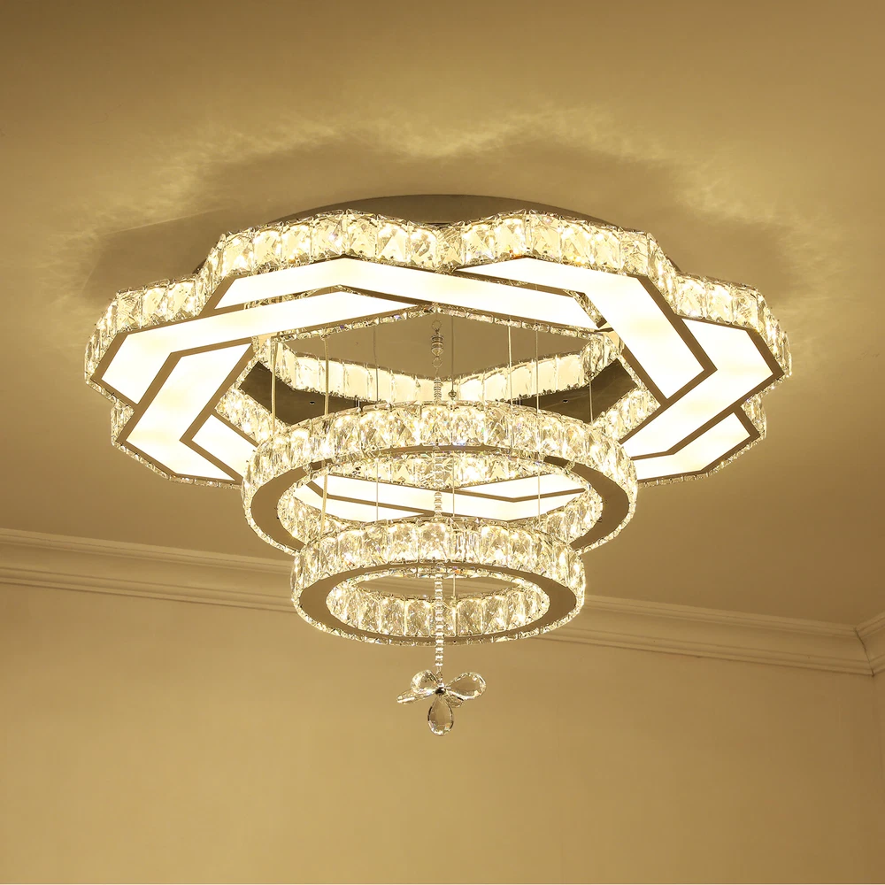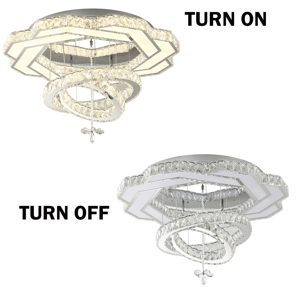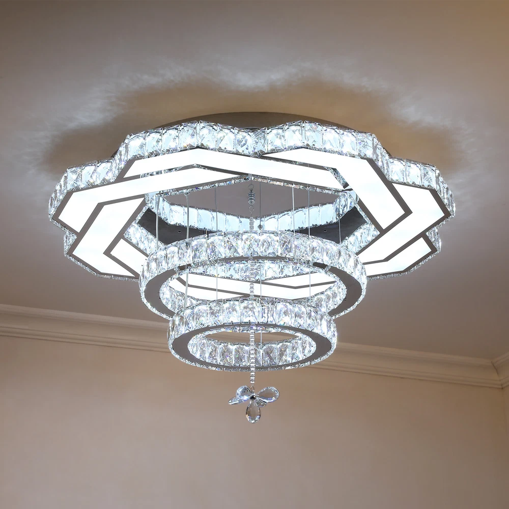 Modern 23.6inches Large Crystal Chandelier Round Ring Dimmable Living Room Lamps Description Bright and colorful lights can bring charm and warmth to your room, and light up your life. Made of premium iron, stainless steel, and crystal, this round crystal ceiling light is strong and durable. With 4 LED lights and a built-in intelligent driver, it can create bright light with great safety. It will be a great addition to your house. Key Features Stylish&Luxious Exterior: The clear crystal and glossy metal complement each other to create a sense of beauty. Meanwhile, the combination of rhombic and annular shapes makes this product look very luxurious, making it a good decorative piece to blend in with different decor styles and add color to the space. Great Durability : The stainless steel is rust-resistant with high strength, good toughness, and good formability. The crystal with high transparency is heat-resistant, strong, durable, and not easy to deform. Versatile Look: You can press the lockwire equipment on the chassis to adjust the length of the suspension wire and change the shape to be cross, parallel and inclined. Adjustable Working Time: You can control its working hours in advance (0.5/1 hour), which can bring you great convenience. Safer to Use: With a built-in intelligent driver, it can provide constant current protection, overload protection, low voltage protection, and short circuit protection, which is safe and reliable. Stepless Dimming: This light has three light colors (White/Neutral/Warm Light) with a color temperature of 3000K-4500K-6000K. Meanwhile, the brightness can be adjusted infinitely from 5% to 100% to meet different light needs. Large Applicable Area: The item can serve an area of 15-25m²/161.46-269ft². So you can feel the illumination over a considerable area. Memory Function: It can automatically memorize the color and brightness of the lamp, and keep consistent when it is used next time, which can avoid frequent settings and save a lot of energy. LED Light Source: The product uses four eye-friendly LED lights with a CRI of more than 85 and high brightness, which is energy-saving without dazzling and flashing, and allows you to experience more natural and bright colors. It can be used for about 30000 hours, saving your use cost. Excellent Gift: The beautiful appearance and good practicality make it a great gift for parents, friends, and lovers on birthdays and holidays. Protective Packaging: This product comes in a custom foam that resists compression and falls to prevent product damage in transit. Guaranteed Customer Service: We aim to provide quality products and services. If you have problems, please feel free to contact us. We will reply and solve the problem for you as soon as possible. Details Remote Control: It allows you to remotely control the timing, brightness, light color, etc within 3m/9ft, saving you lots of effort. Round Base: It increases stress area, and can make the ceiling light fixed firm without falling easily. Application It is suitable for the living room, dining room, study bedroom, small bedroom, conference room, and other places of 15-25m²/161.46-269ft². Specification Model: YL091 Color: White, Clear Material: Iron, Stainless Steel, Crystal Style: Modern Shape: Round Rated Voltage: 110-240V Rated Power: 80W Plug Type: US Standard Light Source Type: LED (Included) Light Color: White, Neutral, Warm Light Color Teperature: 3000K-4500K-6000K CRI: >85 Timing: 0.5h/1h Service Time: About 30000h Luminous Flux: 4550 Lumen Efficiency: A+ Brightness: From 5% to 100% (Stepless Adjustment) Battery Type: 2* AAA Batteries (Not Included) Control Method: Remote Control Mount Type: Ceiling Mount Applicable Area: 15-25m²/161.46-269ft² Maximum Remote Control Distance: 3m/9ft Number of LED Lights: 4 Assembly Required: Yes Product Height: 60cm/23.6inch Product Length: 60cm/23.6inch Package Included 1* Round Crystal Ceiling Light 1* Remote Control 1* English Manual All Accessories for Installation Notes Please check the dimensions of the product before ordering to ensure it fits your home. Please wear electric insulation gloves and avoid scratching the surface of the lamp plate and the electric wire when installing. Please make sure that the power supply has been cut off before installation, and conduct a power test before installation. Please note that the remote control distance is 3m/9.84ft, please aim at the ceiling lamp when using it. Please use the lamp within the applicable voltage range and clean lamps regularly. Please cut off the power supply when you clean the light or replace light bulbs. Please note that the batteries for the remote control are not included in the package, you need to prepare two AAA batteries yourself. Please read the manual completely before installation, pay particular attention to the safety instructions included, and use the product in strict accordance with the instructions. Please allow the slight color difference caused by the shooting light and 1-3cm error due to manual measurement, and make sure you do not mind before ordering. Payment Delivery details Terms of sales About us Contact us Payment We accept ebay payment 。 Fees such as import duties, taxes are not included in the item price or shipping costs. These charges are the buyer's responsibility. Delivery details Shipping: 2-9 working days to: USA Terms of sales We maintain high standards of excellence and strive for hundred percent customer satisfaction. Feedback is very important to us. We hope that you contact us immediately before you give neutral or negative feedback, so that we can address your concerns. It is impossible to address issues if we do not know about them! About us Your satis faction is our ultimate goal. We work hard to earn your trust and future business. Our certified technicians have tested each item before shipping. The unit comes with 1 year limited warranty on all manufacturing defects. a) If you receive a defective item, you may
