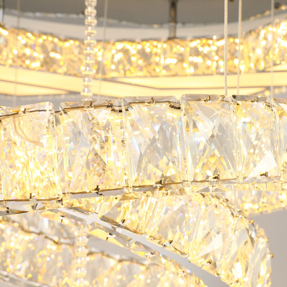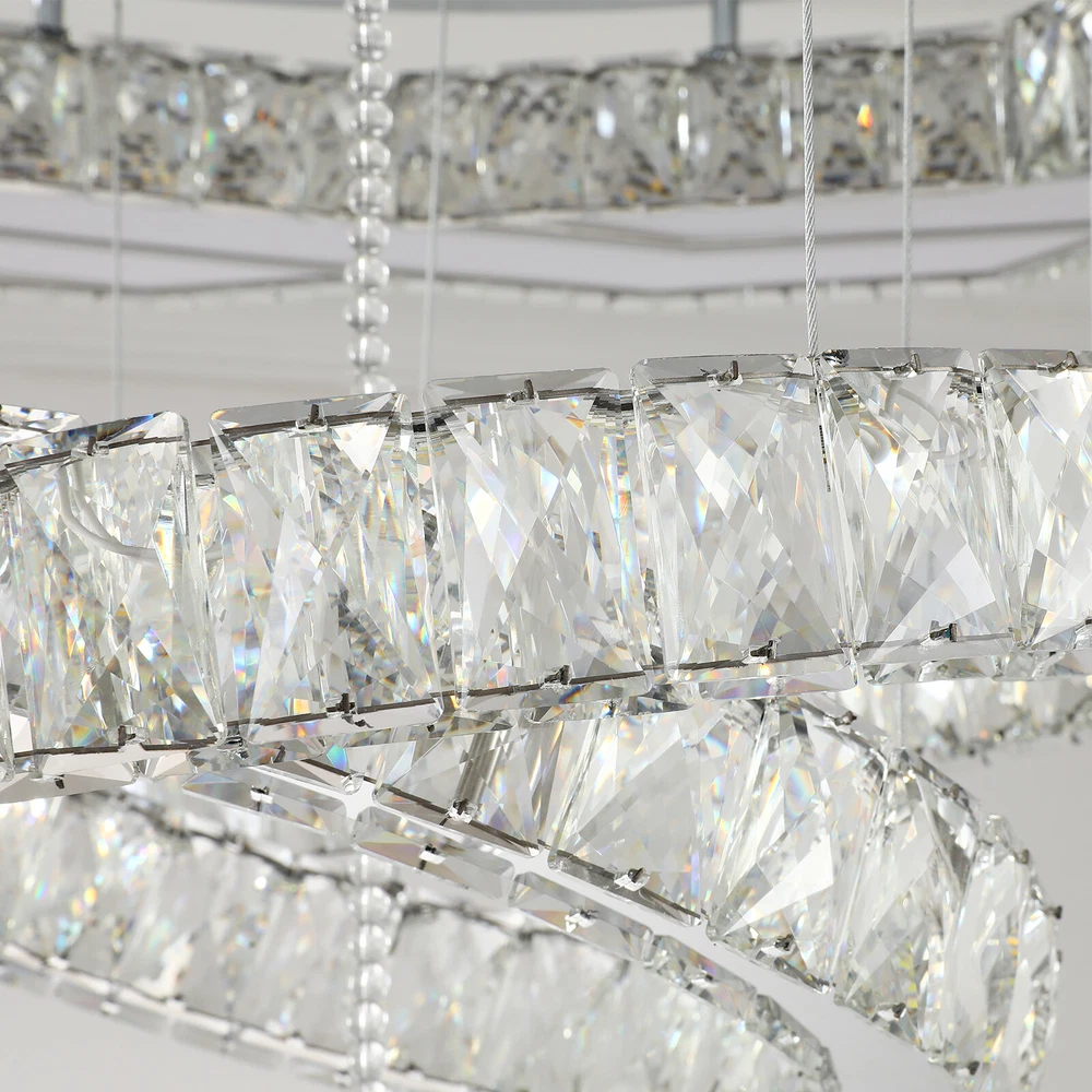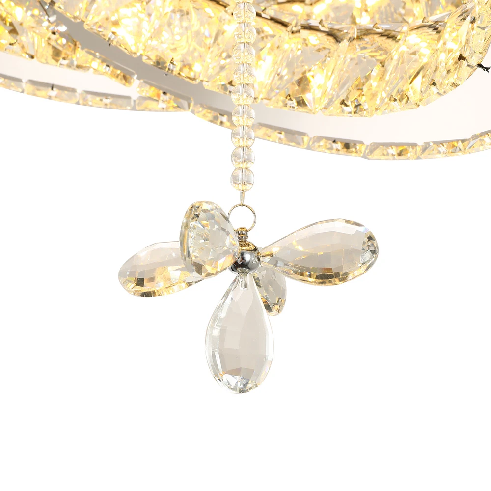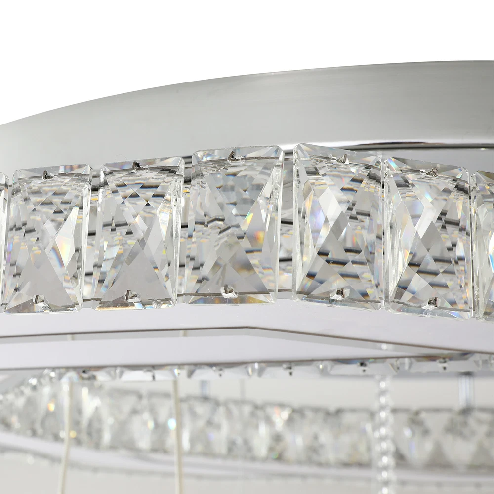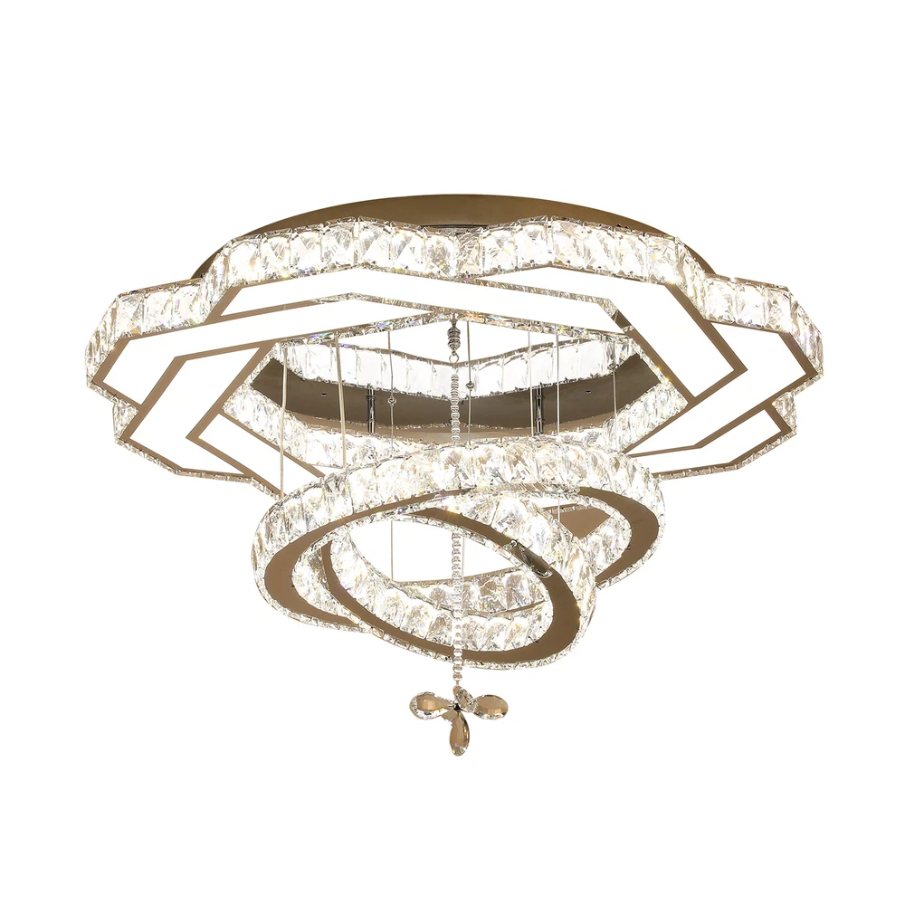 Modern 23.6inches Large Crystal Chandelier Round Ring Dimmable Living Room Lamps Description Bright and colorful lights can bring charm and warmth to your room, and light up your life. Made of premium iron, stainless steel, and crystal, this round crystal ceiling light is strong and durable. With 4 LED lights and a built-in intelligent driver, it can create bright light with great safety. It will be a great addition to your house. Key Features Stylish&Luxious Exterior: The clear crystal and glossy metal complement each other to create a sense of beauty. Meanwhile, the combination of rhombic and annular shapes makes this product look very luxurious, making it a good decorative piece to blend in with different decor styles and add color to the space. Great Durability : The stainless steel is rust-resistant with high strength, good toughness, and good formability. The crystal with high transparency is heat-resistant, strong, durable, and not easy to deform. Versatile Look: You can press the lockwire equipment on the chassis to adjust the length of the suspension wire and change the shape to be cross, parallel and inclined. Adjustable Working Time: You can control its working hours in advance (0.5/1 hour), which can bring you great convenience. Safer to Use: With a built-in intelligent driver, it can provide constant current protection, overload protection, low voltage protection, and short circuit protection, which is safe and reliable. Stepless Dimming: This light has three light colors (White/Neutral/Warm Light) with a color temperature of 3000K-4500K-6000K. Meanwhile, the brightness can be adjusted infinitely from 5% to 100% to meet different light needs. Large Applicable Area: The item can serve an area of 15-25m²/161.46-269ft². So you can feel the illumination over a considerable area. Memory Function: It can automatically memorize the color and brightness of the lamp, and keep consistent when it is used next time, which can avoid frequent settings and save a lot of energy. LED Light Source: The product uses four eye-friendly LED lights with a CRI of more than 85 and high brightness, which is energy-saving without dazzling and flashing, and allows you to experience more natural and bright colors. It can be used for about 30000 hours, saving your use cost. Excellent Gift: The beautiful appearance and good practicality make it a great gift for parents, friends, and lovers on birthdays and holidays. Protective Packaging: This product comes in a custom foam that resists compression and falls to prevent product damage in transit. Guaranteed Customer Service: We aim to provide quality products and services. If you have problems, please feel free to contact us. We will reply and solve the problem for you as soon as possible. Details Remote Control: It allows you to remotely control the timing, brightness, light color, etc within 3m/9ft, saving you lots of effort. Round Base: It increases stress area, and can make the ceiling light fixed firm without falling easily. Application It is suitable for the living room, dining room, study bedroom, small bedroom, conference room, and other places of 15-25m²/161.46-269ft². Specification Model: YL091 Color: White, Clear Material: Iron, Stainless Steel, Crystal Style: Modern Shape: Round Rated Voltage: 110-240V Rated Power: 80W Plug Type: US Standard Light Source Type: LED (Included) Light Color: White, Neutral, Warm Light Color Teperature: 3000K-4500K-6000K CRI: >85 Timing: 0.5h/1h Service Time: About 30000h Luminous Flux: 4550 Lumen Efficiency: A+ Brightness: From 5% to 100% (Stepless Adjustment) Battery Type: 2* AAA Batteries (Not Included) Control Method: Remote Control Mount Type: Ceiling Mount Applicable Area: 15-25m²/161.46-269ft² Maximum Remote Control Distance: 3m/9ft Number of LED Lights: 4 Assembly Required: Yes Product Height: 60cm/23.6inch Product Length: 60cm/23.6inch Package Included 1* Round Crystal Ceiling Light 1* Remote Control 1* English Manual All Accessories for Installation Notes Please check the dimensions of the product before ordering to ensure it fits your home. Please wear electric insulation gloves and avoid scratching the surface of the lamp plate and the electric wire when installing. Please make sure that the power supply has been cut off before installation, and conduct a power test before installation. Please note that the remote control distance is 3m/9.84ft, please aim at the ceiling lamp when using it. Please use the lamp within the applicable voltage range and clean lamps regularly. Please cut off the power supply when you clean the light or replace light bulbs. Please note that the batteries for the remote control are not included in the package, you need to prepare two AAA batteries yourself. Please read the manual completely before installation, pay particular attention to the safety instructions included, and use the product in strict accordance with the instructions. Please allow the slight color difference caused by the shooting light and 1-3cm error due to manual measurement, and make sure you do not mind before ordering. Payment Delivery details Terms of sales About us Contact us Payment We accept ebay payment 。 Fees such as import duties, taxes are not included in the item price or shipping costs. These charges are the buyer's responsibility. Delivery details Shipping: 2-9 working days to: USA Terms of sales We maintain high standards of excellence and strive for hundred percent customer satisfaction. Feedback is very important to us. We hope that you contact us immediately before you give neutral or negative feedback, so that we can address your concerns. It is impossible to address issues if we do not know about them! About us Your satis faction is our ultimate goal. We work hard to earn your trust and future business. Our certified technicians have tested each item before shipping. The unit comes with 1 year limited warranty on all manufacturing defects. a) If you receive a defective item, you may