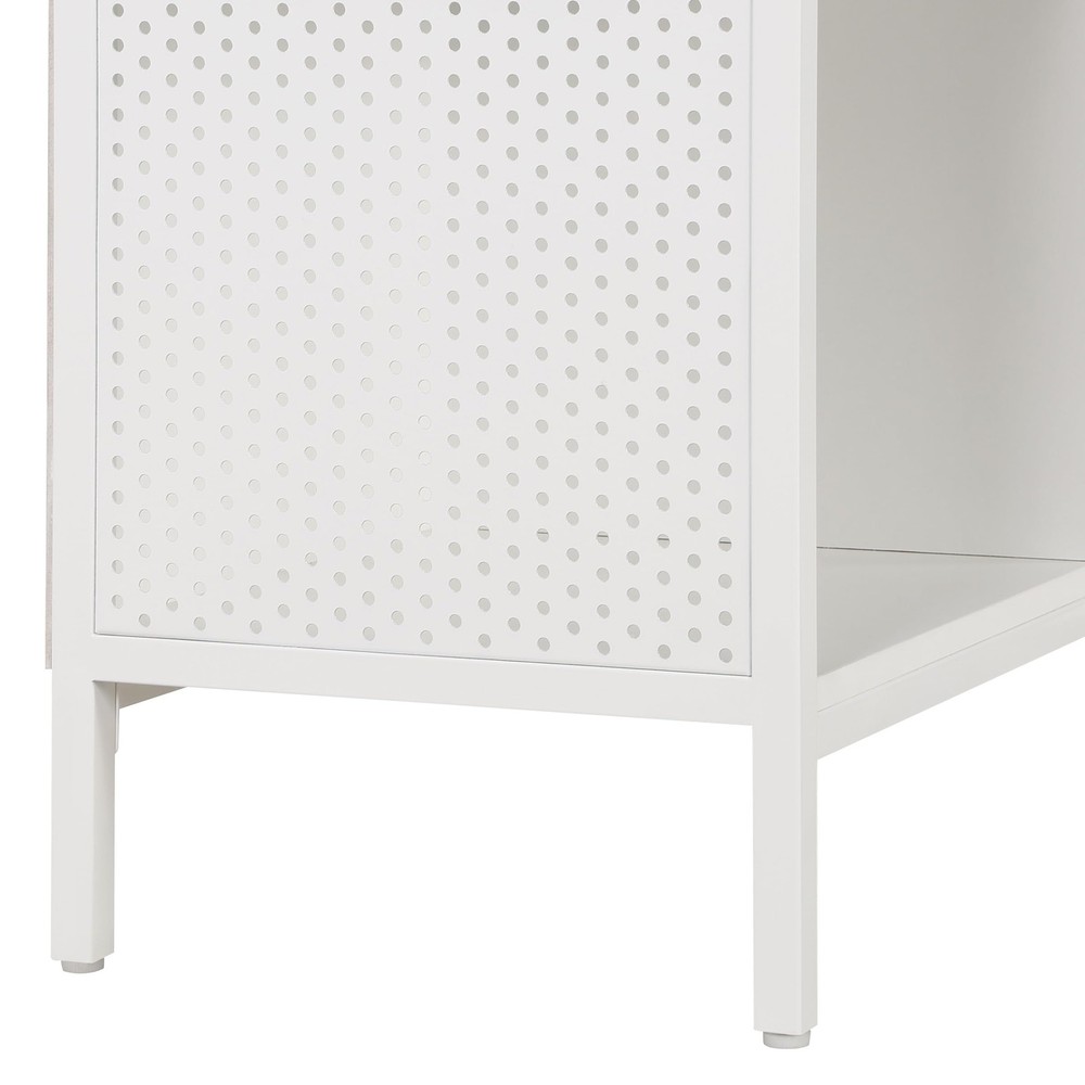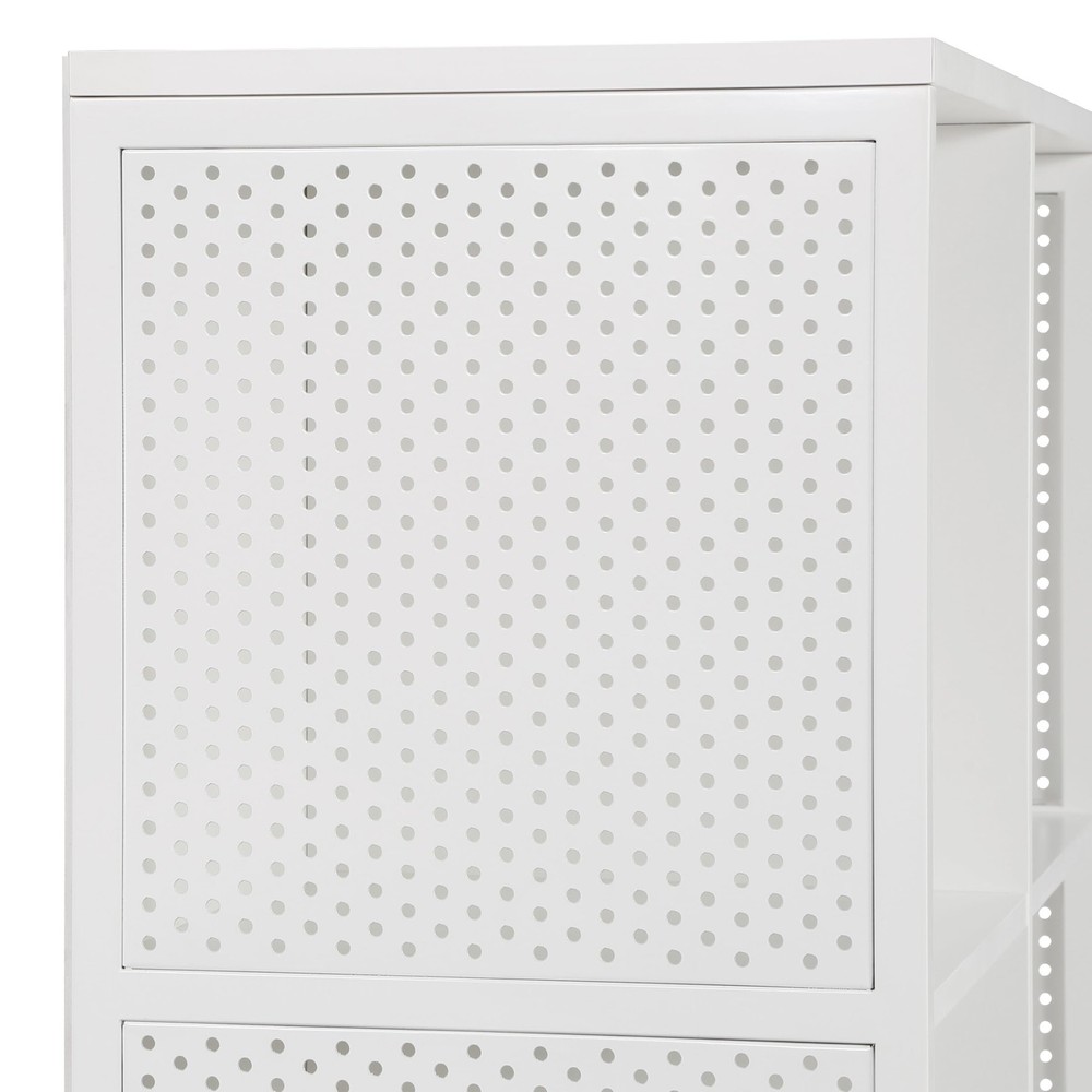 Solve your practical storage solution in style with our wood and metal storage bookshelf With 4, 13-inch x 13-inch cube shelves, this bookshelf is the perfect size for storing books, decorations, baskets or storage tubs. The woodgrain finish and perforated metal sides give it a modern industrial style and that will elevate any room and the sturdy metal frame with center support will add long-lasting durability and strength. Dimensions 29-inchess wide x 13.5-inchess deep x 34-inches high Assembly is a breeze with the easy cam-lock system, so you can have your new bookshelf up and running in no time.