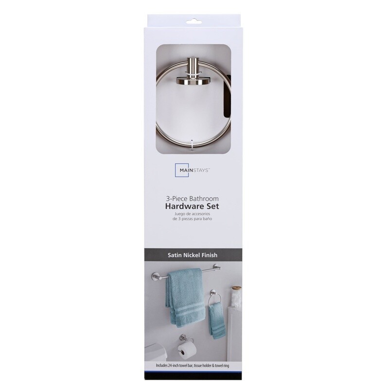You may also like Multicolor Ceramic Bath Accessories Set Soap Dispenser Toothbrush Holder 2pc New 26.41 USD 27.8 USD Free shipping 5% off 20 Piece Bathroom Accessory Set Shower Curtain Soap Dispenser Toothbrush Holder 36.8 USD 38.74 USD Free shipping 5% off Ceramic Stoneware Bath Accessory Set Soap Pump Tumbler Organizer Tray 3-Piece US 22.04 USD 23.2 USD Free shipping 5% off The Modern Round 3-Piece Bath Accessory Kit in Satin Nickel features clean designs with concealed screws for a timeless look. This kit includes a matching 24" towel bar, round towel ring, and a single post, euro-style toiler paper holder. Crafted from metal, each piece is durable and built to last, helping your bathroom remain effortlessly stylish. Mounting hardware and instruction manuals included. Includes matching Satin Nickel 24" towel bar, towel ring, and toiler paper holder Contemporary, sleek design with concealed screws Made of zinc & aluminum alloy Mounting hardware included Easy DIY installation Coordinates with Modern Round Bath Accessories You may also like Dental Care Natural Dog Treats Soft Texture Oral Health Chews 27 Count New 39.16 USD 41.22 USD Free shipping 5% off Slim Bathroom Floor Cabinet Freestanding Storage Adjustable Shelves Space Saver 94.9 USD 99.89 USD Free shipping 5% off Rolling Storage Cart Organizer Baskets 12 Removable Drawers For Home Office New 91.44 USD 96.25 USD Free shipping 5% off Manual Dart Gun Blaster Outdoor Toy W/ 24 Foam Pro Darts Removable Safe-Lok Hot 53.2 USD 56.0 USD Free shipping 5% off Salmon Sweet Potato Limited Ingredient Dry Dog Food Grain Free 22 lb Kibble New 90.23 USD 94.98 USD Free shipping 5% off Artificial Grass Large Polypropylene Pile Durable Water Proof Indoor Outdoor Us 103.86 USD 109.33 USD Free shipping 5% off 2-Shelf Storage Shelf Unit Tower W/ Hamper Display Bathroom Laundry Room Steel 47.36 USD 49.85 USD Free shipping 5% off 6 Piece Towel Set 100% Cotton Bath Towels Hand Towels Wash Soft Light Blue Towel 54.52 USD 57.39 USD Free shipping 5% off Stainless Steel Cookware Set 14 Pc Induction Compatible Dishwasher Safe Kitchen 112.75 USD 118.68 USD Free shipping 5% off Gray 4 Piece 100% Cotton Luxury Soft Flannel Deep Pocket Sheet Set, Queen 75.24 USD 79.2 USD Free shipping 5% off 10 Amp 16 Inch Electric Lawn Mower Corded Push Mulching Bagger High Efficiency 188.72 USD 198.65 USD Free shipping 5% off 9FT Outdoor Vented Patio Umbrella with Crank Sun Umbrella for Garden Deck US 56.76 USD 59.75 USD Free shipping 5% off