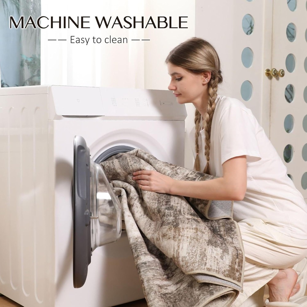 This rug is a game-changer! The soft, thin texture feels amazing underfoot, and the neutral abstract design adds a stylish touch to any room. Love that it’s machine washable—cleaning is a breeze, and the colors stay vibrant. Perfect for busy households looking for both style and convenience. Highly recommend!