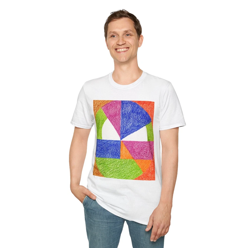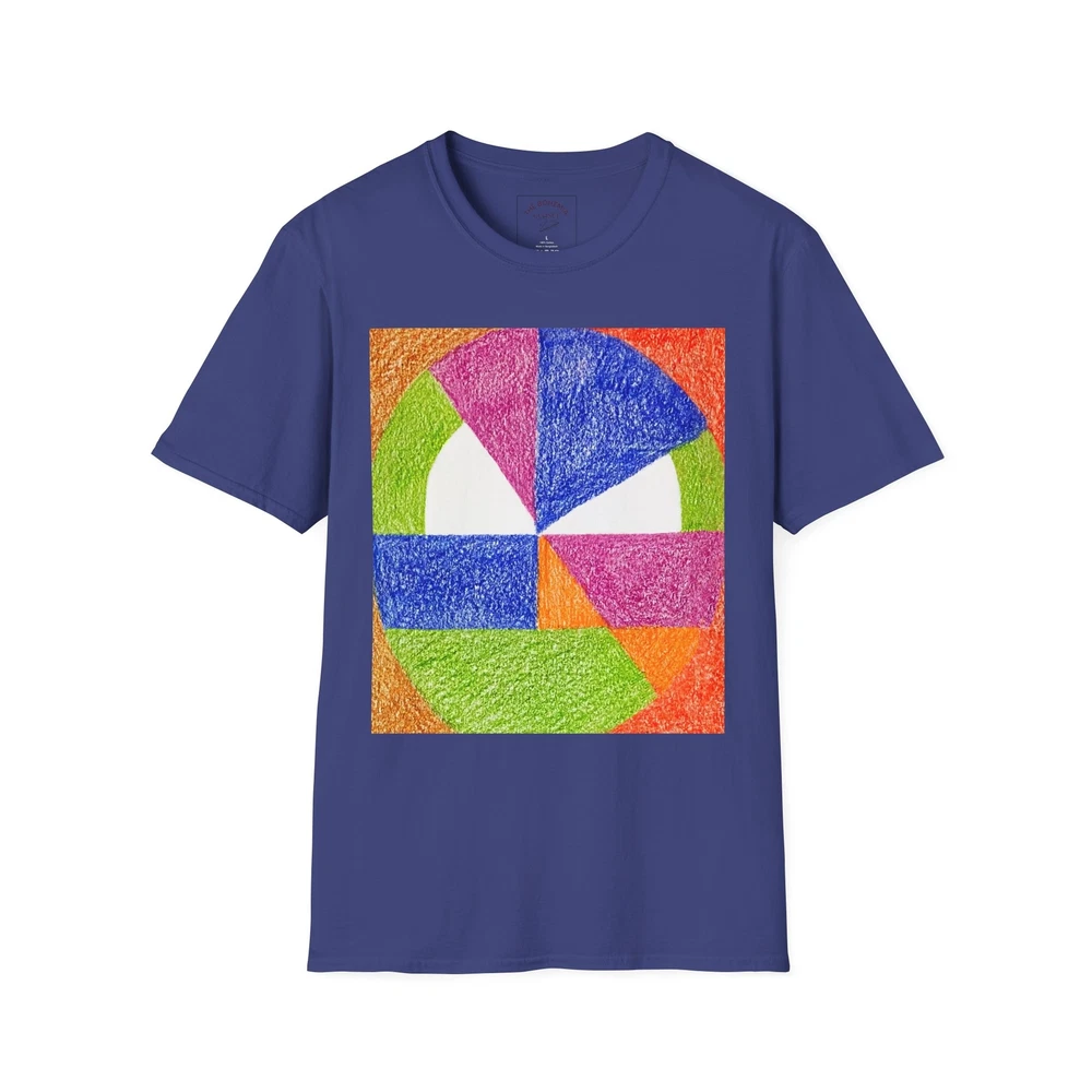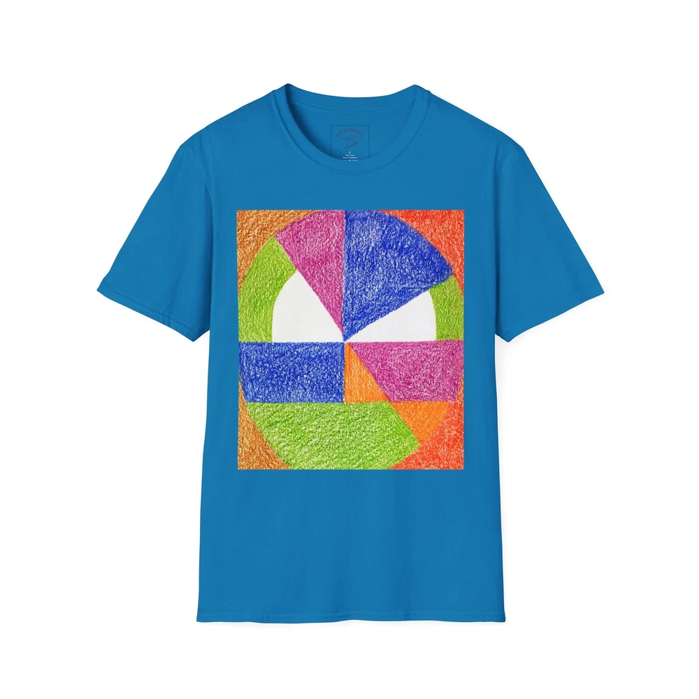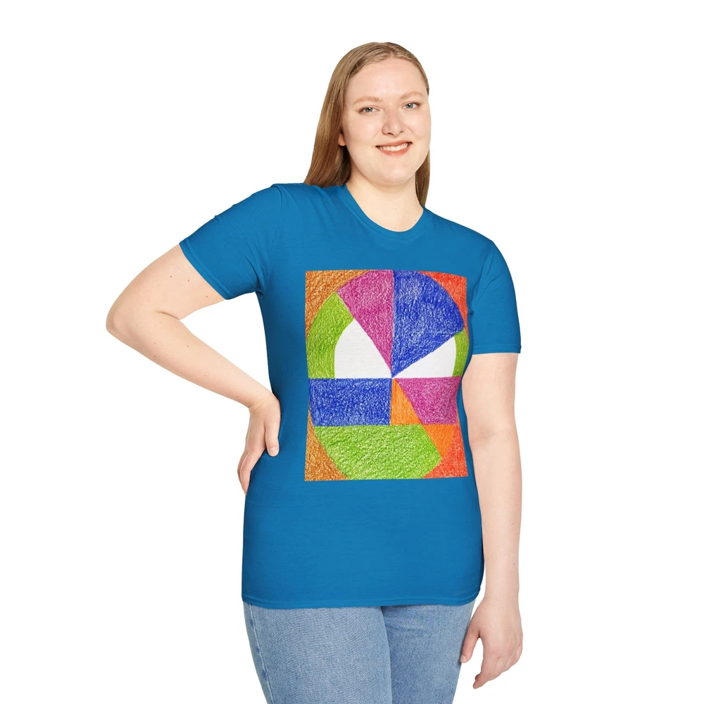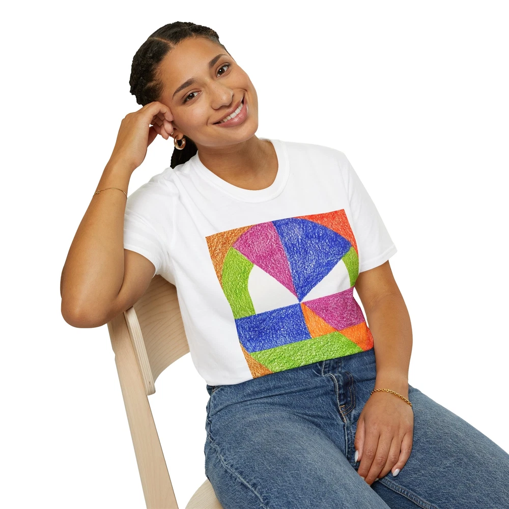 The Sazzy Smile Art Tee! Immersive Heads, my new collection is a series of colorful geometric shapes now available and printed on graphic Tees! Elevate your wardrobe with this stylish Unisex Softstyle T-Shirt. Crafted from lightweight and soft ring-spun cotton, this tee offers a comfortable and relaxed fit, perfect for daily wear. This t-shirt provides a perfect blend of style and comfort. Ideal for trendsetters and art lovers alike, it's a wonderful gift for birthdays, holidays, or any celebration. Product features Elastic ribbed collar Made with durable and smooth fabric perfect for printing Ethically produced with US cotton and meets quality safety standards. Care instructions - Do not bleach - Tumble dry: low heat - Iron, steam or dry: low heat - Machine wash: cold (max 30C or 90F), with similar colors