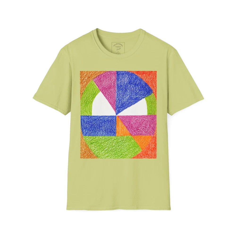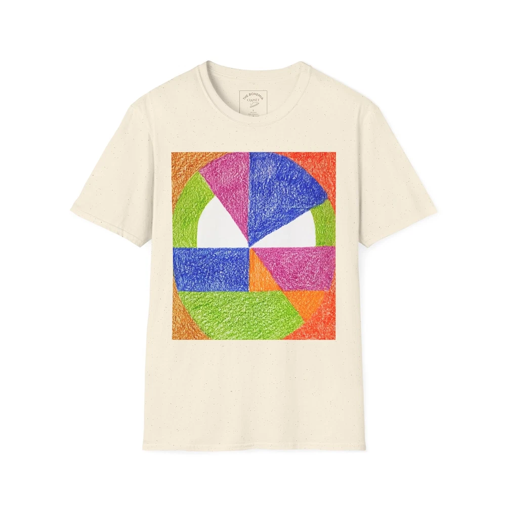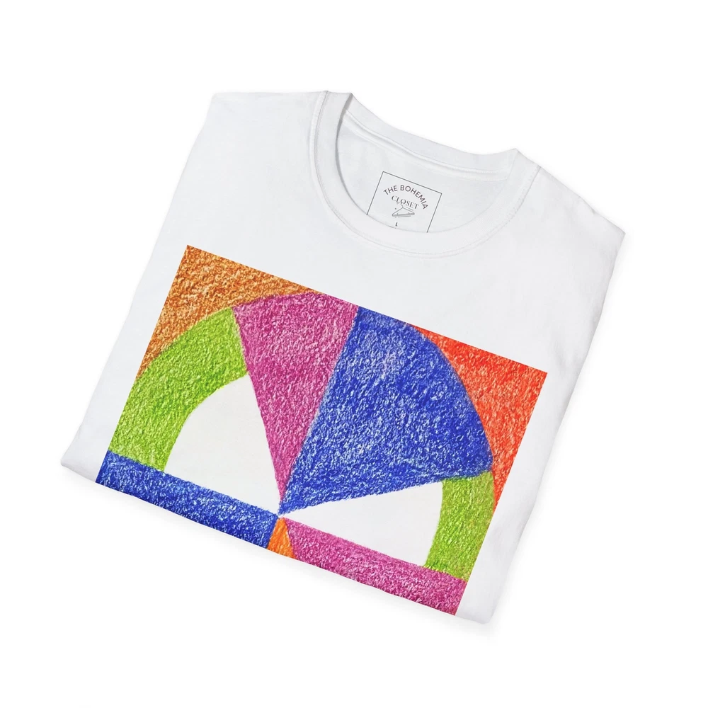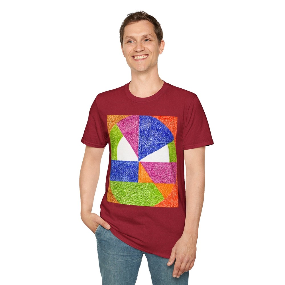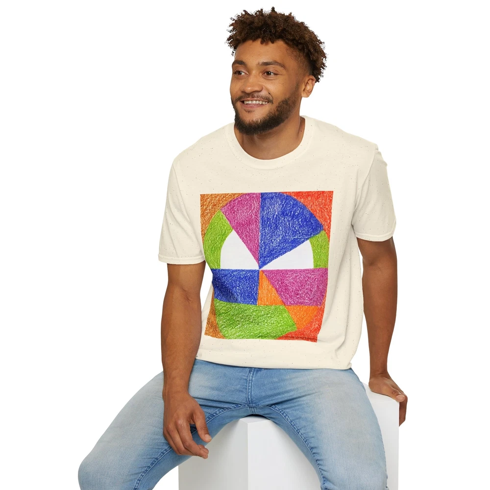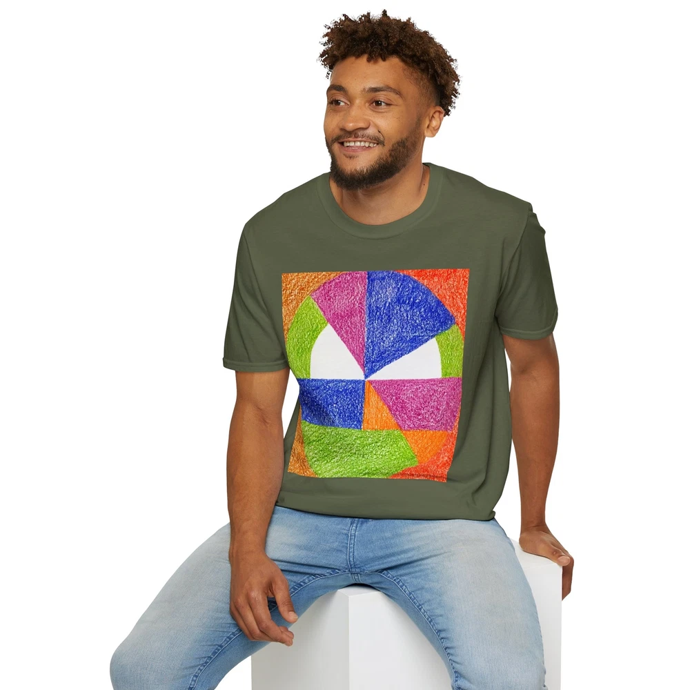 The Sazzy Smile Art Tee! Immersive Heads, my new collection is a series of colorful geometric shapes now available and printed on graphic Tees! Elevate your wardrobe with this stylish Unisex Softstyle T-Shirt. Crafted from lightweight and soft ring-spun cotton, this tee offers a comfortable and relaxed fit, perfect for daily wear. This t-shirt provides a perfect blend of style and comfort. Ideal for trendsetters and art lovers alike, it's a wonderful gift for birthdays, holidays, or any celebration. Product features Elastic ribbed collar Made with durable and smooth fabric perfect for printing Ethically produced with US cotton and meets quality safety standards. Care instructions - Do not bleach - Tumble dry: low heat - Iron, steam or dry: low heat - Machine wash: cold (max 30C or 90F), with similar colors