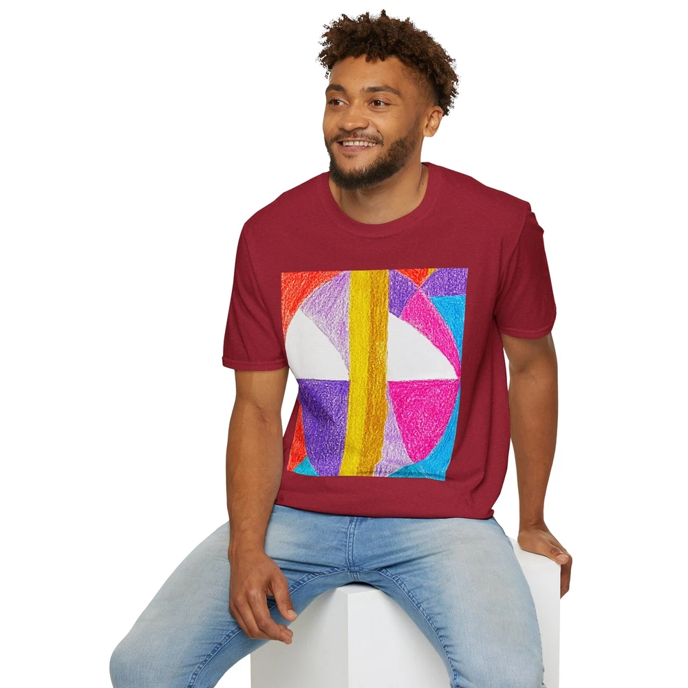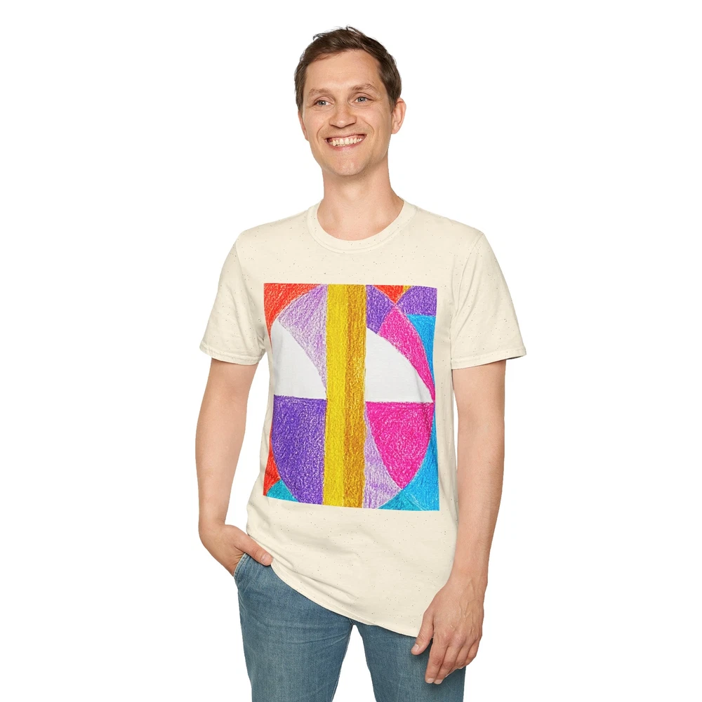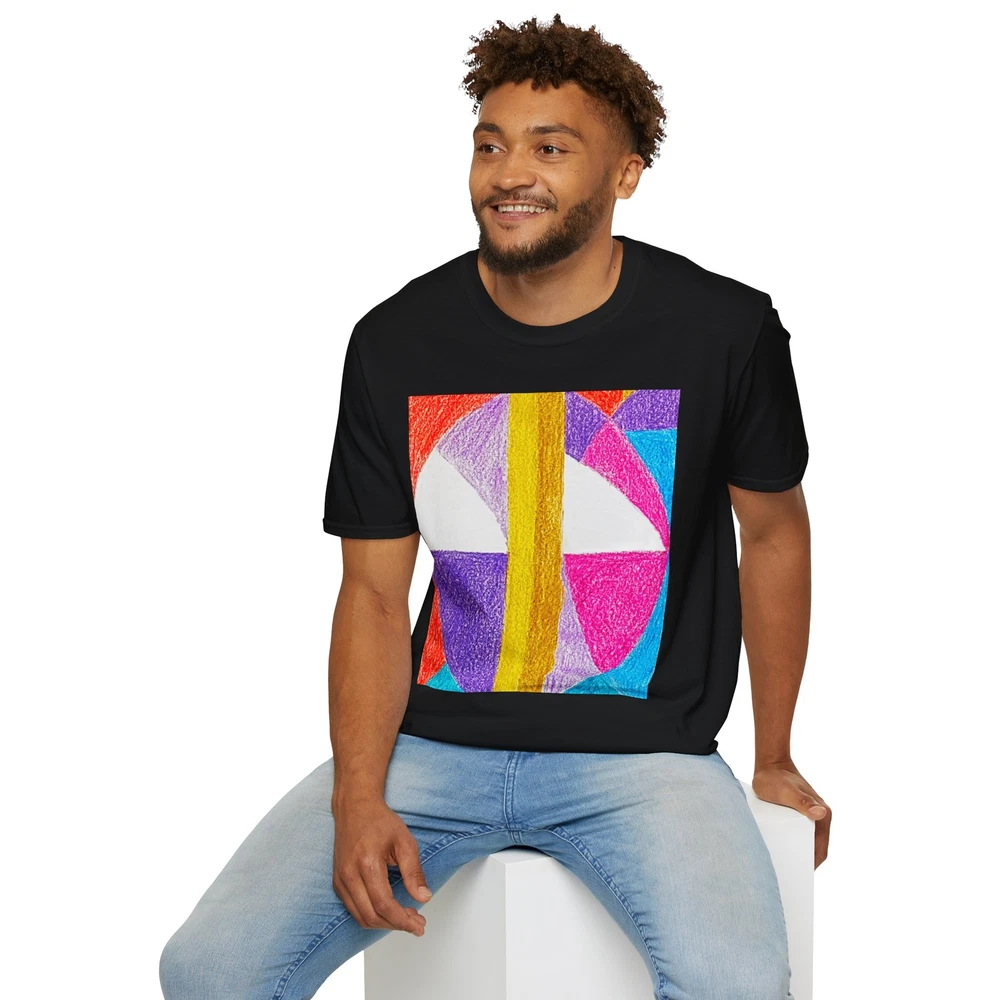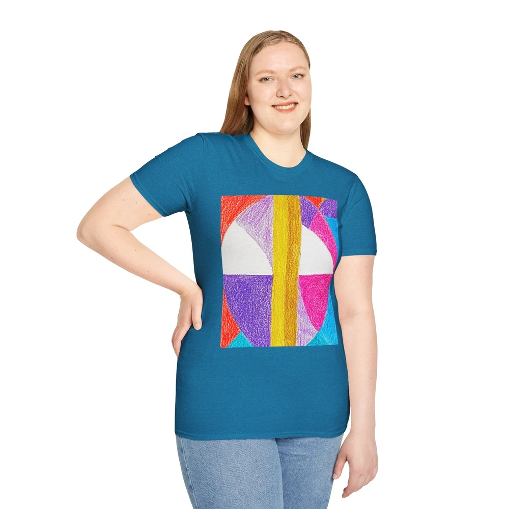 The Starry-Eye Art Tee! Immersive Heads, my new collection is a series of colorful geometric shapes now available and printed on graphic Tees! Elevate your wardrobe with this stylish Unisex Softstyle T-Shirt. Crafted from lightweight and soft ring-spun cotton, this tee offers a comfortable and relaxed fit, perfect for daily wear. This t-shirt provides a perfect blend of style and comfort. Ideal for trendsetters and art lovers alike, it's a wonderful gift for birthdays, holidays, or any celebration. Product features - Elastic ribbed collar - Made with durable and smooth fabric perfect for printing - Ethically produced with US cotton and meets quality safety standards Care instructions - Do not bleach - Tumble dry: low heat - Iron, steam or dry: low heat - Machine wash: cold (max 30C or 90F), with similar colors