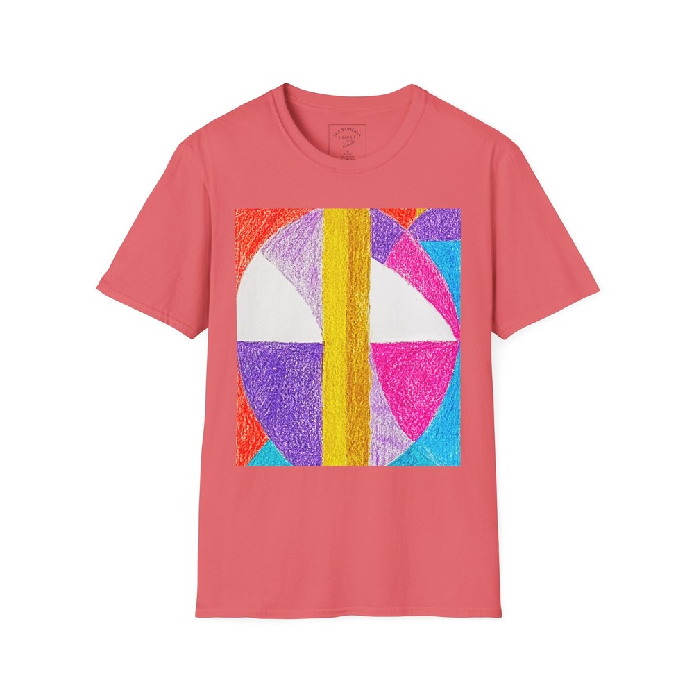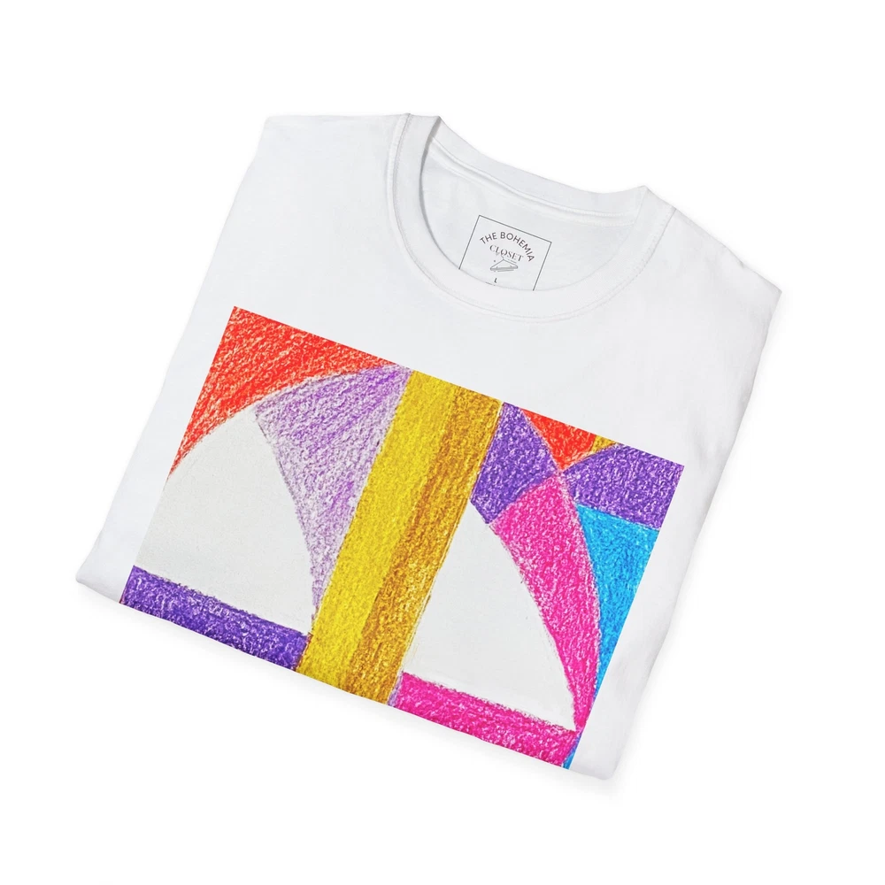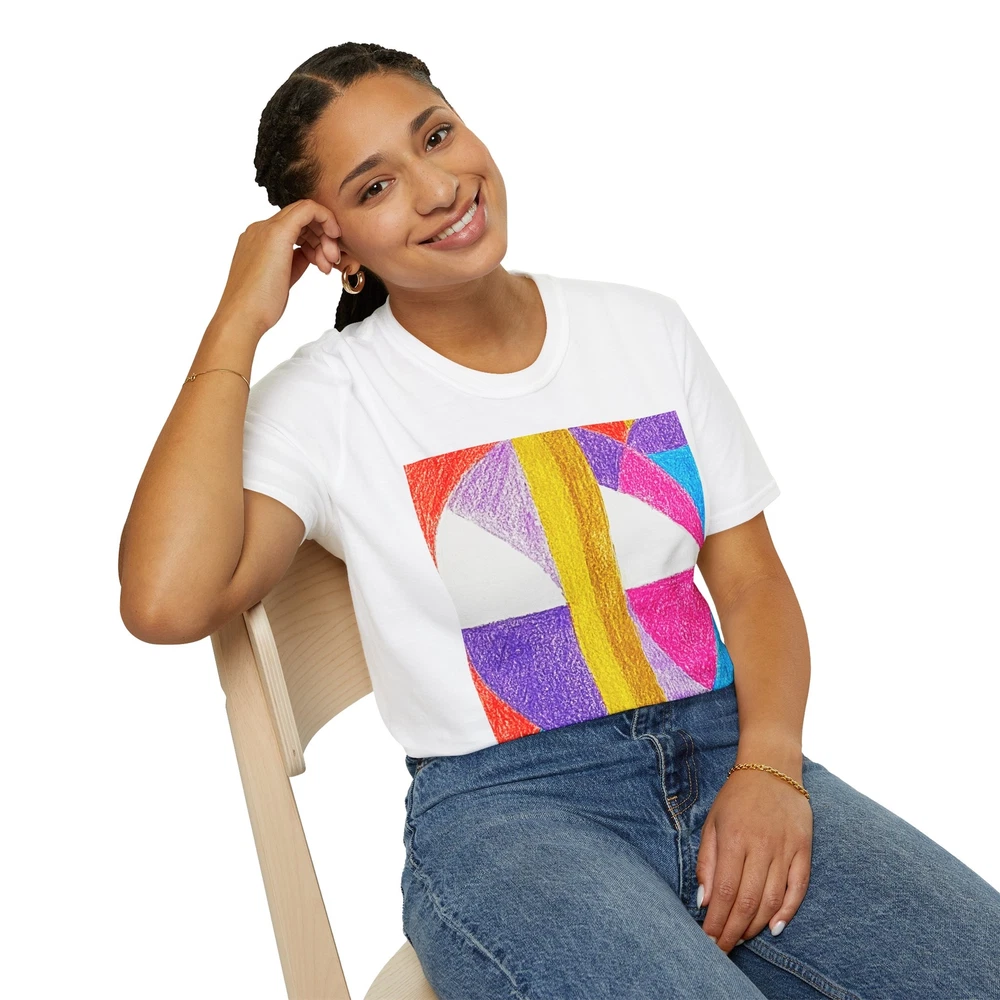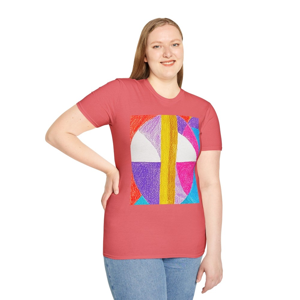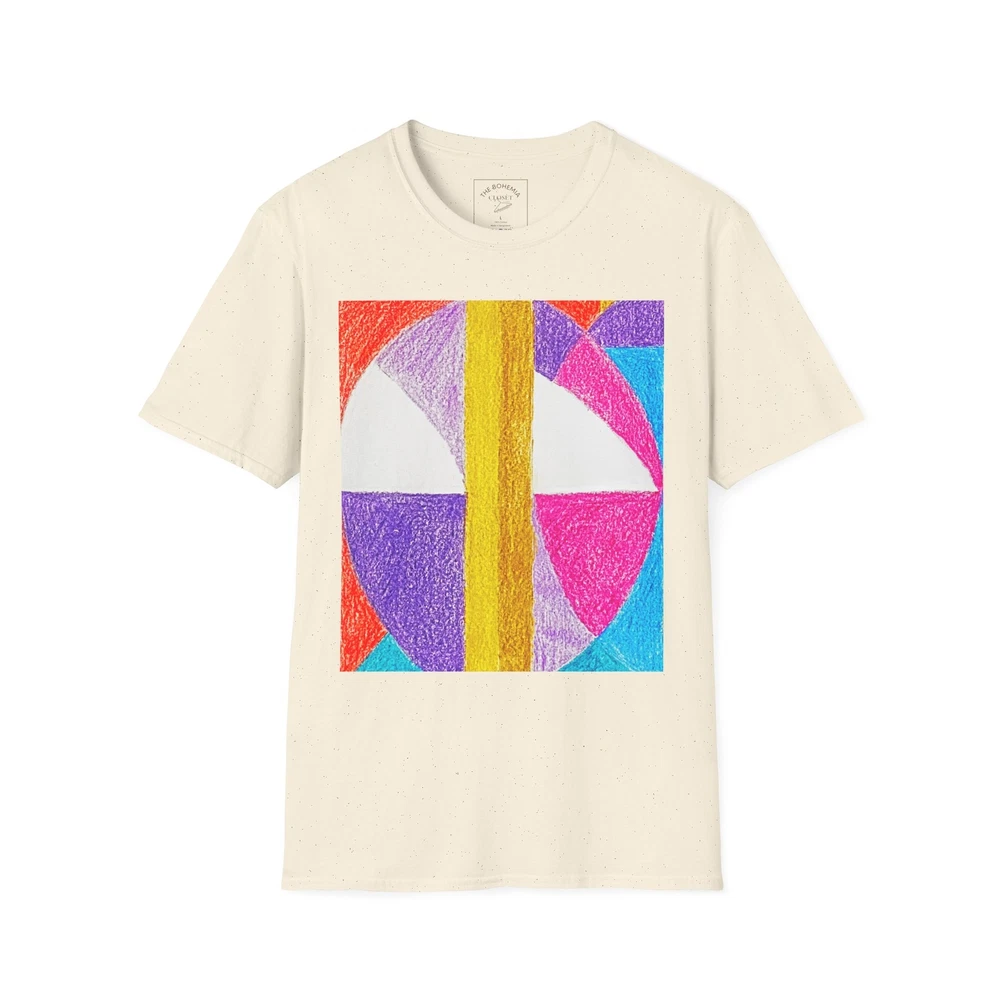 The Starry-Eye Art Tee! Immersive Heads, my new collection is a series of colorful geometric shapes now available and printed on graphic Tees! Elevate your wardrobe with this stylish Unisex Softstyle T-Shirt. Crafted from lightweight and soft ring-spun cotton, this tee offers a comfortable and relaxed fit, perfect for daily wear. This t-shirt provides a perfect blend of style and comfort. Ideal for trendsetters and art lovers alike, it's a wonderful gift for birthdays, holidays, or any celebration. Product features - Elastic ribbed collar - Made with durable and smooth fabric perfect for printing - Ethically produced with US cotton and meets quality safety standards Care instructions - Do not bleach - Tumble dry: low heat - Iron, steam or dry: low heat - Machine wash: cold (max 30C or 90F), with similar colors