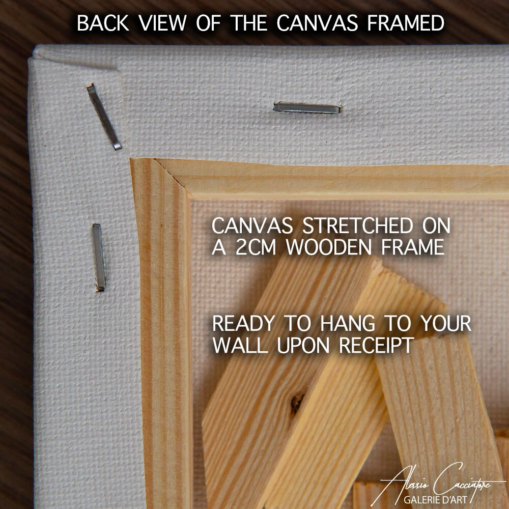 ------------- About the wall art ------------- Handmade by our craftsmen in the USA for American/Canadian customers or Germany for our European customers. · All our canvases are mounted on a 2cm (0.75") handmade wooden frame (you can ask in message for 4cm) · Once received, all you have to do is simply put your new print on the wall. · We use special UV-resistant inks that will prevent the colors from fading over time. · Our canvases have a lifespan of 700 to 1000 years. · As no solvents are used, our canvas prints are perfectly safe for children and people with allergies. ------------ Delivery and Guarantees ------------- FREE DELIVERY: You will receive your canvas between 3 and 7 days for free You support German, American and Australian industries · Not satisfied with the product? You can return it within 14 days. · Does the product arrive damaged? We'll send you one back immediately · Any questions? Our customer service responds within 24 hours, 7/7 ------------- About the gallery ------------- - 10 years of experience - Thousands of canvases sent around the world - Handmade canvas - 4.9/5 stars If you have a question, don't hesitate to send a message to the artist. Do you like this artwork? Then ADD IT TO YOUR CARD and receive it within 4 to 7 days.