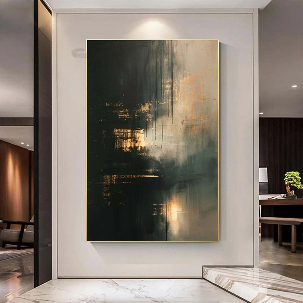 Modern Abstract House Decor Hand-painted oil painting on canvas gray black