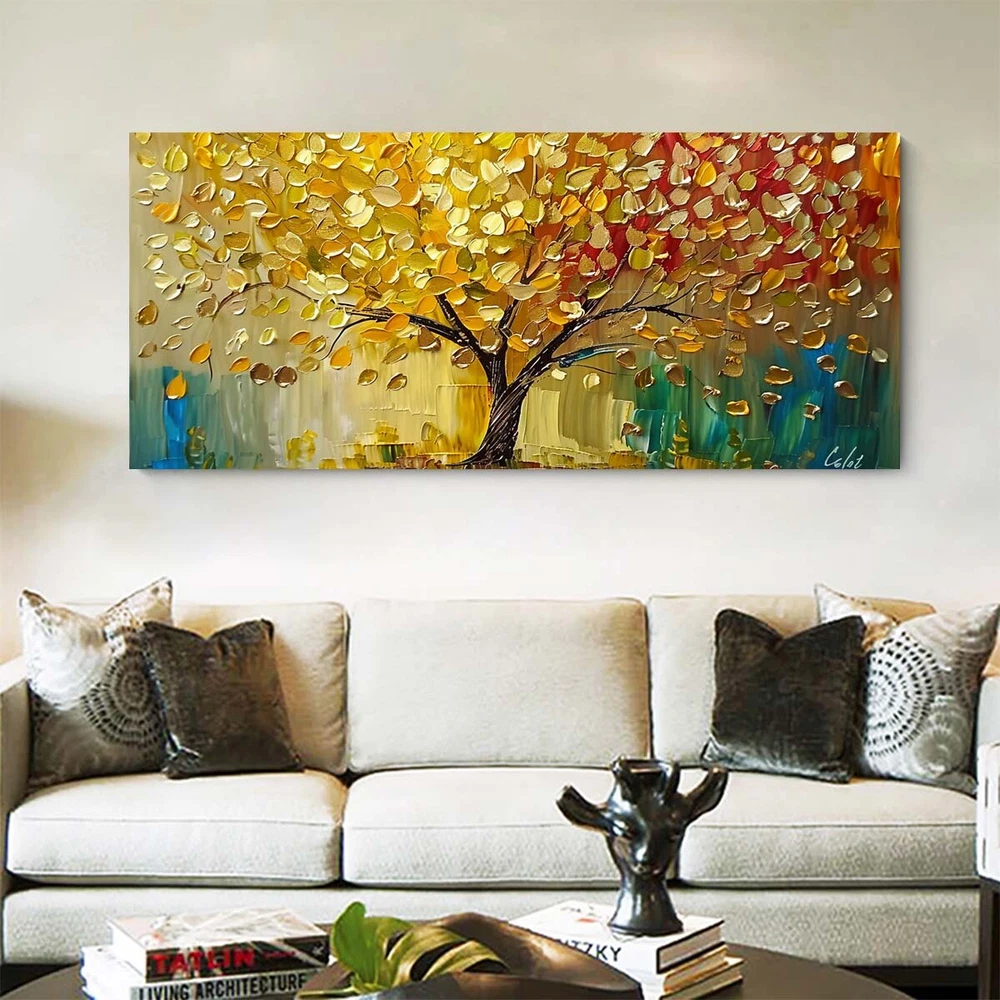 Modern Abstract Painting Golden Tree 3D Oil Painting Hand Painted On Canvas Red