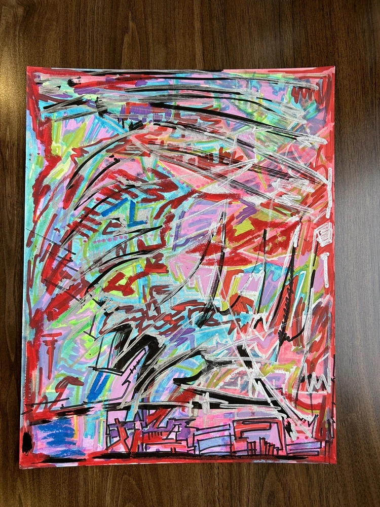Original mixed media abstract art using Acrylic markers, oil pastel, markers and pen on Acid Free, Heavy Weight BRISTOL paper. Dimensions: 11 in. x 14 in. (27.9 x 35.6 cm) Paper weight: 100 lb. (270 g/m2) Unframed. One of a kind no duplicates. Shipping free for US buyers. International buyers will pay shipping and tax based on their location.