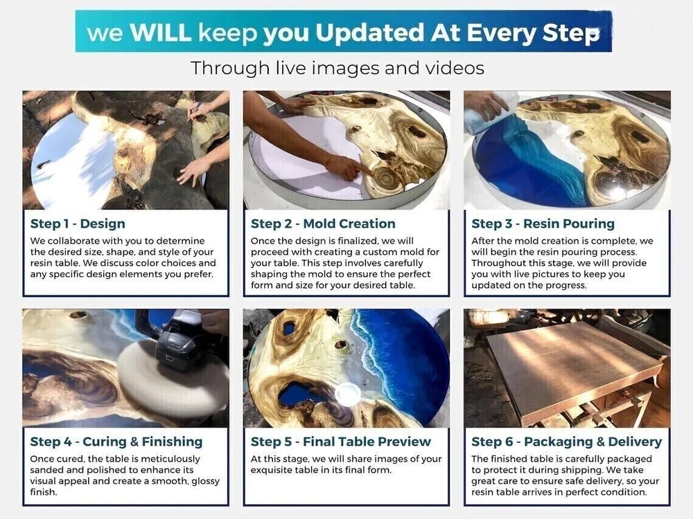 Welcome To Our Shop Unique-Handicrafts Description Used Material: Epoxy Wooden And Resin Handmade Arts Size: According To Size Variations Color: Blue Shape: Rectangle Pattern: Handmade Room: Bedroom, Dining Room, Hallway, Home Office/Study, Kid’s Bedroom, Kitchen, Laundry/Utility Room, Living Room, Patio, Playroom Packaging: Wood & Foam Export Packing Shipping: Air Process of Making Epoxy Table This is a Epoxy Resin Gaming or Trading Desk made with Walnut which is beautified with colored pigment . The resin river table is brand new and the contemporary design would be a unique addition to your home. With its perfect combination of style and function this piece of furniture is sure to be the star of any room. This modern table will also make for an awesome gift for your friends or relatives. Each one is created with high quality resin and individually handcrafted. Resin is a highly reflective medium which will catch anyone’s eye walking into the room. All tables are finished to the highest standard. The epoxy resin is very strong & durable with specialised UV resistance. The tables are delivered flat packed. Simply bolt the legs. This listing is for a custom Live edge Wooden Table. We have access to thousands of live edge slabs of domestic and exotic species that are imported from around the globe. We use only the highest quality of hardwoods and materials in our work, and believe only in perfection. Kindly Note: As raw wood is used in its natural form and shape to make the table, the table shown in the photos has already been purchased so actual product may vary from the picture shown.Can be Customize, Please message your desired shape and size . We welcome your personalization request (custom request) as per your size, shape and design but you have to pay spare money. This is only table top which does not include any wooden, marble legs/base/stand if you like to buy marble or wooden legs/base/stand you need to spend spare money for it. We are unable to ship to a PO Box address & for Russia, Brazil country we need firm entity name or business name parcel will not go to individuals name. If you have any query please feel free to contact us. NOTE : Only table top leg is not included. Kindly Note: Please contact me if you have any kind of query.Buyers are liable for any customs and import taxes that may apply. I'm not liable for delays due to customs. Buyers are liable for any customs and import taxes that may apply. I'm not liable for delays due to customs. Please contact me if you have any kind of query.