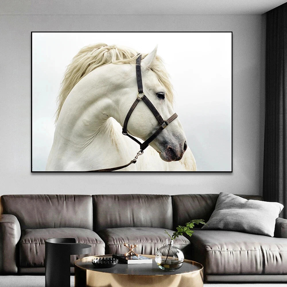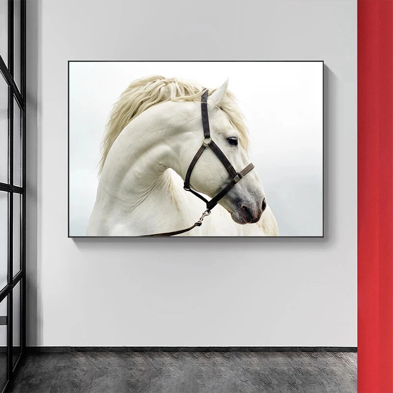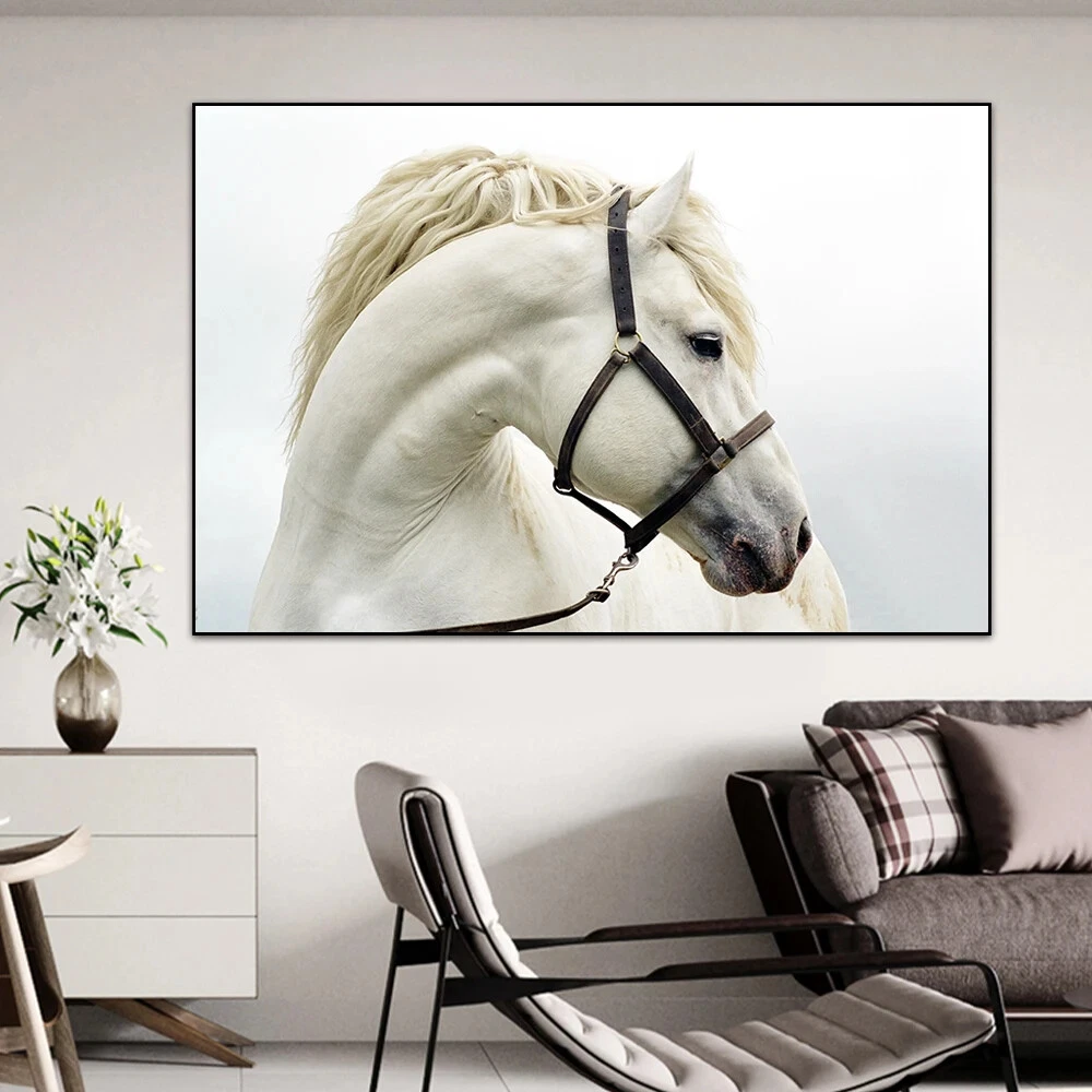 Modern Animal Canvas Wall Art Poster White Horse Canvas Painting Prints Pictures