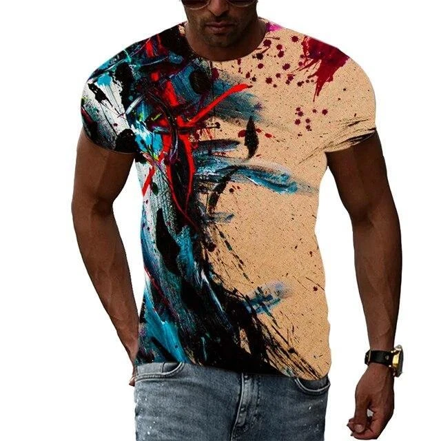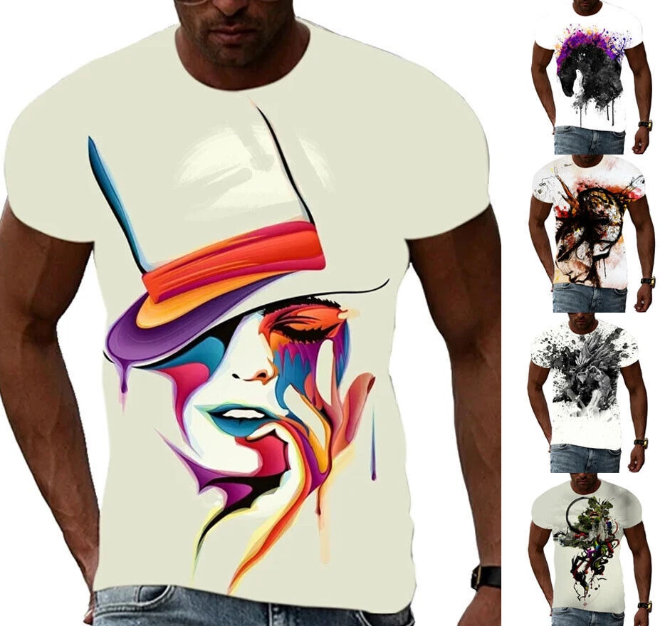 Wear Your Art: Unisex Modern Art Graphic Print T-Shirt This stylish and expressive unisex t-shirt is a canvas for your love of art. Featuring a bold graphic print of a captivating modern art painting, this tee is perfect for anyone who wants to showcase their appreciation for artistic expression. Crafted from comfortable polyester, this short-sleeve shirt is perfect for everyday wear. Whether you're exploring an art gallery, hanging out with friends, or simply adding a touch of creativity to your look, this unique and comfortable tee will keep you looking and feeling great. Key Features: Captivating Modern Art Graphic Print: A bold and visually striking design that celebrates the beauty of modern art. Short Sleeves: Ideal for warm weather and everyday wear. Round Neckline: Classic and stylish for any occasion. Regular Fit: Ensures a comfortable and flattering look. Machine Washable: Easy care for hassle-free maintenance. More than just a t-shirt, it's a statement of style. Make a bold fashion statement with this unique and eye-catching tee. Available in a variety of sizes to ensure the perfect fit. Don't miss out on this opportunity to add some personality and color to your wardrobe! Additional Details: Theme: Art Character: Art Character Family: Art Material: Polyester Pattern: Graphic Print Size Type: Regular Vintage: No Country/Region of Manufacture: China Accents: Print Fabric Type: Broadcloth Product Line: Men's Graphic Print T-Shirt Top Modern Art Painting Design Sizes Handmade: No Garment Care: Machine Washable Style: Casual Sleeve Length(cm): Short Item Type: Tops T-shirt Style: Tees Collar: O-neck Pattern Type: Print Sleeve Style: Regular Sleeve Get yours today and let your artistic side shine! Please kindly note that, sizes are Asian sizes, Usually 1-2 sizes smaller than EU, UK, US, & AU sizes depending on the fit you are after.