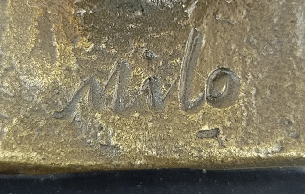 Condition: This sculpture is in perfect condition. Bronze Dimensions with Marble Base: Height 22"" X Width 14"" Marble Dimensions:4"" X 4"" Height without base:17"" Weight:13 LBS Inventory:17Y9815771 Crafted by the skilled hands of the artist Milo, this original bronze statue stands as a testament to his craftsmanship and artistic prowess. The sculpture beautifully captures the essence of a Female Fertility Goddess, showcasing Milo's distinctive style and attention to detail. The piece bears the artist's signature, adding an authentic touch that signifies its uniqueness and origin.Real bronze, shaped and molded using the intricate lost wax method, brings this goddess to life with a remarkable level of detail and precision. The abstract design enhances the allure of the sculpture, allowing viewers to appreciate the form and symbolism from various perspectives. The use of the lost wax method, an ancient and meticulous casting technique, ensures that every nuance is preserved, resulting in a truly one-of-a-kind piece.The sculpture is mounted on a black marble base, providing a stable foundation that complements the bronze work of art. The brown patina finish adds a timeless elegance, enriching the overall aesthetic appeal and serving as a protective layer for long-lasting preservation. This unique piece invites admirers to appreciate the fusion of artistry and technique, making it a striking addition to any art collection or display.