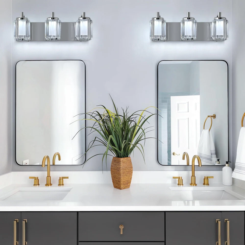 Three Color Changeable: Our bathroom light fixtures is with three colors temperature according to your need, there is a shift key on the top of the vanity lights, and freely choose warm white/cool white/day light temperature to meet your mood Unique Dimmable Design: Our this vanity light has a unique design that you can directly adjustable brightness through the button on the light fixture, long press the button to dimmable, don't need to use a dimmer or a dimmable switch, which is more convenient Energy Saving & Durable: Bathroom light over mirror designed with integrated LED light source, no bulb needed, color rendering index 80+, energy saving up to 90%. Reducing the hassle of frequent bulb replacements. Each light head can provides 400 lm brightness High-Quality Materiel: Led bathroom vanity light is made of high quality metal material and acrylic cover, the light is elegant and beautiful, through the shade can make the light is not harsh Up & Down Reversible Mounting: This bathroon light fixture can be installed facing upwards or downwards, perfect for you indoor bathroom fixtures as vanity lights for mirror, dressing table mirror lights for makeup, led lights for bathroom cabinet, restroom lights for vanity mirror, powder room wall light fixture, etc