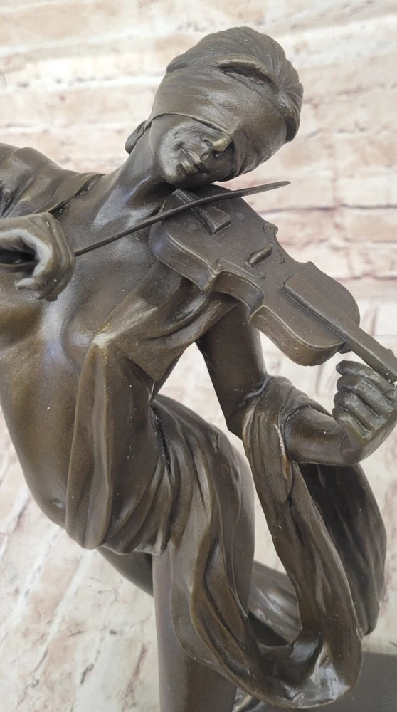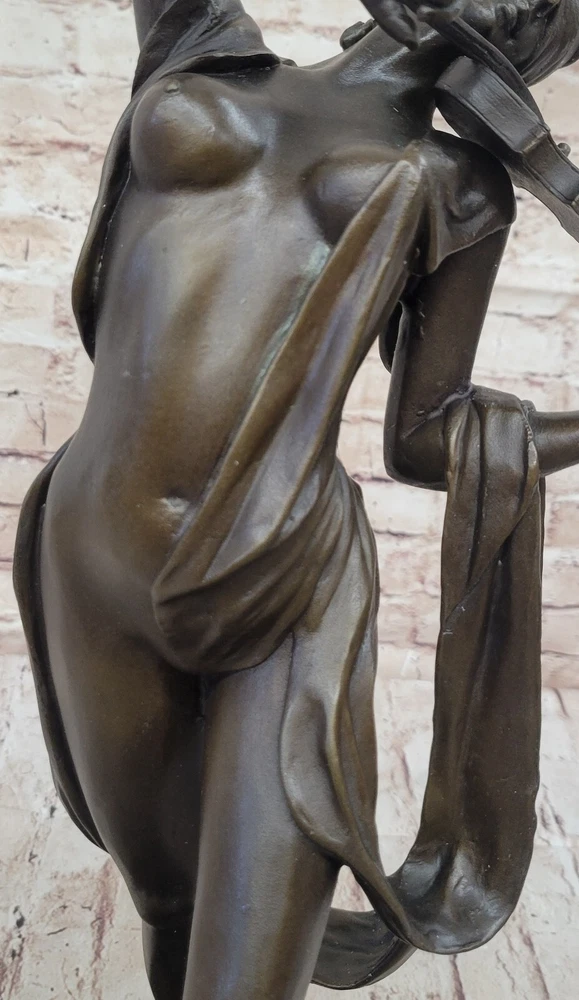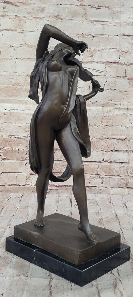Abstract Modern Art Female Violin Fidler Player Bronze Nude Sculpture Statue Art Abstract Modern Art Female Violin Fidler Player Bronze Nude Sculpture Statue Art Condition : This sculpture is in a perfect condition. Bronze Dimensions with Marble Base: Height 17" X Width 9" Marble Dimensions:9" X 7" Height without base:16" Weight:20 LBS Inventory:49DS5567894 Musical Serenity in Bronze This exquisite bronze sculpture captures the serene moment of a blindfolded nude woman entranced by her musical gift, as she gracefully plays her violin. Her eyes are covered, allowing her to connect deeply with the music she creates, moving the bow back and forth to produce beautiful, delicate melodies. Her long hair cascades down her back, adorned with a studded headpiece that complements her flowing dress. Elegance and Detail The artist has meticulously sculpted her thin frame, draped in a wavy dress that appears to sway in an unseen wind, adding a sense of movement and ethereal beauty to the piece. The delicate details, from the texture of her hair to the folds of her dress, showcase the artist's skill and attention to detail. This sculpture is a stunning representation of grace and tranquility, capturing a moment of pure musical expression. Exemplary Craftsmanship Crafted using the lost wax method, this sculpture is a testament to the traditional artistry and precision involved in bronze casting. It rests on a black marble base, adding a touch of sophistication and stability to the piece. Bearing the signature of the renowned artist Aldo Vitaleh, this sculpture not only guarantees authenticity but also enhances its value as a collectible work of art. Whether displayed in a home, office, or gallery, this piece is sure to captivate viewers with its timeless beauty and artistic expression. Watch Video Video will open in a new window Using the eBay App? Paste link into a browser window: [isdntekvideo] Shipping Terms : Most of our items are shipped via USPS (United States Postal Service) mail or UPS. Most orders are shipped within 24-48 hours of purchase. Please be aware that not all items are available for USPS shipping due to size and weight. We do ship to Hawaii, Alaska, Canada, Puerto Rico, APO/AE, and U.S. Virgin Islands, however, an additional charge may be required. Please contact us before making any purchases in these areas. For Non-USA customers, you may be responsible for all duty, tax, brokerage fees that may be due upon delivery (shipping costs cover freight charges only). We also ship internationally. Please refer to the "Shipping and Handling" chart for the rates for each area. Payment : We accept just about any form of payment. PayPal, Master Card, Visa or American Express credit cards. Money orders, cashiers checks, and even personal or business checks. For governmental institutions, we will also accept a purchase order. Please understand that for personal or business checks we have to wait for the check to clear (usually 7 days) before shipping. Condition : New Detailed Hand Crafted Hot Cast Bronze ~Not Resin~ Satisfaction Guaranteed. This is Stock Photo, Slight Color Variation!! Listing and template services provided by inkFrog