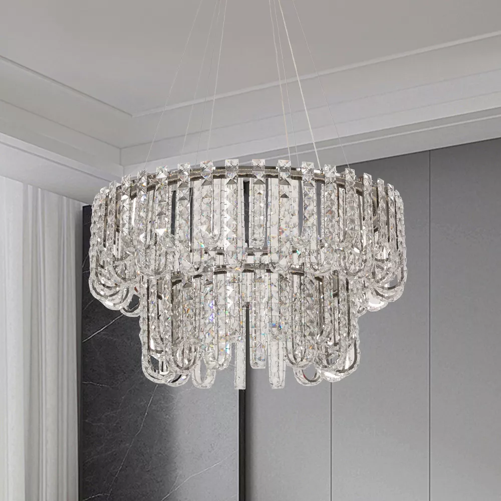 Welcome to hopefuther!!! Description Brighten up the night with a crystal chandelier. The delicate silver frame, intertwined with the bright light of the crystals, is like a beautiful painting that is mesmerizing. Its use of high-quality crystals can reflect light to almost every corner, brightening the whole room. Even in a dark environment, it can bring you endless warmth and romance. Whether at home or in public, it can bring you a wonderful visual and lighting experience. Key Features Selected Material: The product is made of high-quality crystal, stainless steel, and steel wire with the cutting process, making it bright, sturdy, anti-rust, and still beautiful and practical after long-term use. Unique Appearance: The unique crystal lampshade, the elegant silver color, and the rich hierarchical structure give the product a unique modern style. Its charming and romantic style can be matched with most of the furniture, which is a great choice for creating a home atmosphere. Excellent Light Source: The environment-friendly and energy-saving LED light with a high color index can effectively avoid glare and stroboscopic, protect your eyes, restore the most authentic color of objects, light up an area of about 107.64-215.28 ft², and save your costs. Different Light Colors: You can adjust the light colors(warm, white, and neutral) through the remote control(within 9.84-16.4ft) or wall switch(not included) to create different indoor atmospheres and meet the lighting needs for different activities. Adjustable Height: You can adjust the height of the chandelier by adjusting the length of the hanging wire(11.81-59.06 in) for different ceiling heights. Wide Voltage: This product supports a wide voltage range (90-265V) and can adapt to different voltage environments. Simple Installation: The simple structure, complete accessories, and clear installation diagram can help you complete the installation quickly and accurately. Exquisite Gift: With a beautiful appearance and practical function, it is an ideal gift for your friends and relatives on birthdays, anniversaries, festivals, housewarming, and other days. Good Customer Service: We stand behind all our guests and look forward to assisting you with your purchase. It is our pleasure to answer your confusion and questions. The end of the story between us is not "we sell and you buy". Details Solid Base: The 7.87-inch round base increases stress area, and can make the item fixed firm without falling easily. Practical Gloves: They protect your hands and the surface of the fixture during installation. Smooth Edge: The rounded and smooth edges not only add to the aesthetics of the product but also improve the safety of use. Application With a lighting area of 107.64-215.28 ft², it is ideal for kitchens, hallways, living rooms, bedrooms, balconies, bars, aisles, foyers, hotels, restaurants, corridors, cafes, dining rooms, children's rooms, libraries, billiard parlors, and other indoors. Specification Color: Silver Style: Modern Shape: Round Material: Crystal, Stainless Steel, Steel Process: Cutting Assembly Required: Yes Mounting Type: Ceiling Mount Indoor/Outdoor Usage: Indoor Efficiency: E Control Method: Remote Control, Wall Switch(Not Included) Light Color: White, Warm, Neutral Color Temperature: 3000-6500K Light Source: LED Voltage: 90-265V Power: 60W Battery Type: 2*AAA Batteries(Not Included) Remote Control Distance: 3-5m/ 9.84-16.4ft Illuminated Area: 10-20 m²/ 107.64-215.28 ft² Adjustable Height Range: 30-150cm/ 11.81-59.06 in Base Diameter: 20 cm/ 7.87 in Lampshade Diameter: 60 cm/ 23.62 in, 40 cm/ 15.74 in Lampshade Height: 40 cm/ 15.74 in Hanging Wire Length: 1.5m/ 4.92 ft Package Included 1* Crystal Chandelier 1* Remote Control 1* English Installation Diagram 2 Pairs* Gloves All Accessories for Installation Notes 1. The wall switch and remote control batteries are not included in this package. You need to prepare 2 AAA batteries yourself. 2. Please read the installation instructions completely before use. And pay particular attention to the safety instructions included. 3. Please use the lamp within the applicable voltage range and clean it regularly. Please cut off the power supply when you clean the light. Please wipe with a soft cotton cloth and do not use household cleaning agents. 4. Please check the dimensions of the product before ordering to ensure it fits your home. 5. Please make sure the power is cut off before installation. To ensure your safety, we recommend that two people install this lamp together. Please install it by someone with an electrical license if necessary. 6. Please use it in a dry environment. It is not suitable for outdoors and bathrooms. 7. Please allow the slight color difference caused by the shooting light and the 1-3 cm error due to manual measurement, and make sure you do not mind before ordering. Payment Delivery details Terms of sales About us Contact us Payment We accept ebay payment 。 Fees such as import duties, taxes are not included in the item price or shipping costs. These charges are the buyer's responsibility. Delivery details Shipping: 2-9 working days to: USA Terms of sales We maintain high standards of excellence and strive for hundred percent customer satisfaction. Feedback is very important to us. We hope that you contact us immediately before you give neutral or negative feedback, so that we can address your concerns. It is impossible to address issues if we do not know about them! About us Your satis faction is our ultimate goal. We work hard to earn your trust and future business. Our certified technicians have tested each item before shipping. The unit comes with 1 year limited warranty on all manufacturing defects. a) If you receive a defective item, you may return it or ask for a discount. Please contact us within 14 days after you receive the package. b) What you returned must be intact and in its original packaging as re? u. Customer is responsible for shipping costs of the ret