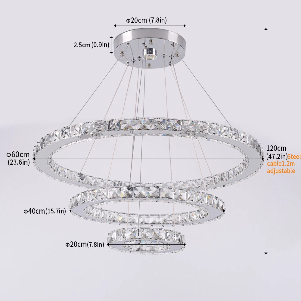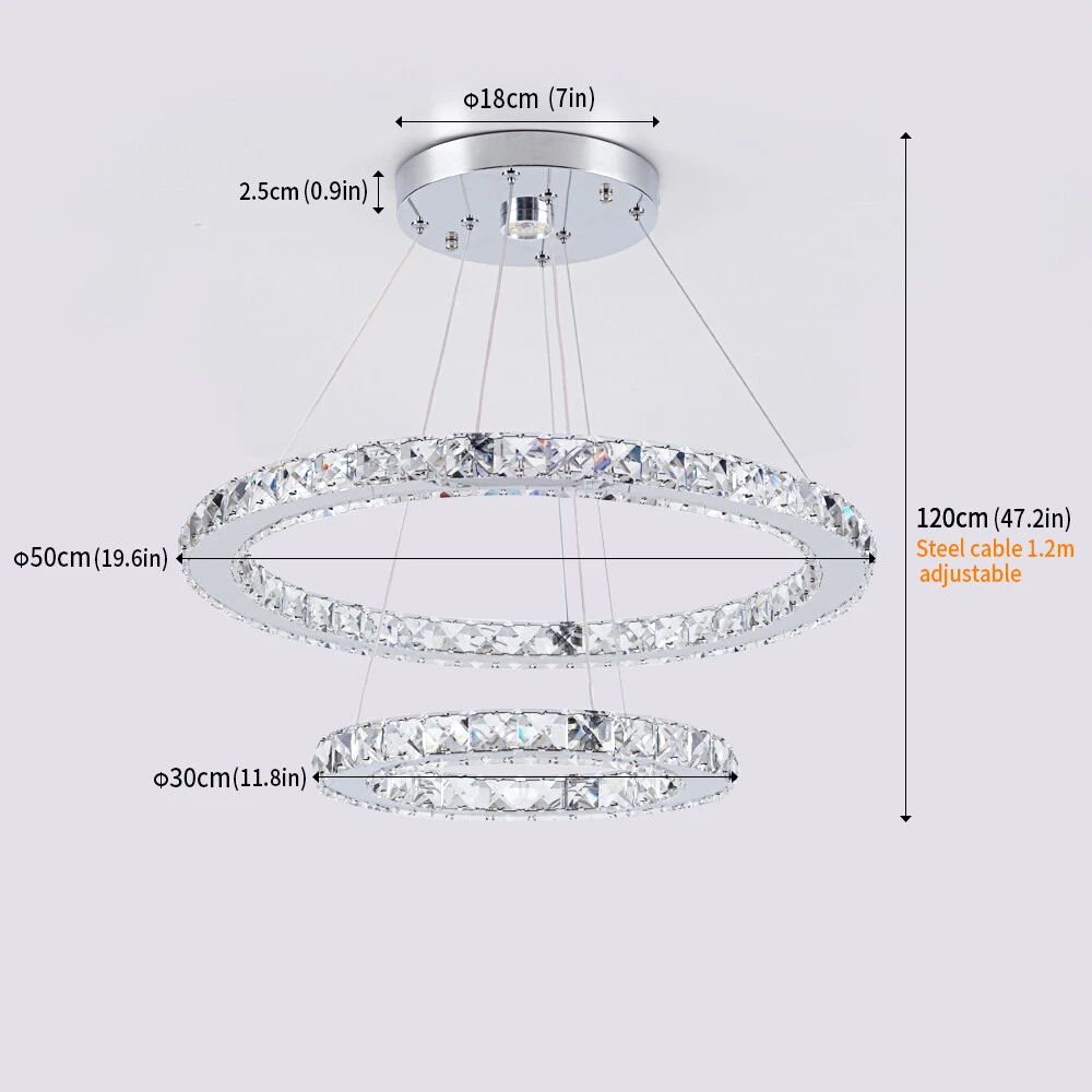 Store Categories Store Categories Crystal Chandelier Acrylic Chandelier Crystal Ceiling Light Acrylic Ceiling Light New Arrivals Other Modern Crystal LED Chandelier Ceiling Lights Hanging Pendant Lamp Adjustable DIY Product Description Features: 【K9 crystal chandelier】: Laser cutting, sharp edges and corners, stylish and beautiful under light refraction.Amazing in modern home interiors. 【DIY Unique Shape】 DIY your own shape you like at any time, irregular mix shape etc,enjoy your own the best unusual elegant sparkly chic art-deco chandelier. 【Suggested Space Fit】g reat for dinning room, girls room, Living Room,Hotel, Staircase,Island, Foyer,Bedroom, Office,etc.large bath-room, formal dining room, stair-way, entry-way, hall-way, staircase, funky apartment, entrance, salon, semi, closet, hotel, office, laundry room . 【100% Assured After Sales】Excellent Quality Make us Special, If you have any questions, please contact us first, we will give you a satisfying answer. Specification: Voltage: AC90-260V Materail : stainless steel + crystal Light color : warm white( no remote ) / cool white( no remote ) / Changeable(no remote ) :3 colors changeable ,it can switch the light color from cold white ,neutral light ,to warm light by turn on/off wall switch . / dimmable(with remote ) Size :2rings D50cm+D30cm (19.6inch +11.8inch) 38W 3 rings D40cm+D30cm+D20cm (15.7inch+11.8inch+7.8inch) 47W 3rings D60cm+D40cm+D20cm (23.6inch+15.7inch+7.7inch) 52W Light source : Led SMD bulbs Light source Included or Not: Yes Suggested Room Fit: Living Room,Study Room,Office,Bedroom,Dining Room,etc Easy To Install ● Flexible: Canopy ceiling plate compatible junction boxes, can work on vaulted or sloped ceilings ● Adjustable: You can adjust the hanging height and ring angle as per your request so it can be showed multi displays according to your desired lighting view ● Save time: When compare to traditional crystal chandelier, all the crystals of the model are pre-attached for easy installation Strict Manufacturing Process ● We use high quality component, that is, wires, drives, and crystals, All components meet standards. ● All chandeliers all used real crystals instead of acrylics. ● QA Check is carried out prior to leaving the factory , with 6-year manufacture experience team support Package Included: 1 x Ceiling Light 1x Manual Notes: The Chandelier would be better to be installed by Professional Electrician. Please cut off power supply when you clean the light The surface of the lamp plate and the electric Wire should avoid scratching when mounting, also the electric insulation gloves must be worn when installing. Payment Policy Shipping Policy Returns Policy Payment Policy 1.We accept payment through Paypal (prefered). 2. lf you do not have a Paypal account, you can also pay via Paypal with you credt card or bank debit card.Payment can be submited inany currency. 3.PayPal payment system supports Mastercard, Visa, American Express, Discover and eCheck PS: It will take up to 5-7 days to clear theecheck payment. 4.Please pay soon after you have made the order or received our notice that you've won your bid so that we could arrange the shipment for you asap. 5.Before you pay,please make sure that your address in Paypal is a valid one. Shipping Policy 1.ltems will be shipped out in the following business days after you have checked out and pay for it . In general, it may take about 2-3 business days for delivery. But it depends on the actual address or area, holidays and different customs checking would affect Postal Service's schedule. 2.Please note that some orders go through our fraud prevention department. If your order is selecled, you will be notified and your order maybe delayed by an additional 3 business days.Paypal eCheck must be cleared before shipping. It takes around 5-7 business days to clear the eCheck. 3.It's the buyers responsibility to pay addtional shipping and handling fee if the ordered item is returned because the wrong shipping address provided by buyer. 4.lt's the buyers responsibility to pay the same amount shipping and handling fee if the buyer wants to exchange any their received order items with any new item. Returns Policy 1.Please feel free to contact us if you have any question.Mails will be replied in 24 hours during business days and sometimes there maybe delay during holidays and weekends.But we'll do reply you asap and try our best to solve your problems out. Believe us,every customer is taken as our important treasure. 2.Please check your mailbox or the messages in your ebay account if you've sent us emails or if there seems to be any problem.We'll keep all of you updated if there's any problems concerning logistics and so on. Our mails are sent on Ebay Message,sometimes they may be blocked or could not be sent into a certain maibox. Please change your settings or use another mailbox if you usually meet similar problems dealing on eBay. 3.Please sign up for my email newsletters by adding my eBay shop to your "My Favorites" list. Copyright © 2021 Dianxiaomi