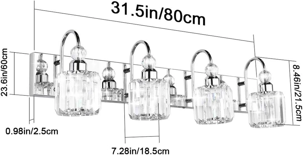 Store New Arrivals Add to Favorite View Feedback Contact Modern Crystal Vanity Light for Bathroom Crystal Chrome Bathroom Wall Light Fixtures over Mirror Crystal Bathroom Vanity Lights Description Light Source Type Halogen, LED, Incandescent Style Modern Power Source Corded Electric Number of Light Sources 1 Control Method Remote Embellishment Crystal Theme Modern Controller Type Push Button Unit Count 1.0 Count Room Type Bathroom Finish stainless steel Material Stainless Steel Finish Type stainless steel Fixture Type Non Removable Light fixture form Vanity Bulb Base E26 Shade Color Transparent Mounting Type Wall Mount Color Chrome Plug Format A- US style Shade Material Stainless Steel 1:LIGHT SOURCE: E26 US Standard Socket. Max 60W, Compatible with any E26 base LED bulb, Halogen, Incandescent, Energy Saving Bulb. (Note: Bulbs are not included.) 2:HIGH QUALITY: High-quality stainless steel lamp body, smooth as a mirror, not easy to rust and fade, strong corrosion resistance. Premium Transparent Crystal Lampshades. It is bright and romantic. 3: DESIGN: Simple and luxurious design, highlights your taste. create a warm bright and comfortable living environment. It can be widely used in your bathroom mirror, over the painting, over the vanity table, and so on. 4:EASY TO INSTALL: Hardwired, no switch or plug on the fixture itself. With USA standard Installation back plate. Easy to mounted it on the electric box. Just connect to the reserved wire directly. UL listed for safety. 5:AFTER-SALE SERVICE: Ralbay team guarantees to always provide the best quality product. Please rest assured to buy. If you have any questions about our products, please log in to your account, check the order ID and click "Contact Seller" to . our customer service will solve your problem within 24 hours, We will try our best to improve your shopping experience. ABOUT US We offer the best prices around on high quality products. Our E-store includes media such as books, movies, music and games while offering electronics, toys, sporting apparel, clothing, tools, general home, garden items and more. SHIPPING We are always working hard to ensure your package arrives as soon as possible. Please understand that some factors like weather, high postal traffic, and the performance of shipping companies are outside of our control. We offer free shipping to the lower 48 states and ship within 2 business days of payment, usually sooner. We do not accept P.O. Boxes. Please provide a physical address. For shipping outside of the continental USA, we only use eBay's Global Shipping Program.The item is shipped to KY and then sent to the rest of the world. International customers are responsible for all duties and taxes. Continue to check out in order to calculate costs for shipping the item to your country. Messages regarding eBay's Global Shipping Program MUST be directed at eBay EXCLUSIVELY. RETURNS We offer a 30-Day Return Policy on items which you are not completely satisfied with. You have the option for a full-refund or an exchange of the item. No returns are available on items shipped outside of the USA. PAYMENT We accept PayPal. CONTACT US This page content is yet to come Please ad us to your favorite seller and visit again later Thank You CUSTOMER SATISFACTION We try our very best to make sure every customer is completely satisfied. If there's a problem, message us! We're happy to help. WE ACCEPT Copyright © 2021 AutoDS. | All Rights Reserved