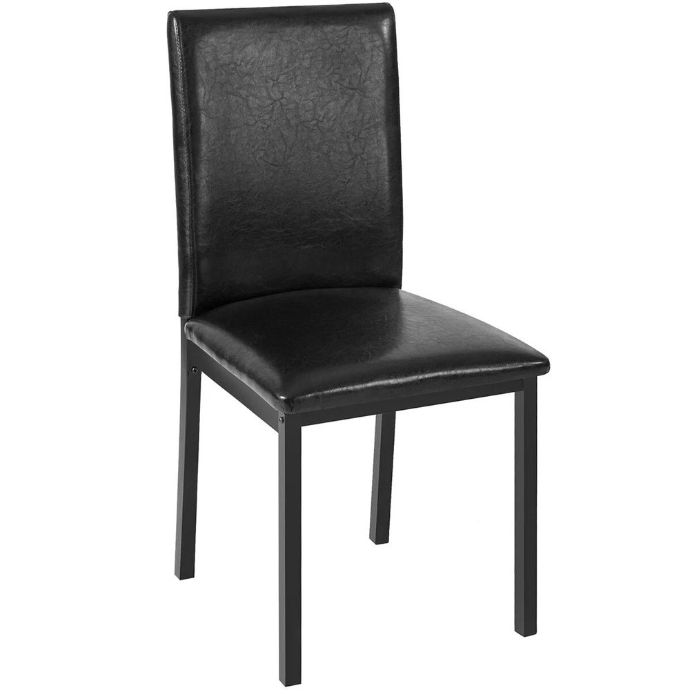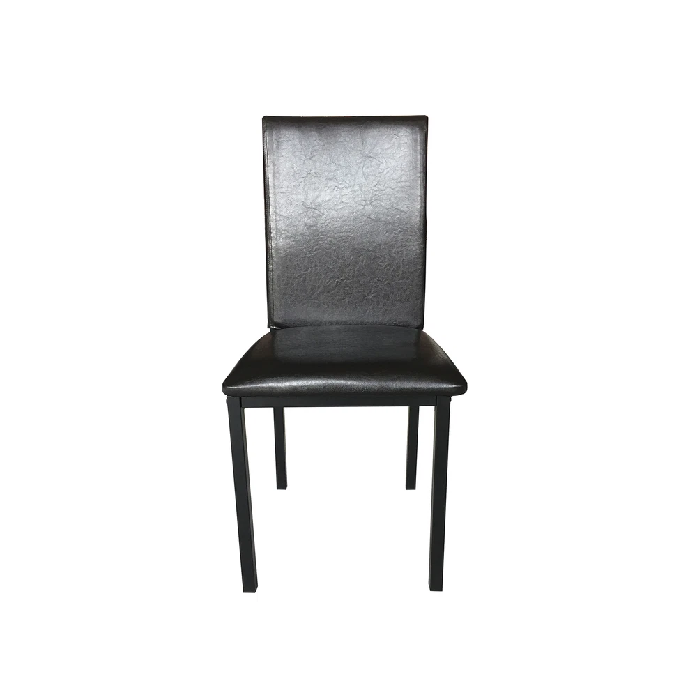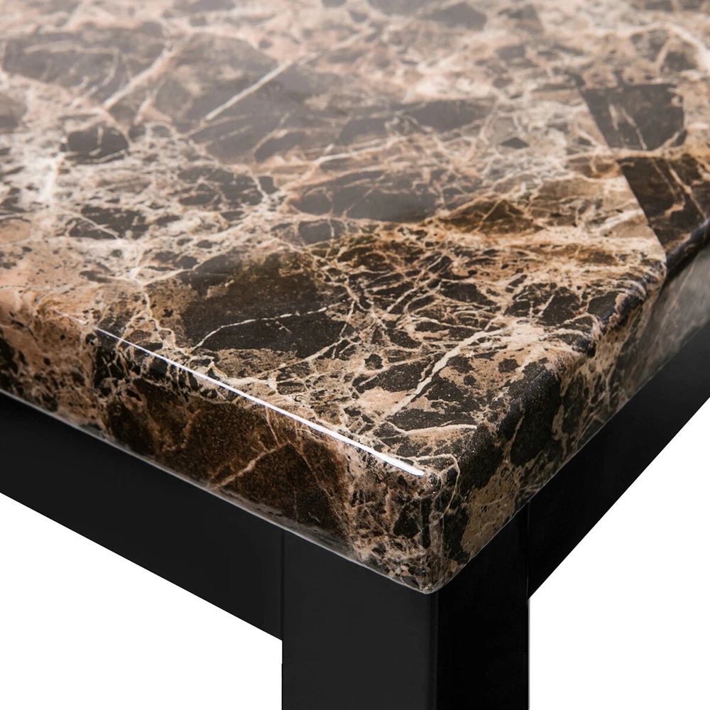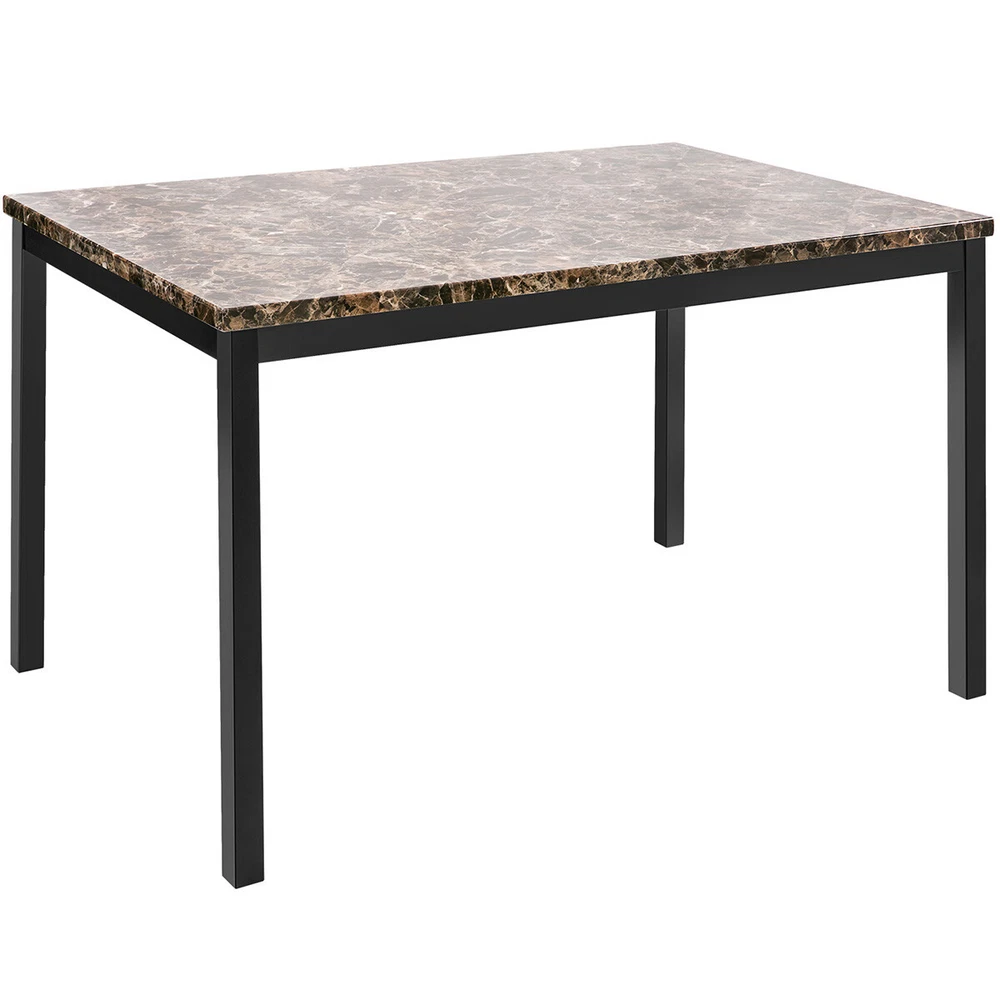 Modern Dining Set Kitchen Room Table Set, Dining Table , 4 Faux Leather Chairs Features: - Sturdy And Durable - Modern And Upscale Furniture - Great Decoration Furniture - Paper Faux Marble Table Top, Smooth And Beautiful with metal legs and apron -4-piece metal frame dining seats: Chairs are upholstered in dark brown bi-cast vinyl (faux leather) - Easy to Assemble, and Assembled in some Minutes. Specifications: TABLE Weight Limit: 100LBS CHAIRS Weight Limit:250LBS Package Includes: 1 x Modern paper Faux Marble End Table 4 x Metal frame dining seats 1 x Manual