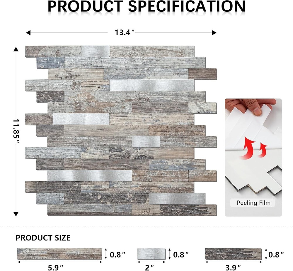 Modern Peel and Stick Tiles in Distressed Silvery Moon for Kitchens & Bathrooms ‹ › ‹ › ‹ › ‹ › ‹ › ‹ › ‹ › ‹ › ‹ › Modern Peel and Stick Tiles in Distressed Silvery Moon Transform your kitchens and bathrooms with elegance and ease using our stunning peel and stick tiles. Product Features: DIY Real Tile Decorations: No grout, no contractors. Just peel and stick to create a modern look effortlessly. Natural Stone & Metal Design: Our tiles feature an exquisite distressed silvery moon finish that elevates any space. Lightweight Yet Durable: At 4.2mm thick, these tiles provide a solid backing perfect for kitchen and bathroom backsplashes. Ultimate Protection: Water, heat, stain, scratch-resistant and high-impact PVC composite laminates ensure longevity and durability. Colorful and Easy to Clean: Our tiles outperform traditional self-adhesive materials in durability and aesthetic appeal. Benefits: Fast and hassle-free installation saves you time and energy. Modernize your home with minimal mess and maximum impact. Versatile style suitable for kitchens, bathrooms, and beyond. A perfect solution for renters or homeowners looking for budget-friendly renovations. Important Note: To ensure a seamless design, we recommend purchasing at least 10% more tiles for cuts and patterns. Please order all tiles for your project at once, as orders placed at different times may yield variations. Why Choose Our Peel and Stick Tiles? Say goodbye to messy renovations and hello to an elegant, modern look that transforms your space in no time. Unlike 3D wallpaper or vinyl, our real stone tiles add a refined touch and unmatched durability to your home. Ready to elevate your home decor? Order your Modern Peel and Stick Tiles in Distressed Silvery Moon today and experience effortless transformation! Shipping Free & Fast Shipping - We offer free shipping to most of the USA with a normal delivery time of 3-7 days. However, due to the current situation, additional delivery time (up to 3 weeks) may be required for some items. Alternative Carriers - We may use alternative carriers (e.g. USPS, FedEx, UPS, etc.) to ensure your package arrives safely and on time. Due to the use of multiple carriers, we are unable to provide a tracking number automatically. Handling Time - Orders are processed and shipped within 1-2 business days of receiving cleared payment. Shipping Restrictions - Shipping to Alaska, Hawaii, Puerto Rico, Guam, and other US territories may incur shipping charges or delivery restrictions. Please contact us before ordering, or your order can be refunded/cancelled. State Restrictions - There may be restrictions based on your state of purchase. For example, certain items may not be shipped to California due to state regulations. Contact for Tracking Updates - If you require tracking updates or have any concerns about the delivery of your order, please feel free to contact us, and we will be happy to assist you. Return 30-Day Hassle-Free Returns - We want you to be completely satisfied with your purchase. If you are not, you can return the item within 30 days of receiving it for a full refund or exchange. Easy Return Process - To start a return, simply contact us and we will provide you with a prepaid return shipping label and detailed instructions. Restocking Fee - There are no restocking fees for returns. However, the buyer is responsible for return shipping costs if the return is not due to a seller's error. Refund Processing Time - Refunds will be processed within 5 business days of receiving the returned item in its condition. Payment We accept all major credit cards, PayPal, and Apple Pay for your convenience. Your payment information is secure and encrypted to ensure a safe and seamless transaction. Please complete your payment within 3 days of purchase to avoid any delays in shipping. Feedback Your feedback is extremely important to us. We strive to provide the best products and customer service possible. If you are satisfied with your purchase, please take a moment to leave us a positive review. If you have any concerns or issues with your order, please contact us before leaving negative feedback. We are committed to resolving any problems and ensuring your satisfaction. Contact Us If you have any questions or concerns, please feel free to out to our customer support team. You can contact us through the eBay messaging system. We are available Monday to Friday, 9:00 am to 5:00 pm EST, and we will do our best to respond to your inquiry within 24 hours. Buy it now and enjoy a pleasant shopping experience! Series: 10 Sheet Peel and Stick Backsplash Tile Unit Quantity: 10 Material: Metal,Natural Stone,PVC,Polyvinyl Chloride (PVC),PVC Composite Room: Bathroom,Kitchen,Laundry Room,Camper,Fireplace Features: Water Resistant,Scratch Resistant,Stain Resistant,High Impact,Easy to Clean Installation: Peel-and-Stick Suitable For: Bathroom Backsplash,Commercial,Fireplace Exterior,Indoor,Kitchen Backsplash,Residential Type: Backsplash Tile Style: Modern Finish: Brushed or Unpolished Tile Size: 11.5 x 11.8 inches Item Thickness: 4.2 mm Item Weight: 7.98 lb Number in Pack: 10 Pattern: Geometric Tile Shape: Rectangular Tile Look: Geometric Coverage per Case: 9.8 sq ft Tile Surface Texture: Smooth Edge Design: Square Edge PEI Rating: 0 - No Foot Traffic Break Strength: 103 kg Grade: Grade 1 Unit Type: Unit