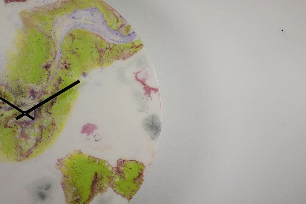 --- Extra Large Wall Clock Glass Art Resin Wall Clock with Lighting on Etsy ---- Reduced from £800 to £249 We all deserve a piece of art that is truly as unique as we are. With its own unique personality and individual character, this extra-large glass clock is the perfect way to make that statement. Bustling with energy and bursting with originality, it embraces a sense of natural chaos. Whether it's in your home or in at your workplace, You can guarantee your clock will be the starting point of many conversations to come. Not only is it a great way to brighten your walls and your days, but it will also bring light to your nights - In darkness, the ambient backlighting can be switched on for a striking and dramatic display of colours and movement. Additionally, you can easily set the mood of your room, whatever your style, by selecting from the many colours and transitions available via the remote control. As these clocks are created by using specialized paints on specially prepared glass, the varied depth and consistency of the paints gives the glass a unique opacity. Simply switch on the lighting and then embers of light, swell into existence and slowly vanish, only to be replaced by another hue in another place; the effect is hypnotic. Additionally, this clock has been finished with a high-quality coat of resin which ensures the longevity of each piece. Whether your home is styled as shabby chic, post-modern or contemporary you can be sure that this clock will be the perfect addition to any wall in any room. Time waits for no one and the piece you see today, might be gone tomorrow. Embrace your sense of unconventionality, make that statement and get it today. MEASUREMENTS - ------------------------- 32 inches in diameter. 5 inches deep FEATURES - --------------- An Original Signed Art Work High-Quality Glass Battery-powered High Torque Clock Mechanism (AA Battery) Mains powered LED lighting Individually Handmade with Care Eco Packaging SHIPPING - ------------- The robust eco-friendly packaging ensures the safety of each piece to any part of the world. SHIPPING TIMES - ----------------------- UK = 7 DAYS MAXIMUM / WORLDWIDE = 24 DAYS MAXIMUM FITTING - ----------- This clock is ready to hang. There is a metal bracket behind the centre of the clock and the necessary fittings (wall bolts) are included in your package. VIDEO - --------- To see a video of these gorgeous clocks in action, please copy and paste this link into your browser - https://www.youtube.com/watch?v=6RfVyBJ95fQ&t= ABOUT THE MAKER - --------------------------- Each unique creation is meticulously handcrafted by me in my home studio in Wales. I take my inspiration from the natural world. Living in rural Mid Wales, a landscape that contains open moorland, mountains, woods, lakes and rivers, I am surrounded by the shifting patterns and colours that feed my creativity. Visit my shop here - https://www.ebay.co.uk/usr/reformationsuk