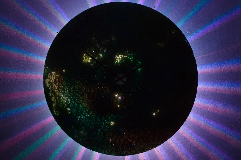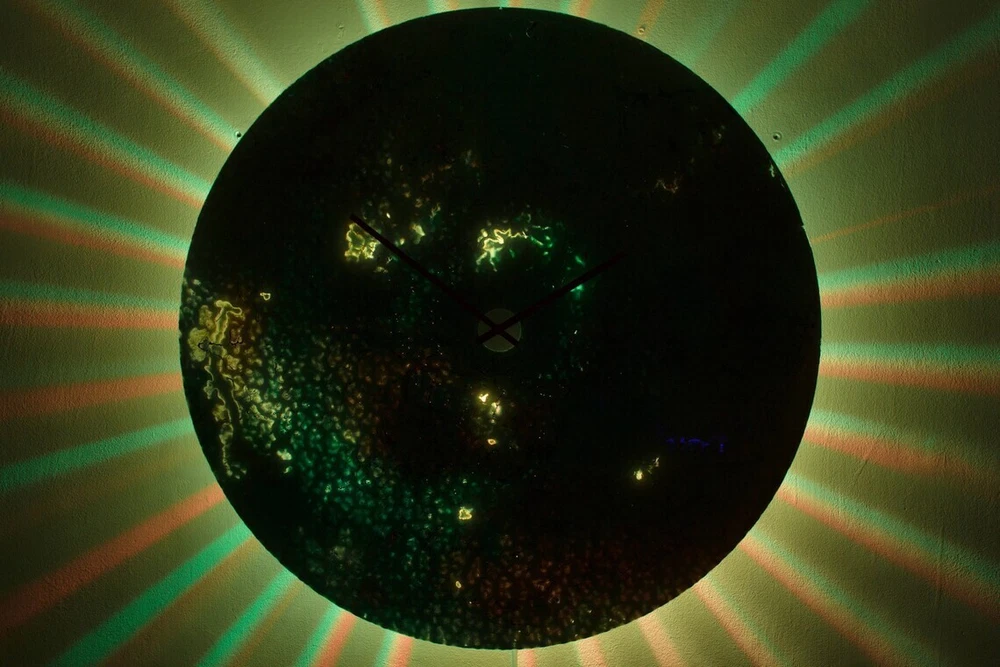 --- Extra Large Wall Clock Glass Art Resin Wall Clock with Lighting on Etsy ---- Reduced from £800 to £249 We all deserve a piece of art that is truly as unique as we are. With its own unique personality and individual character, this extra-large glass clock is the perfect way to make that statement. Bustling with energy and bursting with originality, it embraces a sense of natural chaos. Whether it's in your home or in at your workplace, You can guarantee your clock will be the starting point of many conversations to come. Not only is it a great way to brighten your walls and your days, but it will also bring light to your nights - In darkness, the ambient backlighting can be switched on for a striking and dramatic display of colours and movement. Additionally, you can easily set the mood of your room, whatever your style, by selecting from the many colours and transitions available via the remote control. As these clocks are created by using specialized paints on specially prepared glass, the varied depth and consistency of the paints gives the glass a unique opacity. Simply switch on the lighting and then embers of light, swell into existence and slowly vanish, only to be replaced by another hue in another place; the effect is hypnotic. Additionally, this clock has been finished with a high-quality coat of resin which ensures the longevity of each piece. Whether your home is styled as shabby chic, post-modern or contemporary you can be sure that this clock will be the perfect addition to any wall in any room. Time waits for no one and the piece you see today, might be gone tomorrow. Embrace your sense of unconventionality, make that statement and get it today. MEASUREMENTS - ------------------------- 35 inches in diameter. 5 inches deep FEATURES - --------------- An Original Signed Art Work High-Quality Glass Battery-powered High Torque Clock Mechanism (AA Battery) Mains powered LED lighting Individually Handmade with Care Eco Packaging SHIPPING - ------------- The robust eco-friendly packaging ensures the safety of each piece to any part of the world. SHIPPING TIMES - ----------------------- UK = 7 DAYS MAXIMUM / WORLDWIDE = 24 DAYS MAXIMUM FITTING - ----------- This clock is ready to hang. There is a metal bracket behind the centre of the clock and the necessary fittings (wall bolts) are included in your package. VIDEO - --------- To see a video of these gorgeous clocks in action, please copy and paste this link into your browser - https://www.youtube.com/watch?v=6RfVyBJ95fQ&t= ABOUT THE MAKER - --------------------------- Each unique creation is meticulously handcrafted by me in my home studio in Wales. I take my inspiration from the natural world. Living in rural Mid Wales, a landscape that contains open moorland, mountains, woods, lakes and rivers, I am surrounded by the shifting patterns and colours that feed my creativity. Visit my shop here - https://www.ebay.co.uk/usr/reformationsuk