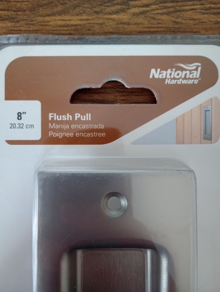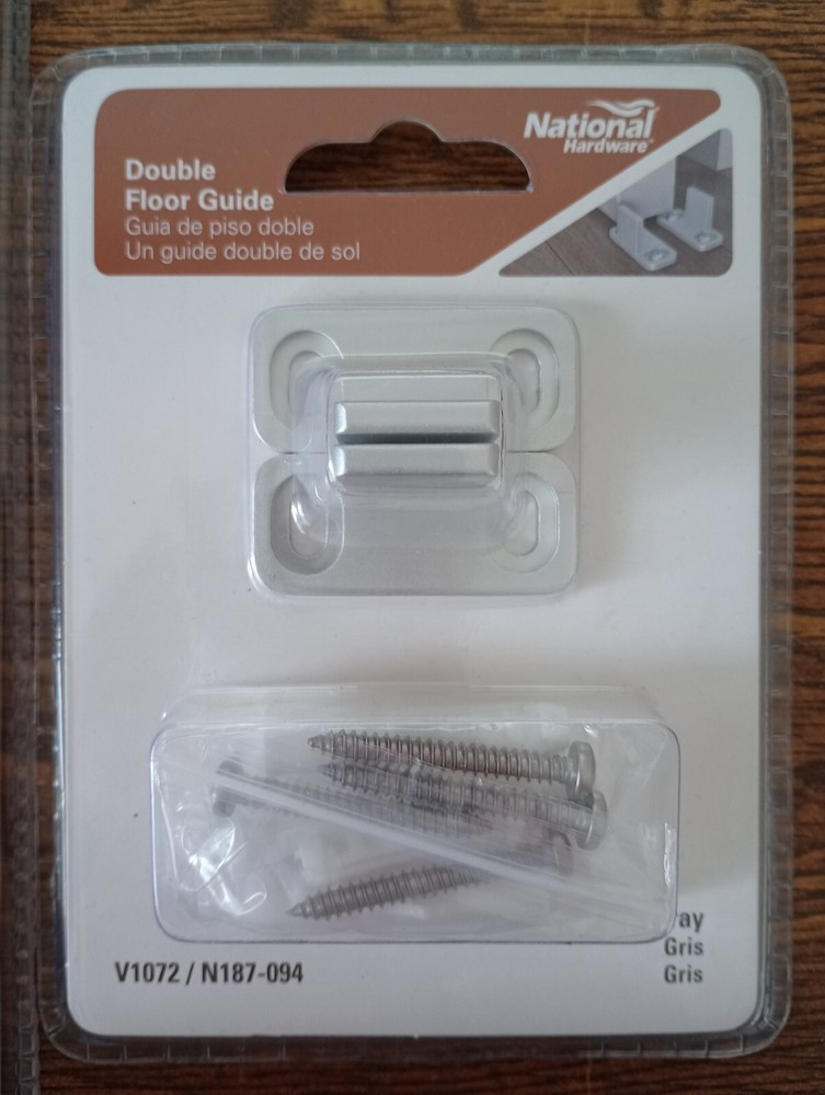 National Hardware Interior Door Pull and Guide pair 8" Flush Pull, Satin Nickel Double Floor Guide, Gray NEW style: Modern, Farmhouse N187-094 Pull N187-024 Guide Pull is made of steel Guide is made of aluminum