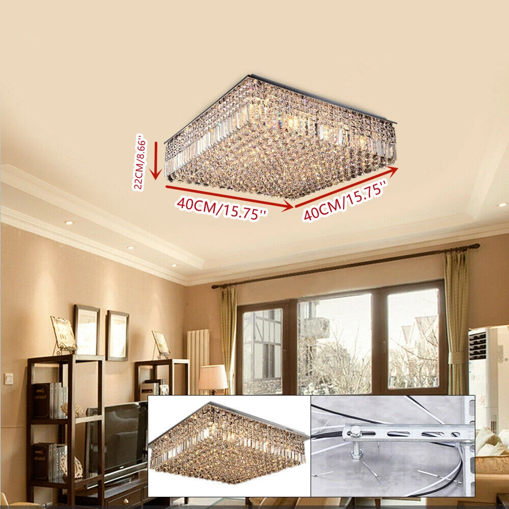 Package: 1*Light Modern Flush Mount Crystal Chandelier Square Ceiling Light Pendant Lamp Fixture Modern K9 Clear Crystal Ceiling Light Pendant Lamp Chandelier Lighting Specification: Product : (15.75*15.75 Inch) 40*40cm Two-color Crystal Lamp (Lamp Head) Chandelier Pendant Shadow Assist Material: Crystal Lamp Body Material: Abs + Metal Chassis Irradiation Area: 30 Square Meters-15 Square Meters Size : 40x40 Cm (15.75x15.75 Inch) Main Body Material: Metal Lampshade Material: Crystal Light Source Type: Incandescent Lamp Led Energy Saving Lamp Cap Type: E14 Craft: Draw Chandelier Is There a Light Source: Including Bulbs Voltage: 110v-260v Application Space: Living Room Dining Room Study Style: Simple Modern Assembly Instructions: This Fixture Does Need to Be Hard Wired. Assembly Is Required. Professional Installation Is Recommended. Apply to: Bedroom, Living Home, Dinning Home,bar,Warehouse,Restaurant,Coffee Shop Package: 1*Light Payment Delivery details Terms of sales About us Contact us Payment We accept ebay payment 。 Fees such as import duties, taxes are not included in the item price or shipping costs. These charges are the buyer's responsibility. Delivery details Shipping: 2-9 working days to: USA Terms of sales We maintain high standards of excellence and strive for hundred percent customer satisfaction. Feedback is very important to us. We hope that you contact us immediately before you give neutral or negative feedback, so that we can address your concerns. It is impossible to address issues if we do not know about them! About us Your satis faction is our ultimate goal. We work hard to earn your trust and future business. Our certified technicians have tested each item before shipping. The unit comes with 1 year limited warranty on all manufacturing defects. a) If you receive a defective item, you may return it or ask for a discount. Please contact us within 14 days after you receive the package. b) What you returned must be intact and in its original packaging as re? u. Customer is responsible for shipping costs of the returned item. c) We will cover the cost of shipping back t with the shipping rate indicated in the registration page. We will send you a new unit or refund the full payment you paid. Thank you. Contact us Business Hour Business Hour: Monday To Friday: 8:30 AM to 5:00 PM (Beijing China time) Due to time zones, our reply to your questions may not be immediately. But within above working time, we will reply your email within 24 hours. If it's non-workdays, please kindly be patient and wait till Monday. Please contact us with ebay message. Please feel free to contact us if you have any questions. Monday To Friday: 8:30 AM to 5:00 PM (Beijing China time) Due to time zones, our reply to your questions may not be immediately. But within above working time, we will reply your email within 24 hours. If it's non-workdays, please kindly be patient and wait till Monday. Please contact us with ebay message. Please feel free to contact us if you have any questions. !Features Compact Design,Unique Appearance,High quality Manufacturer Warranty 3 Years Brand Unbranded Type Chandelier Room Dining Room, Bedroom, Living Room, Kitchen, Home Office/Study Lighting Technology E14 Installation Area Indoor Voltage 110 V Material ABS, Metal, Crystal Style Modern Power Source Hardwired EAN Does not apply ISBN Does not apply