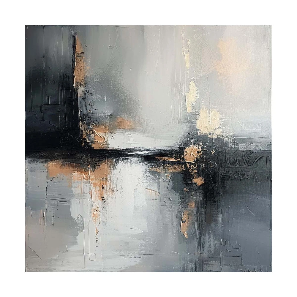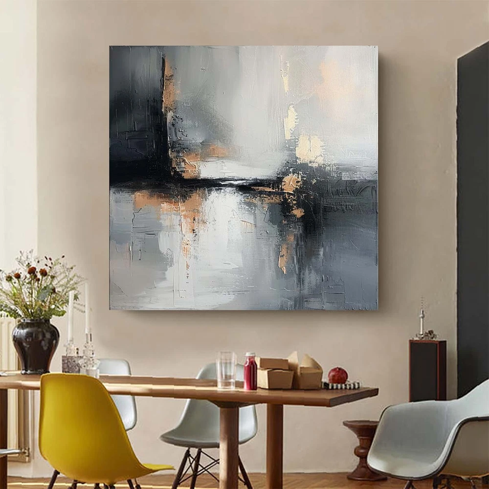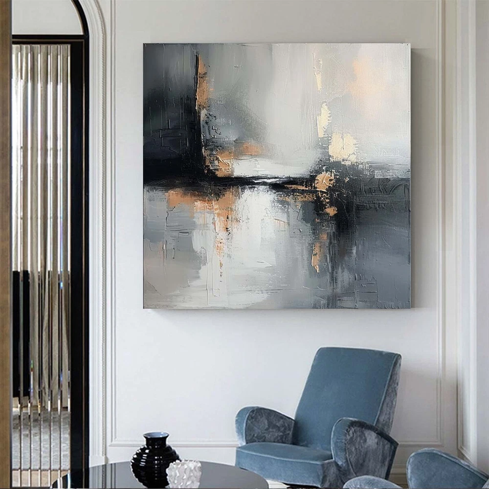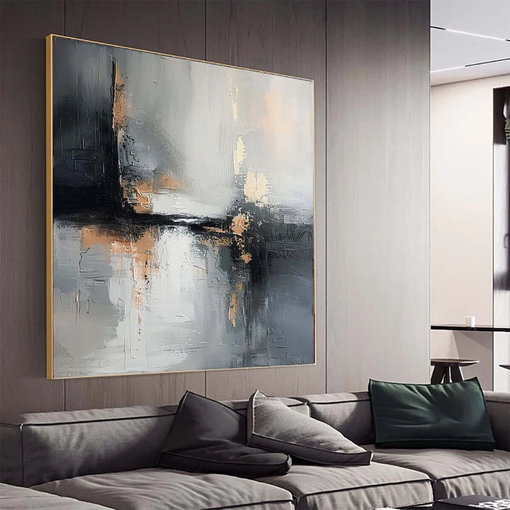 Modern Handmade Abstract Oil Painting on canvsa Living Room Gray black
