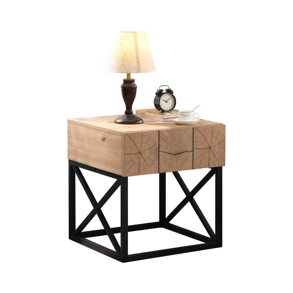 Modern Industrial Luxury Nightstand/End Table with Drawer, for Living Room, Bedroom&OfficeProduct Features:1. Unique Design Night Stand: Add a touch of vintage charm to your bedroom with this industrial night stand. Its unique design, especially the drawer's pattern, creating a visually appealing piece that stands out.2. Small Side Table for Small Spaces: Small but roomy, this bedside table features a drawer that provide perfect storage for your remotes, glasses, medication, and other essentials on hand.3. Easy to Clean: It looks like there is 3 drawers, but acturally it only has one. And the material surface is smooth, easy to clean4. Stable and Sturdy: The bedside table features one drawer with sturdy MDF panels and steel side frames, durable and load-bearing capacity up to 44 lbs. Free Shipping Over $49.99* Details Modern Industrial Luxury Nightstand/End Table with Drawer Product Description: Modern Industrial Luxury Nightstand/End Table with Drawer, for Living Room, Bedroom&Office Product Features: 1. Unique Design Night StandAdd a touch of vintage charm to your bedroom with this industrial night stand. Its unique design, especially the drawer's pattern, creating a visually appealing piece that stands out. 2. Small Side Table for Small SpacesSmall but roomy, this bedside table features a drawer that provide perfect storage for your remotes, glasses, medication, and other essentials on hand. 3. Easy to CleanIt looks like there is 3 drawers, but acturally it only has one. And the material surface is smooth, easy to clean 4. Stable and SturdyThe bedside table features one drawer with sturdy MDF panels and steel side frames, durable and load-bearing capacity up to 44 lbs. 4 plastic mat stick on the feet to avoid scratching the floor. 5. Package and Assembly:This nightstand is packaged in a secure box that contains foam and wood protective boards surrounding it to provide maximum protection against shipping damage. It comes with clear step-by-step illustrated instructions and is marked with numbers or letters on each piece of hardware and parts. Product Dimensions: Assembled Length (in.)21.65 Assembled Width (in.)21.65 Assembled Height (in.)23.82 Weight (lbs)33.88 FillerMDF Main ColorNatural Main MaterialIron Place of OriginChina As per inquiry or aftersales serviceplease contact us [email protected]