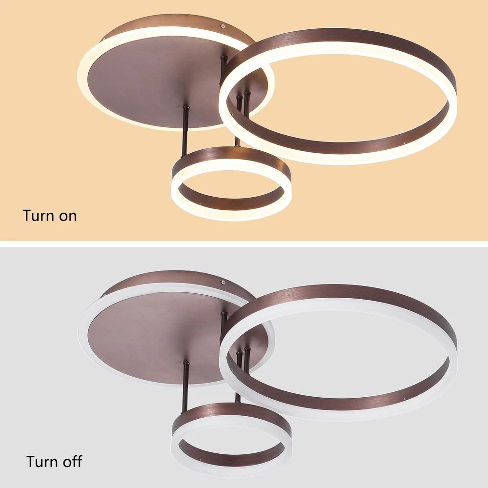 Modern Ceiling Light LED 3 Round Ceiling Lights Flush Mount Ceiling Lamp Warm White 3000K-6500K Ceiling Lighting for Kitchen Bedroom Hallway Entry Dining Room ◆ Geometric & creative design: The ceiling lamp is attached to a cuboid base on the ceiling and consists of three offset, long ellipses that overlap and run parallel to each other, which ensures that a large area is illuminated. ◆ Dimmable: The brightness can be continuously adjusted via the remote control and the color temperature can also be set from cold white to warm white. In this way, the brightness and the color temperature can be better adapted to your wishes and you can also create the mood, for example, by reducing the brightness. ◆ High quality material: The lampshade made of high quality aluminum and silica gel has high l Modern LED Ceiling Light Chandelier Rings Home Living Room Lamp Fixture Dimmable Modern Ceiling Light LED 3 Round Ceiling Lights Flush Mount Ceiling Lamp Warm White 3000K-6500K for Kitchen Bedroom Hallway Entry Dining Room Description: ◆ Geometric & creative design: The ceiling lamp is attached to a cuboid base on the ceiling and consists of three offset, long ellipses that overlap and run parallel to each other, which ensures that a large area is illuminated. ◆ Dimmable: The brightness can be continuously adjusted via the remote control and the color temperature can also be set from cold white to warm white . In this way, the brightness and the color temperature can be better adapted to your wishes and you can also create the mood, for example, by reducing the brightness. ◆ High quality material: The lampshade made of high quality aluminum and silica gel has high light transmittance. The luminosity of the LEDs is particularly bright so that you can experience good illumination on the table surface. ◆ Soft light--- high quality, long life, easy to install, bright and soft lighting, no radio frequency interference, no noise, no flicker, can protect your eyes and brain. ◆ Suitable for residential or commercial use -perfect ceiling lamp for living room, dining room, children's room, kitchen, office, coffee shop, dining room, dressing room, shop, etc. Recommended room adaptation: 20-35㎡ Product parameter : Power: 112W. Lumen: approx. 5600lm. Color temperature: 3000K - 6500K. Light source type: LED. Voltage: 110v-120v. Dimmable: yes. Remote control : yes. Suggestion: - We recommend installing by professionals -When installing and cleaning light, youmust cut off the power supply. ✨ 1. For a safe and secure installation, please ensure that the electrical box to which this fixture will be mounted is properly attached to a structural member of the building. ✨ 2. All wires are connected. When unpacking, be careful not to pull with wires as a bad connection may result. ✨ 3. Do not connect electricity until your fixture is fully assembled. ✨ 4. To reduce the risk of fire, electrical shock, or personal injury, always turn off and unplug fixture and allow it to cool prior to replacing light bulb. ✨ 5. Do not touch bulb when fixture is turned on or look directly at lit bulb. Keep flammable materials away from lit bulb. Payment Delivery details Terms of sales About us Contact us Payment We accept ebay payment 。 Fees such as import duties, taxes are not included in the item price or shipping costs. These charges are the buyer's responsibility. Delivery details Shipping: 2-9 working days to: USA Terms of sales We maintain high standards of excellence and strive for hundred percent customer satisfaction. Feedback is very important to us. We hope that you contact us immediately before you give neutral or negative feedback, so that we can address your concerns. It is impossible to address issues if we do not know about them! About us Your satis faction is our ultimate goal. We work hard to earn your trust and future business. Our certified technicians have tested each item before shipping. The unit comes with 1 year limited warranty on all manufacturing defects. a) If you receive a defective item, you may return it or ask for a discount. Please contact us within 14 days after you receive the package. b) What you returned must be intact and in its original packaging as re? u. Customer is responsible for shipping costs of the returned item. c) We will cover the cost of shipping back t with the shipping rate indicated in the registration page. We will send you a new unit or refund the full payment you paid. Thank you. Contact us Business Hour Business Hour: Monday To Friday: 8:30 AM to 5:00 PM (Beijing China time) Due to time zones, our reply to your questions may not be immediately. But within above working time, we will reply your email within 24 hours. If it's non-workdays, please kindly be patient and wait till Monday. Please contact us with ebay message. Please feel free to contact us if you have any questions. Monday To Friday: 8:30 AM to 5:00 PM (Beijing China time) Due to time zones, our reply to your questions may not be immediately. But within above working time, we will reply your email within 24 hours. If it's non-workdays, please kindly be patient and wait till Monday. Please contact us with ebay message. Please feel free to contact us if you have any questions.