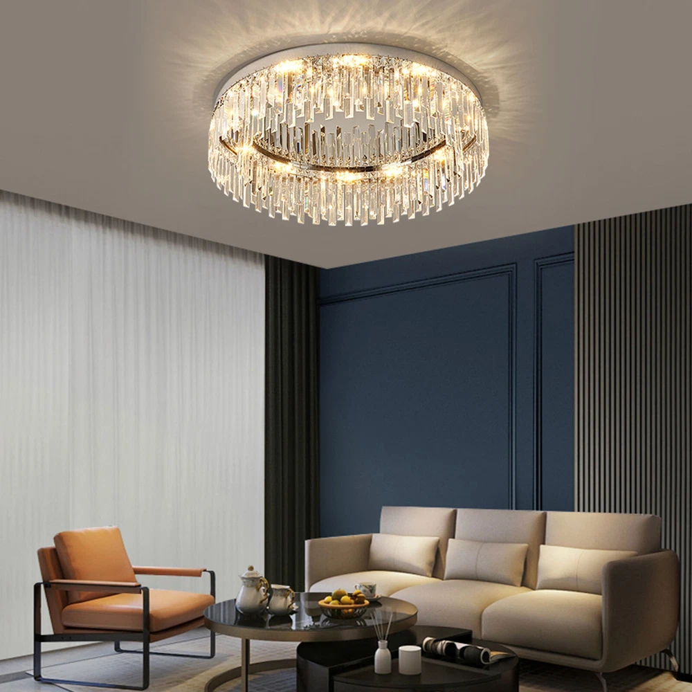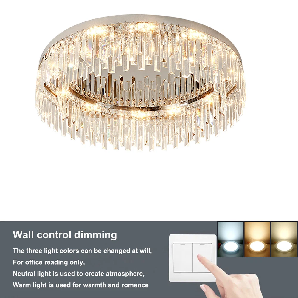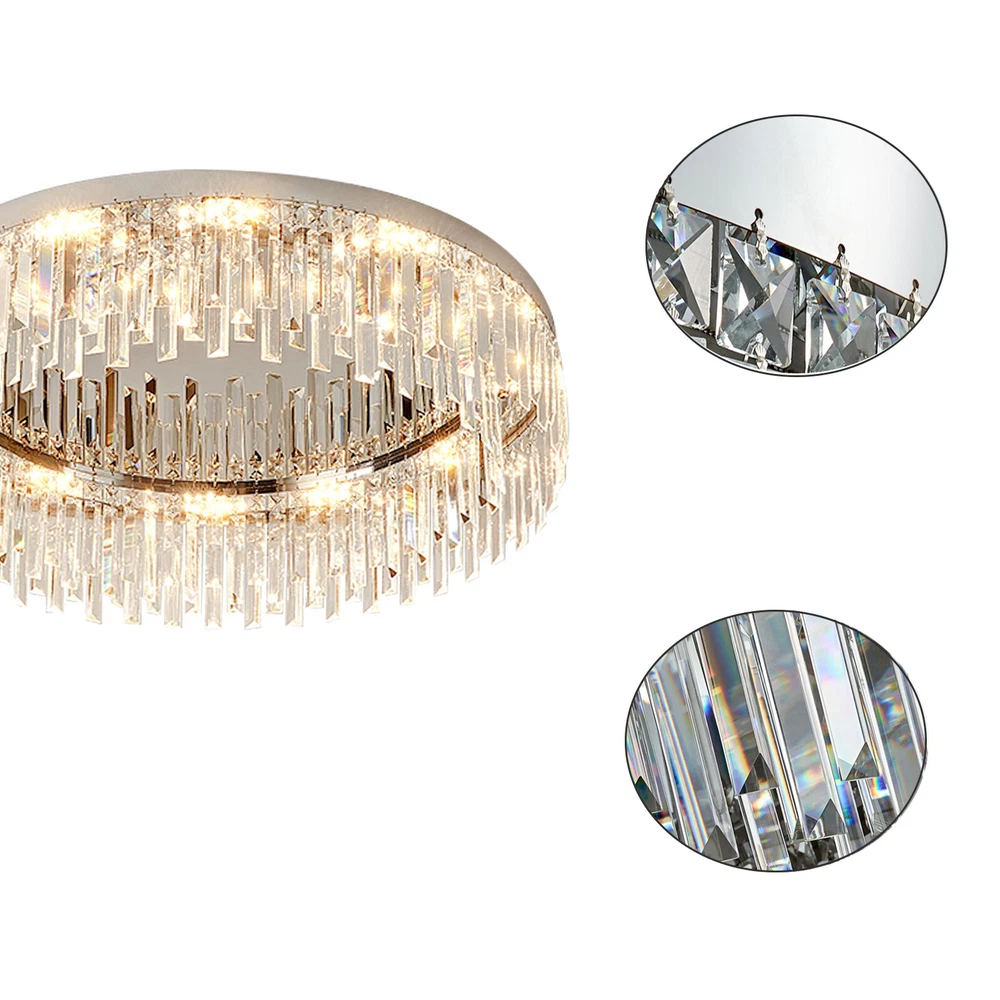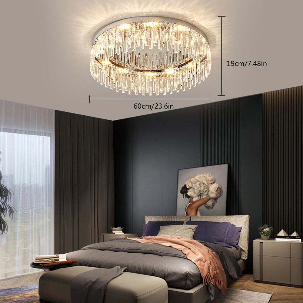 ❤❤❤Welcome to the store.If you have any question , please contact us , and we will reply you as soon as possible. Modern LED Ceiling Light Flush Mount Crystal Chandelier Pendant Lamp Fixture US Description This ceiling lamp mainly uses stainless steel material, making it anti-rust, high-strength, and durable. With beautiful crystals forming the lamp shade, it will cast a shimmering and beautiful reflection on the ceiling when on, adding elegance to your home. In addition, with standard E12 bases, you can choose different style bulbs for less than 40W according to your needs. Key Features High-quality Material: This ceiling lamp adopts stainless steel chassis, lamp body, and frame, making it anti-rust, corrosion-resistant, high-strength, and durable. Beautiful Lighting Effect: Applying the crystals with fine cutting that helps to refract light well, this ceiling lamp casts gorgeous rays on the ceiling to make a beautiful lighting effect and create a warm&romantic atmosphere in your living room. Elegant Appearance: With a unique crystal design, a classic round shape, and chrome color, this ceiling lamp looks very luxurious and elegant and matches your home decoration style, adding beauty and stylish elements to your room. Large Applicable Area: The item can serve an area of 15-20m²/161.4-215.3ft² to illuminate over the entire room. Wide Compatibility: This wall lamp is equipped with standard E12 bases, and you can choose different style bulbs less than 40W such as LED and incandescent to create different lighting effects. Easy to Install : This wall lamp has been assembled (including the crystal strings). You just need to connect the wire reserved on the ceiling and the lamp chassis to install this lamp, which is easy and convenient. And there is an English manual for your reference. Easy to Clean: Due to its stainless steel&crystal material and smooth surface, you can wipe the dirt from it with a wet cloth, which is easy to clean up. Ideal Gift: Thanks to its exquisite design, elegant appearance, and beautiful lighting effect, you can choose this ceiling lamp as a gift for housewarming to your friends. Protective Package: To prevent the product from being damaged and bumped during transportation, we packed it with foam to protect your products to the maximum extent possible. Details Crystal Shade: This ceiling lamp has a clear crystal shade, which is made with evenly distributed crystal prisms in triangle&square pyramid shapes, providing superior quality and presenting multi-angle scattering. The crystal strings are connected by bow-shaped connectors, which adds beauty to the lamp. Stable Chassis: This ceiling lamp is designed with a round stainless steel chassis to ensure stable support for the light body and present classic beauty. Application It is ideal for kitchens, hallways, living rooms, bedrooms, bathrooms, balconies, bars, aisles, foyers, hotels, restaurants, corridors, cafes, dining rooms, children's rooms, libraries, etc. And its applicable area is 15-20m²/161.4-215.3ft². Specifications Model: 5911 Color: Chrome Material: Stainless Steel Shade Material: Crystal Surface Treatment: Cutting Style: Modern Shape: Round Mounting Type: Ceiling Mount/Flush Mount Indoor/Outdoor Usage: Indoor Light Fixture Form: Chandelier Light Direction: Downlight Power Source: AC, Corded Electric Voltage: 110VMax. Bulb Power: 40W Applicable Area: 15-20m²/161.4-215.3ft² Ceiling Lamp Height: 19cm/7.48inch Ceiling Lamp Diameter: 60cm/23.6inch Package Included 1* Ceiling Lamp 1* English Manual Notes Please check the product size before ordering to make sure it fits your room. You need 12 E12 bulbs (not included). Please make sure the power is cut off before installation. Payment Delivery details Terms of sales About us Contact us Payment We accept ebay payment 。 Fees such as import duties, taxes are not included in the item price or shipping costs. These charges are the buyer's responsibility. Delivery details Shipping: 2-9 working days to: USA Terms of sales We maintain high standards of excellence and strive for hundred percent customer satisfaction. Feedback is very important to us. We hope that you contact us immediately before you give neutral or negative feedback, so that we can address your concerns. It is impossible to address issues if we do not know about them! About us Your satis faction is our ultimate goal. We work hard to earn your trust and future business. Our certified technicians have tested each item before shipping. The unit comes with 1 year limited warranty on all manufacturing defects. a) If you receive a defective item, you may return it or ask for a discount. Please contact us within 14 days after you receive the package. b) What you returned must be intact and in its original packaging as re? u. Customer is responsible for shipping costs of the returned item. c) We will cover the cost of shipping back t with the shipping rate indicated in the registration page. We will send you a new unit or refund the full payment you paid. Thank you. Contact us Business Hour Business Hour: Monday To Friday: 8:30 AM to 5:00 PM (Beijing China time) Due to time zones, our reply to your questions may not be immediately. But within above working time, we will reply your email within 24 hours. If it's non-workdays, please kindly be patient and wait till Monday. Please contact us with ebay message. Please feel free to contact us if you have any questions. Monday To Friday: 8:30 AM to 5:00 PM (Beijing China time) Due to time zones, our reply to your questions may not be immediately. But within above working time, we will reply your email within 24 hours. If it's non-workdays, please kindly be patient and wait till Monday. Please contact us with ebay message. Please feel free to contact us if you have any questions. Highlights Compact Design,Unique Appearance,high reliability Brand Unbranded Type Chandelier Sensor Type Light Style Modern Lighting Technology E12 Material Stainless Steel Roo