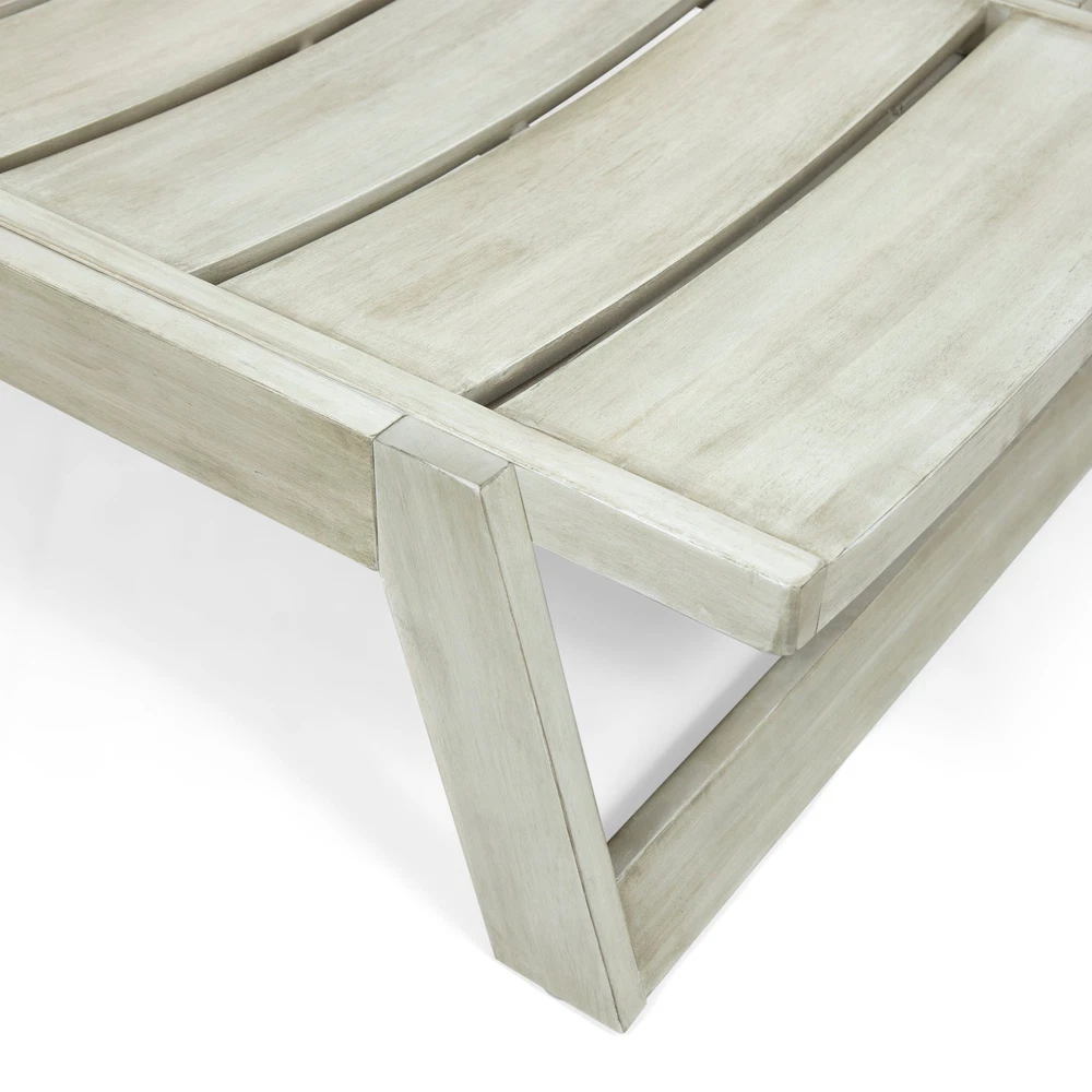 Specifications Place of Origin #originPlace# Main Color Grey Main Material Metal & Wood Dangerous Goods #dangerFlag# Dimensions & Weights Assembled Length (in.) 78.25 Assembled Width (in.) 26.00 Assembled Height (in.) 35.75 Weight (lbs) 50.71 Product Features ACACIA WOOD: Made with acacia wood that brings a sleek and exotic look to your space, this durable hardwood naturally withstands outdoor elements and will not darken over time COMPLEMENTING FINISH: Finished with a complementing wash and matching metal accents, the coating provides a hand-crafted touch to this chaise lounge ADJUSTABLE: Our chaise lounge offers adjustable seating to ensure maximum comfort SLAT PANELING: Our chaise lounge features bold slats with a gentle curve that molds perfectly with your body Product Dimensions 78.75'D x 26'W x 36'H Description