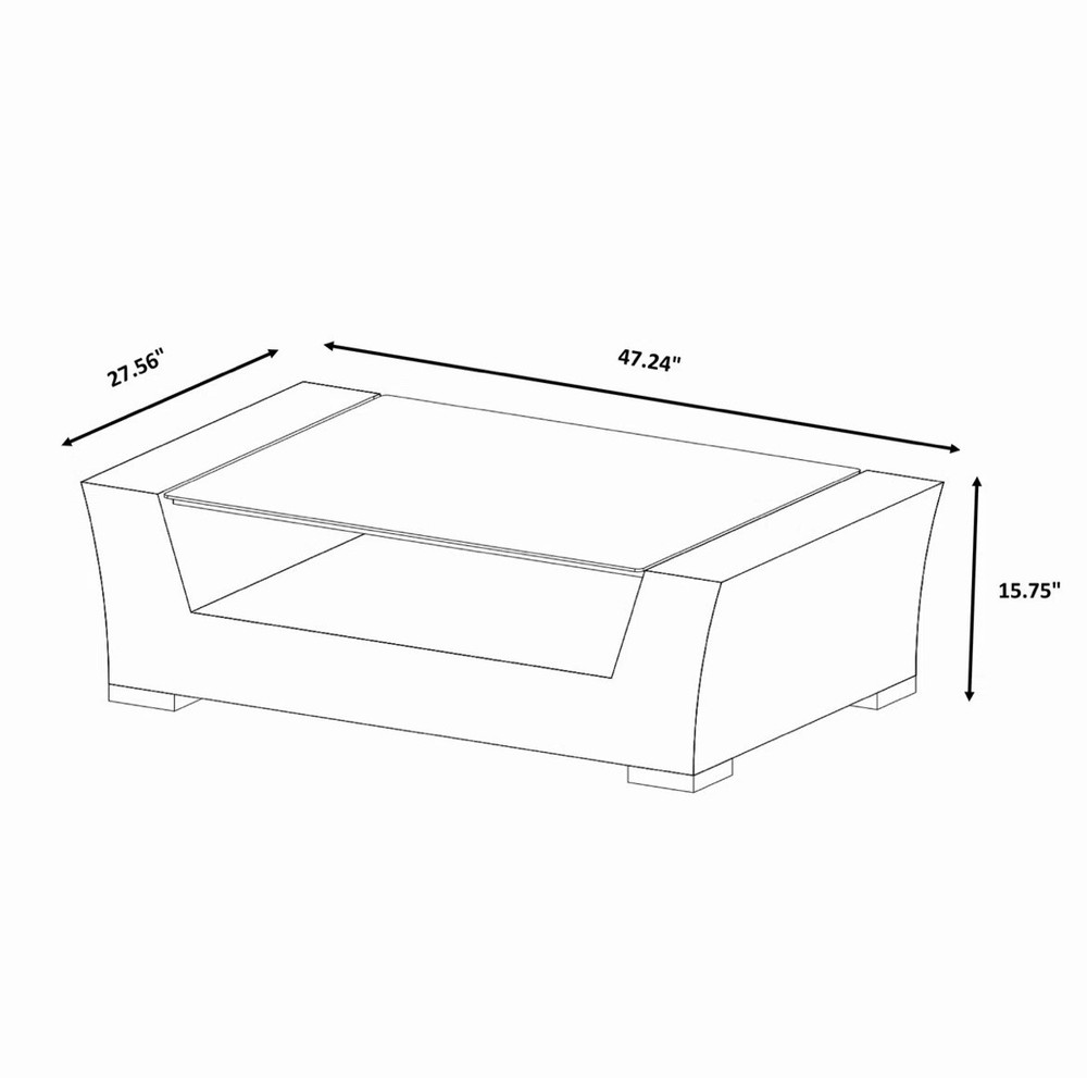 Manhattan Rectangular Glass Outdoor Coffee Table Bring modern elegance to your outdoor living space with the Manhattan Rectangular Glass Outdoor Coffee Table. Designed with both style and durability in mind, this table features a sleek tempered glass tabletop resting atop a handwoven all-weather wicker base. The clean lines and neutral tones make it a versatile addition to patios, decks, or garden lounges. Dimensions: 47.24" L x 27.56" W x 15.75" H Durable Build: Crafted from weather-resistant resin wicker with a sturdy steel frame for long-lasting outdoor use Tempered Glass Top: Smooth, easy-to-clean surface ideal for serving snacks, drinks, or décor Modern Design: Curved sides and low-profile silhouette blend sophistication with functionality Multi-Use: Perfect as a centerpiece for outdoor seating sets or as a stylish accent for poolside gatherings Upgrade your outdoor experience with the perfect mix of form and function. The Manhattan table makes relaxation more refined.