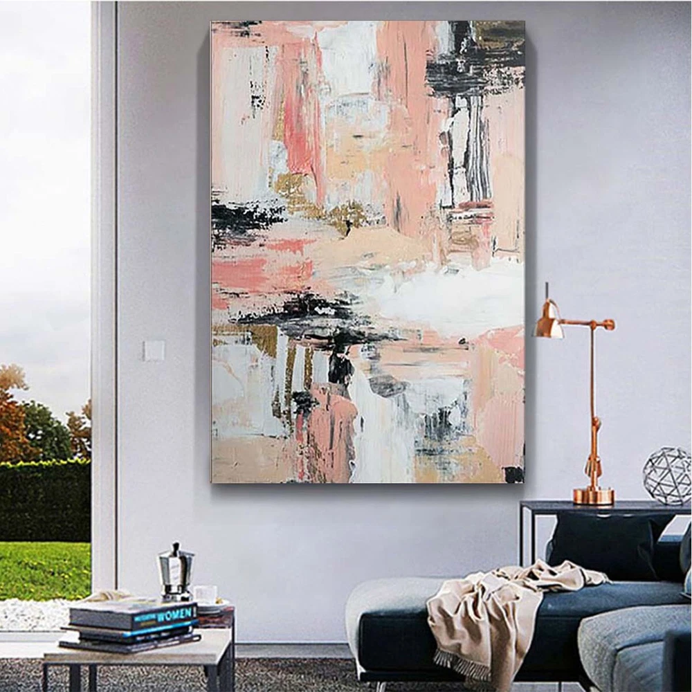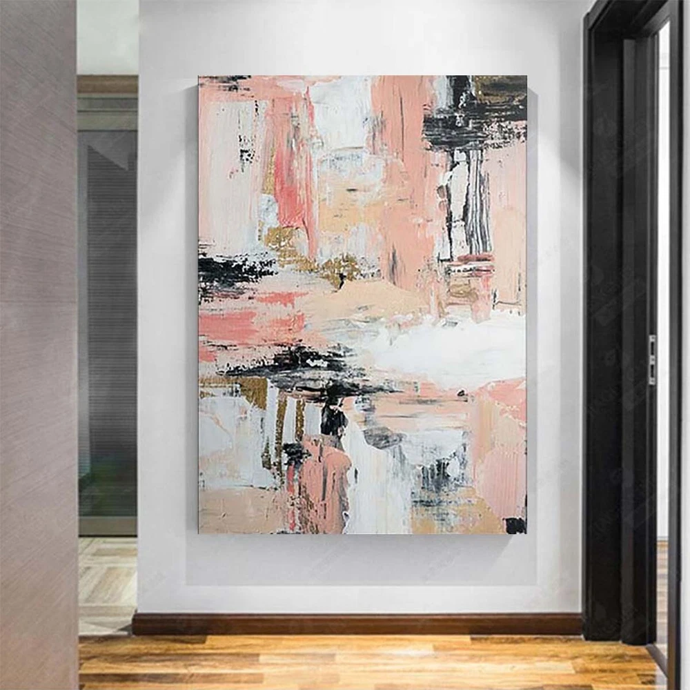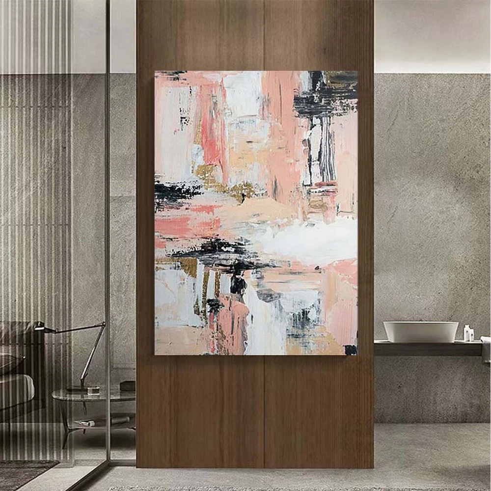Modern Minimalist Pink Abstract Handmade Oil Painting Large Corridor Porch Decor