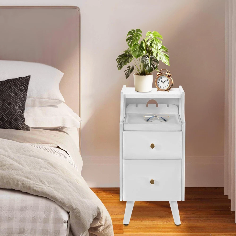 $ 67.67Modern Nightstand Wood Bedside Table 2 Drawers End Side Table For Bedroom