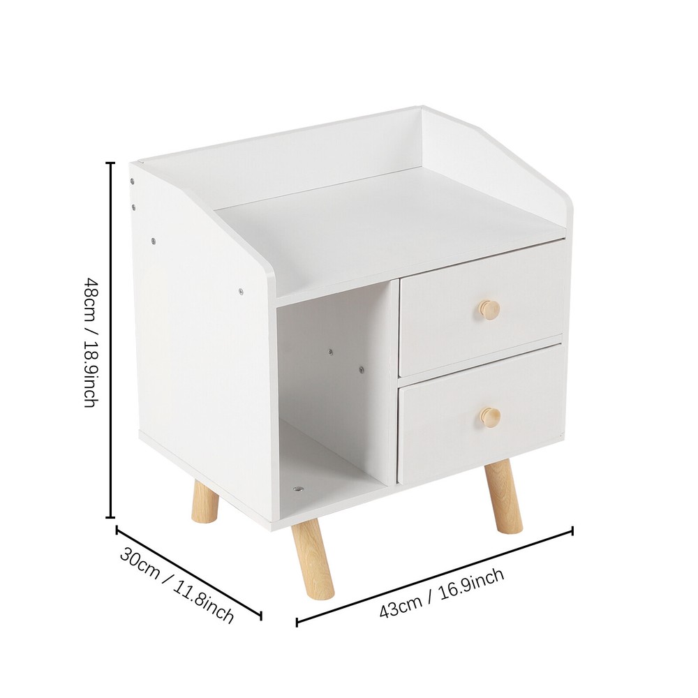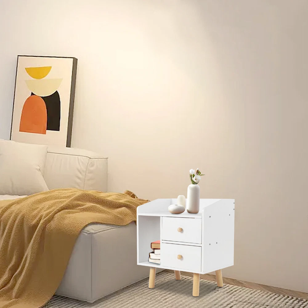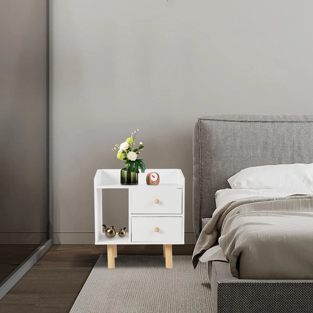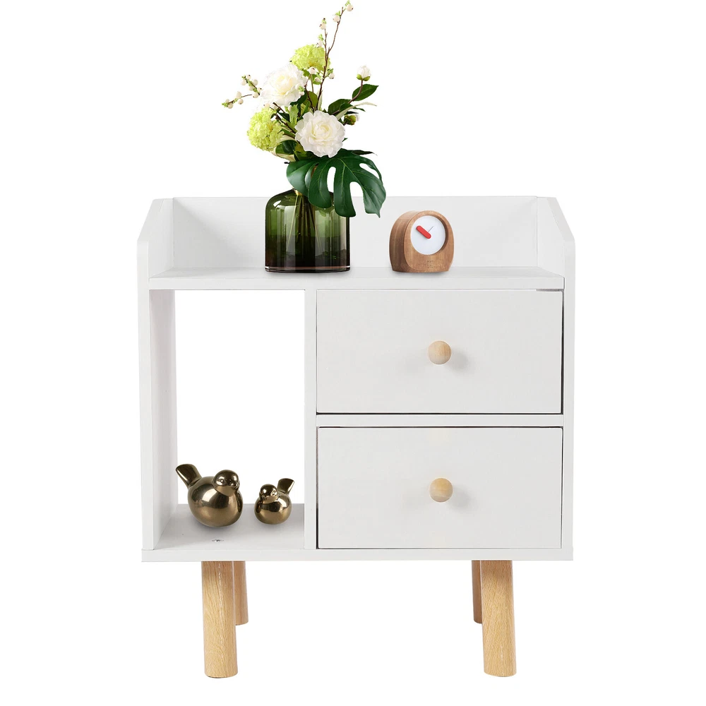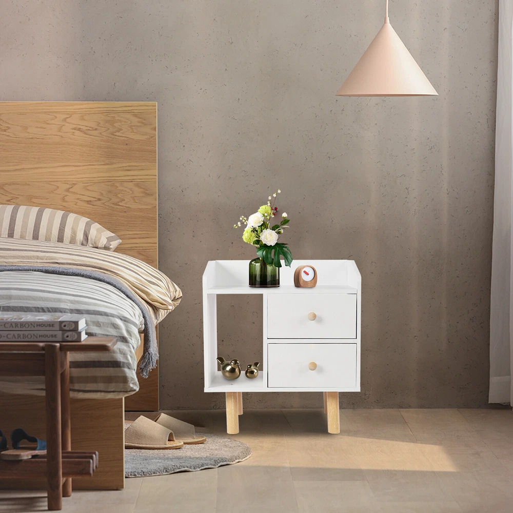 Modern Nightstand Bedside End Table Storage Cabinet w/2 Drawer Bedroom Furniture White Nightstand with Drawer, Bedside Table Side Table for Small Place, Bed Table End Tables for Living Room Bedroom, File Cabinet Storage with Sliding Drawer and Shelf for Home Office Description This nightstand has a large capacity with its shelf, countertop and drawers, which can hold most of your bedroom trivial to create a clean living room and a bedroom full of personality for you. Storing your latest reading material, table lamps, framed photos, a small heat lamp, a small radio, or bedtime essentials, it accompanies you through every cozy night. Key Features Sturdy and Durable: Made from high-quality MDF and solid wood support legs, this nightstand is very sturdy, wear-resistant, and not easily deformed, ensuring a long service life and a strong load-bearing capacity, where each drawer can bear 11-13.22lbs and the shelf can bear 22-26.45lbs. Accent Your Home: The pure white appearance and smooth lines give a simple and refreshing visual effect, which can be integrated into all types of rooms. You can also put a small warm lamp, a framed family photo, or potted plants on the countertop as decorations to beautify your room. Large Capacity: This nightstand has a raised shelf compartment, two large capacity drawers and a wide countertop to provide you with enough storage space. You can put your books, calendars, photo frames, cups, potted plants, etc. Cozy Companion: The nightstand puts away your bedtime clutter and provides a place for your bedtime books and sleep aid aromatherapy, so you can enjoy a cozy time at sleep. Sorted Storage: The fine partitioned design allows for organized and tidy storage. You can put your frequently used items on the open shelf/countertop and miscellaneous items that you don't use as often in the drawers. This way, you can quickly select the items you want quickly and keep the room tidier. Space-saving : The footprint of this item is only 16.9*11.8in and can be placed in the corner next to the bed, so it's space-saving for you. Easy to Assemble : Its structure is simple, and the package contains accessories and installation drawing to help you complete the installation easily and quickly. You can also enjoy assembling it with your family. Easy To Clean: Because MDF has a smooth surface, you only need to wipe it with a cloth, and then it will shine like a brand-new one. Details Raise Support Leg : The support leg is raised to make it a certain distance from the ground, which can effectively prevent mildew and dampness, and also make it convenient for you to clean the floor. Soft Corners : The edges of the nightstand are round, smooth, and burr-free through an edge sealing process, which can effectively prevent bumps and scratches. Children or elderly people can also use it with confidence. C-shaped Guardrail: The top is equipped with a heightened C-shaped guardrail on the countertop to prevent objects from falling. Ball Handle : Each drawer has a ball handle for opening and closing the drawer. The smooth spherical design is easy to hold without hurting your hands, which is both beautiful and practical. Two Drawers: The drawer can store intimate or private items, giving you enough security and personal space, and has a good dust-proof effect. Non-slip Pad: The bottom of the support leg is provided with a non-slip pad to achieve stable placement and prevent the floor from being scratched. Application It’s suitable for bedrooms, living rooms, etc. to store green plants, cell phones, books, alarm clocks, charging cables, eye masks, bedside lamps, and mugs. Specifications Material: MDF Support Leg Material: Wood Color: White Style: Modern Mounting Type: Free-standing Shape: Rectangular Base Type: Leg Packing Size: 49*35*11.5cm/19.29*13.77*4.52in Product Size: 43*30*48cm/16.9*11.8*18.9in Gross Weight: 5.3kg/l11.68lbs Net Weight: 5kg/11lbs Each Drawer Loading Capacity: 5-6kg/11-13.22lbs Shelf Loading Capacity: 10-12kg/22-26.45lbs Package Included 1* Nightstand All Accessories for Installation Notes Please allow the slight color difference caused by the shooting light and 1-3cm error due to manual measurement, and make sure you do not mind before you order. Payment Delivery details Terms of sales About us Contact us Payment We accept ebay payment 。 Fees such as import duties, taxes are not included in the item price or shipping costs. These charges are the buyer's responsibility. Delivery details Shipping: 2-9 working days to: USA Terms of sales We maintain high standards of excellence and strive for hundred percent customer satisfaction. Feedback is very important to us. We hope that you contact us immediately before you give neutral or negative feedback, so that we can address your concerns. It is impossible to address issues if we do not know about them! About us Your satis faction is our ultimate goal. We work hard to earn your trust and future business. Our certified technicians have tested each item before shipping. The unit comes with 1 year limited warranty on all manufacturing defects. a) If you receive a defective item, you may return it or ask for a discount. Please contact us within 14 days after you receive the package. b) What you returned must be intact and in its original packaging as re? u. Customer is responsible for shipping costs of the returned item. c) We will cover the cost of shipping back t with the shipping rate indicated in the registration page. We will send you a new unit or refund the full payment you paid. Thank you. Contact us Business Hour Business Hour: Monday To Friday: 8:30 AM to 5:00 PM (Beijing China time) Due to time zones, our reply to your questions may not be immediately. But within above working time, we will reply your email within 24 hours. If it's non-workdays, please kindly be patient and wait till Monday. Please contact us with ebay message. Please feel free to contact us if you have any questions. Monday To Friday: 8:30 AM to 5:00 