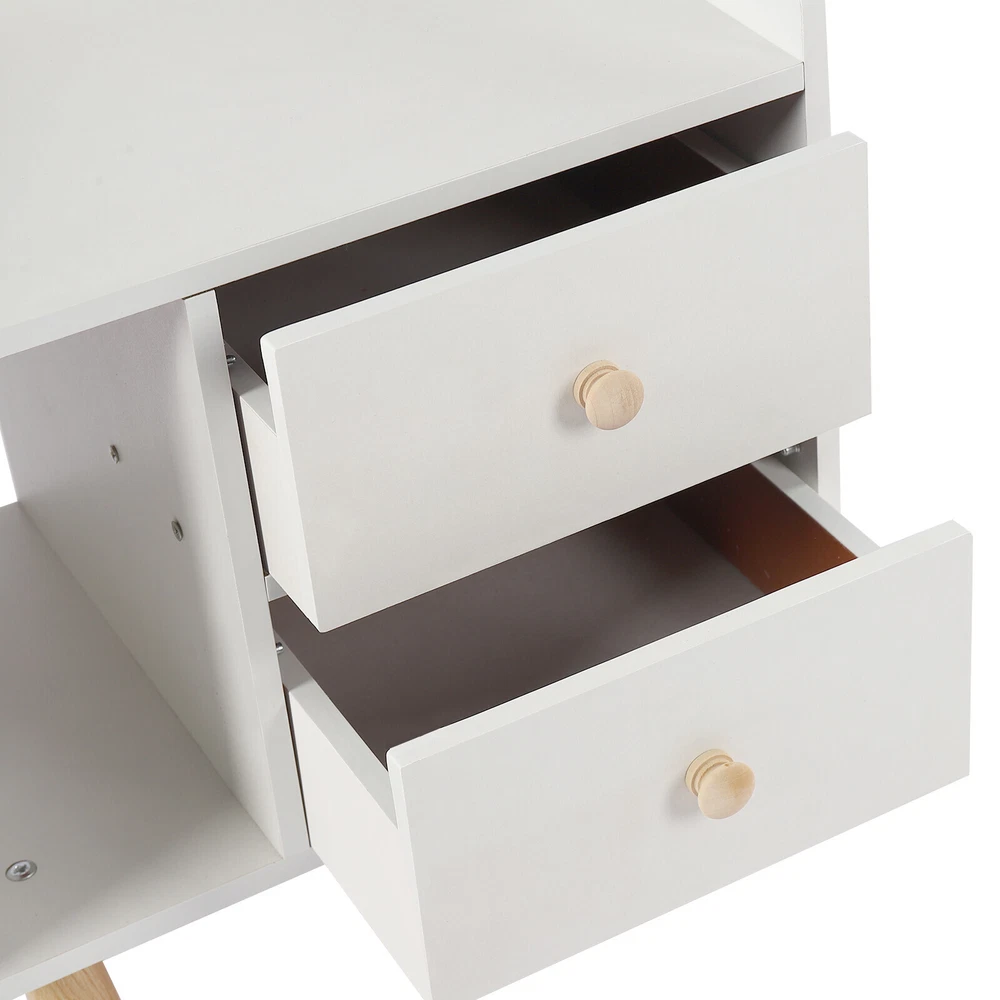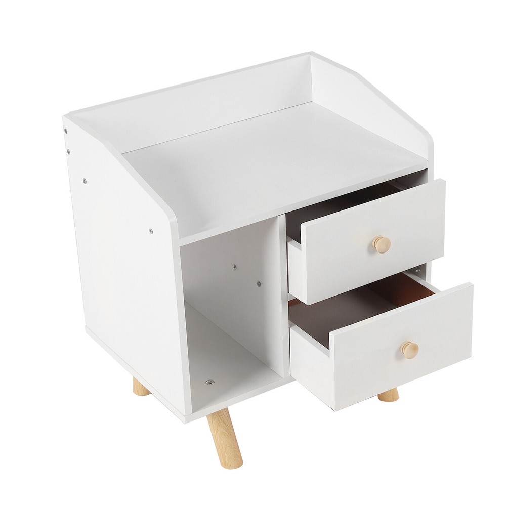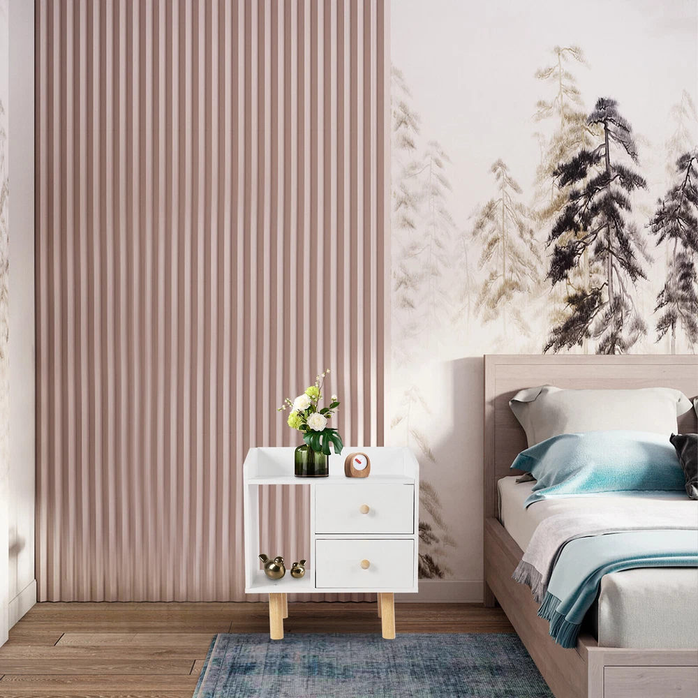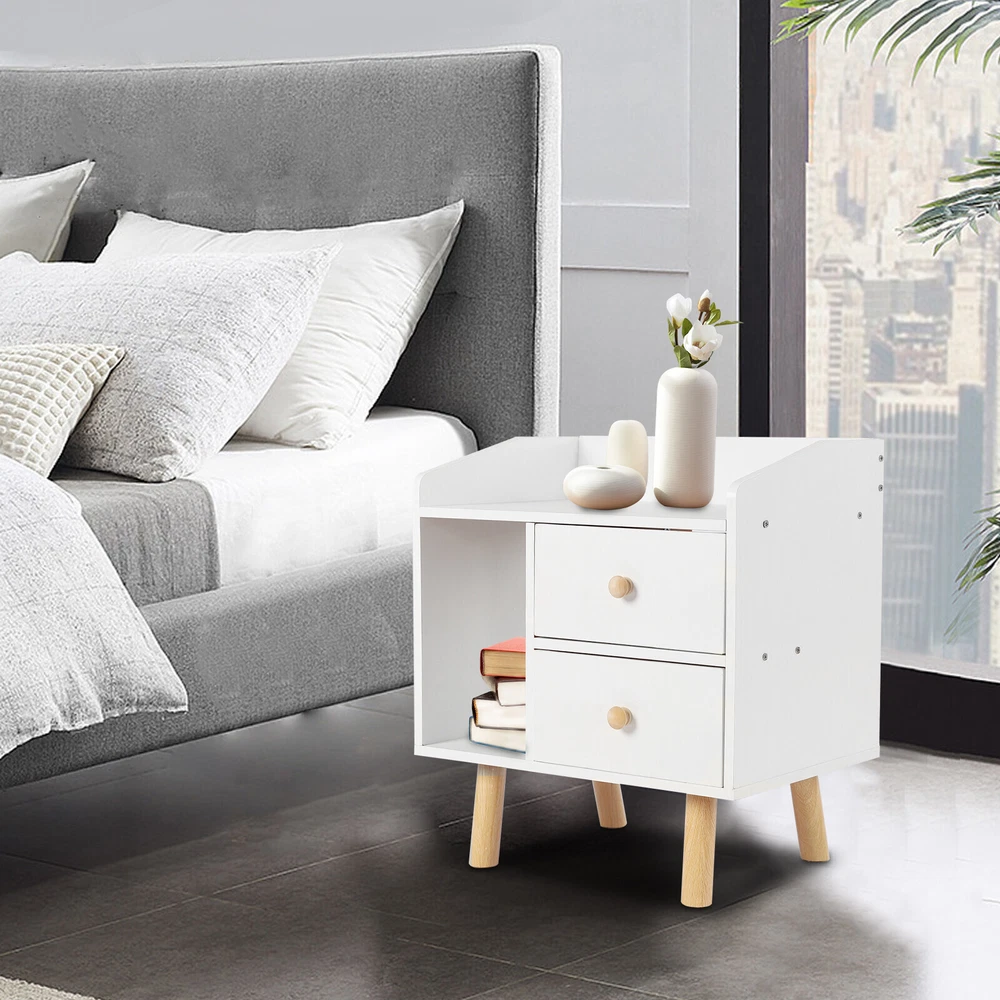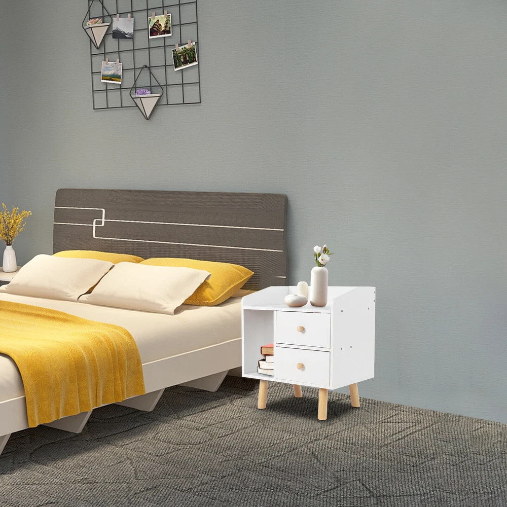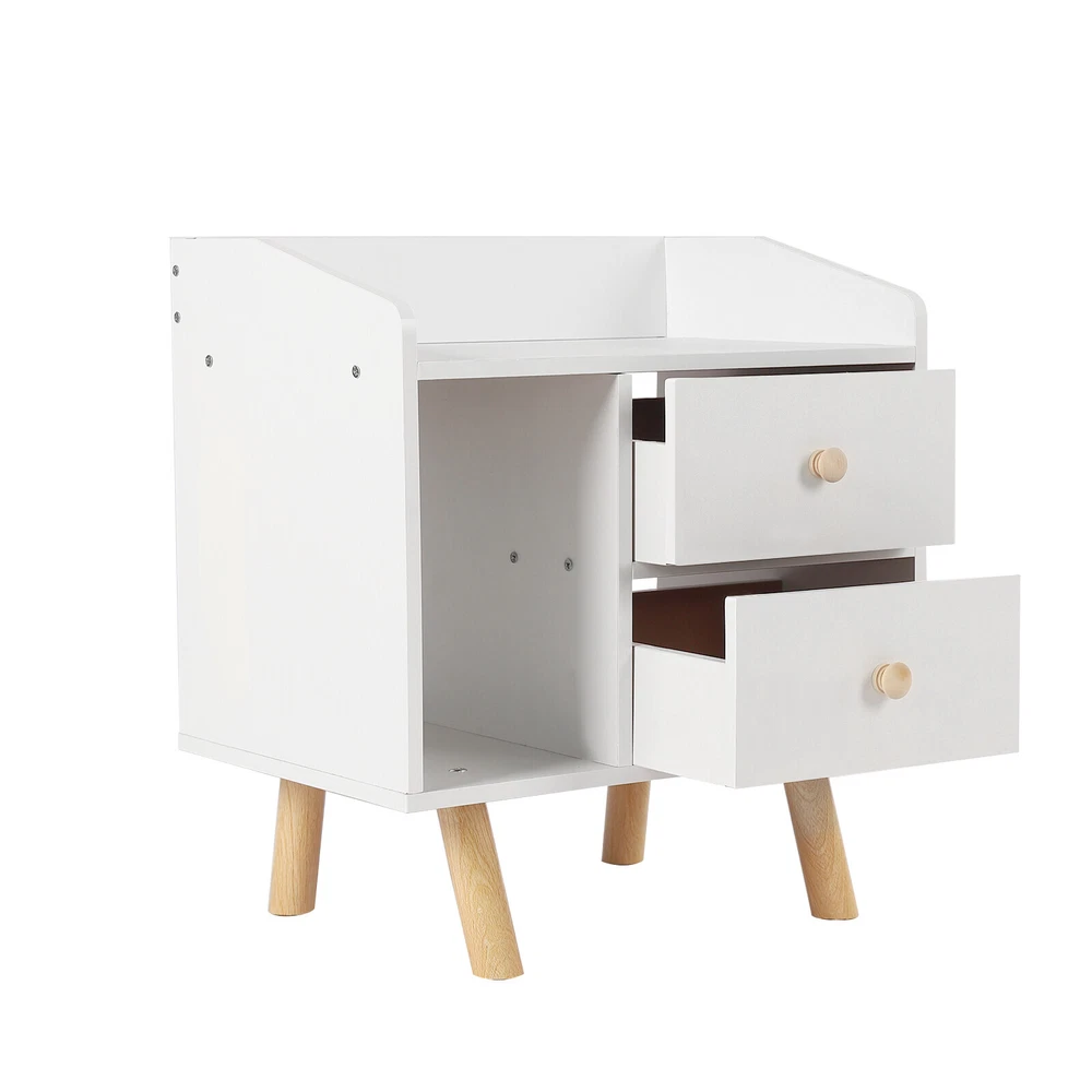 Modern Nightstand Bedside End Table Storage Cabinet w/2 Drawer Bedroom Furniture White Nightstand with Drawer, Bedside Table Side Table for Small Place, Bed Table End Tables for Living Room Bedroom, File Cabinet Storage with Sliding Drawer and Shelf for Home Office Description This nightstand has a large capacity with its shelf, countertop and drawers, which can hold most of your bedroom trivial to create a clean living room and a bedroom full of personality for you. Storing your latest reading material, table lamps, framed photos, a small heat lamp, a small radio, or bedtime essentials, it accompanies you through every cozy night. Key Features Sturdy and Durable: Made from high-quality MDF and solid wood support legs, this nightstand is very sturdy, wear-resistant, and not easily deformed, ensuring a long service life and a strong load-bearing capacity, where each drawer can bear 11-13.22lbs and the shelf can bear 22-26.45lbs. Accent Your Home: The pure white appearance and smooth lines give a simple and refreshing visual effect, which can be integrated into all types of rooms. You can also put a small warm lamp, a framed family photo, or potted plants on the countertop as decorations to beautify your room. Large Capacity: This nightstand has a raised shelf compartment, two large capacity drawers and a wide countertop to provide you with enough storage space. You can put your books, calendars, photo frames, cups, potted plants, etc. Cozy Companion: The nightstand puts away your bedtime clutter and provides a place for your bedtime books and sleep aid aromatherapy, so you can enjoy a cozy time at sleep. Sorted Storage: The fine partitioned design allows for organized and tidy storage. You can put your frequently used items on the open shelf/countertop and miscellaneous items that you don't use as often in the drawers. This way, you can quickly select the items you want quickly and keep the room tidier. Space-saving : The footprint of this item is only 16.9*11.8in and can be placed in the corner next to the bed, so it's space-saving for you. Easy to Assemble : Its structure is simple, and the package contains accessories and installation drawing to help you complete the installation easily and quickly. You can also enjoy assembling it with your family. Easy To Clean: Because MDF has a smooth surface, you only need to wipe it with a cloth, and then it will shine like a brand-new one. Details Raise Support Leg : The support leg is raised to make it a certain distance from the ground, which can effectively prevent mildew and dampness, and also make it convenient for you to clean the floor. Soft Corners : The edges of the nightstand are round, smooth, and burr-free through an edge sealing process, which can effectively prevent bumps and scratches. Children or elderly people can also use it with confidence. C-shaped Guardrail: The top is equipped with a heightened C-shaped guardrail on the countertop to prevent objects from falling. Ball Handle : Each drawer has a ball handle for opening and closing the drawer. The smooth spherical design is easy to hold without hurting your hands, which is both beautiful and practical. Two Drawers: The drawer can store intimate or private items, giving you enough security and personal space, and has a good dust-proof effect. Non-slip Pad: The bottom of the support leg is provided with a non-slip pad to achieve stable placement and prevent the floor from being scratched. Application It’s suitable for bedrooms, living rooms, etc. to store green plants, cell phones, books, alarm clocks, charging cables, eye masks, bedside lamps, and mugs. Specifications Material: MDF Support Leg Material: Wood Color: White Style: Modern Mounting Type: Free-standing Shape: Rectangular Base Type: Leg Packing Size: 49*35*11.5cm/19.29*13.77*4.52in Product Size: 43*30*48cm/16.9*11.8*18.9in Gross Weight: 5.3kg/l11.68lbs Net Weight: 5kg/11lbs Each Drawer Loading Capacity: 5-6kg/11-13.22lbs Shelf Loading Capacity: 10-12kg/22-26.45lbs Package Included 1* Nightstand All Accessories for Installation Notes Please allow the slight color difference caused by the shooting light and 1-3cm error due to manual measurement, and make sure you do not mind before you order. Payment Delivery details Terms of sales About us Contact us Payment We accept ebay payment 。 Fees such as import duties, taxes are not included in the item price or shipping costs. These charges are the buyer's responsibility. Delivery details Shipping: 2-9 working days to: USA Terms of sales We maintain high standards of excellence and strive for hundred percent customer satisfaction. Feedback is very important to us. We hope that you contact us immediately before you give neutral or negative feedback, so that we can address your concerns. It is impossible to address issues if we do not know about them! About us Your satis faction is our ultimate goal. We work hard to earn your trust and future business. Our certified technicians have tested each item before shipping. The unit comes with 1 year limited warranty on all manufacturing defects. a) If you receive a defective item, you may return it or ask for a discount. Please contact us within 14 days after you receive the package. b) What you returned must be intact and in its original packaging as re? u. Customer is responsible for shipping costs of the returned item. c) We will cover the cost of shipping back t with the shipping rate indicated in the registration page. We will send you a new unit or refund the full payment you paid. Thank you. Contact us Business Hour Business Hour: Monday To Friday: 8:30 AM to 5:00 PM (Beijing China time) Due to time zones, our reply to your questions may not be immediately. But within above working time, we will reply your email within 24 hours. If it's non-workdays, please kindly be patient and wait till Monday. Please contact us with ebay message. Please feel free to contact us if you have any questions. Monday To Friday: 8:30 AM to 5:00 
