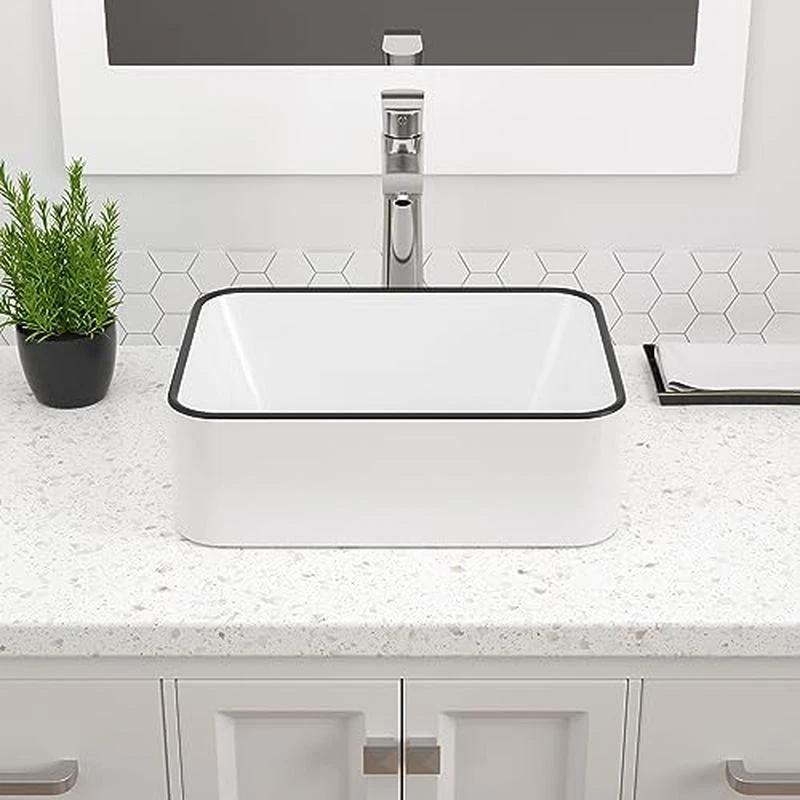 Modern Rectangular Ceramic Vessel Sink with Faucet Hole for Countertop Bathroom