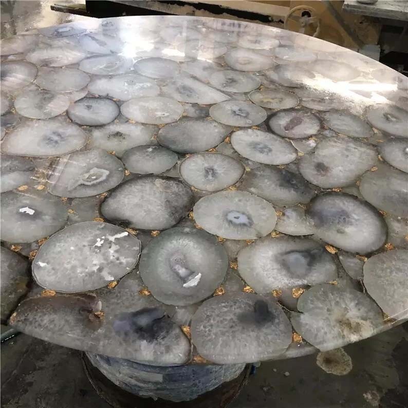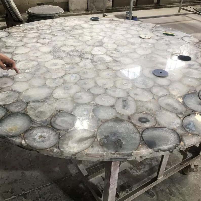 White Agate Round Coffee Table Countertop Decor for Living Room